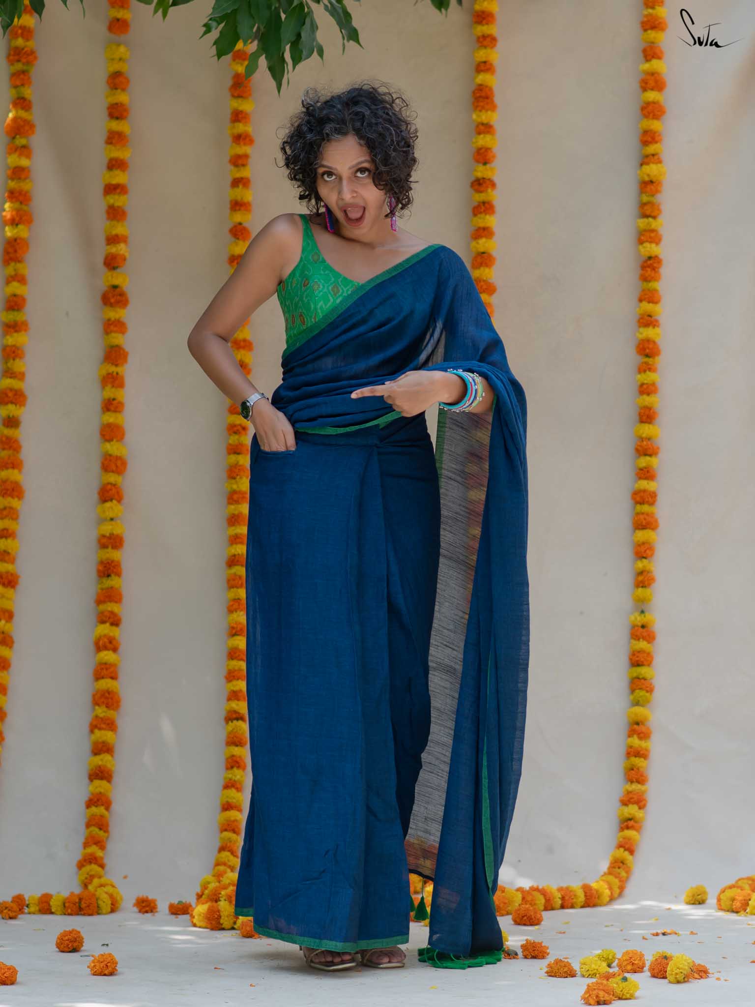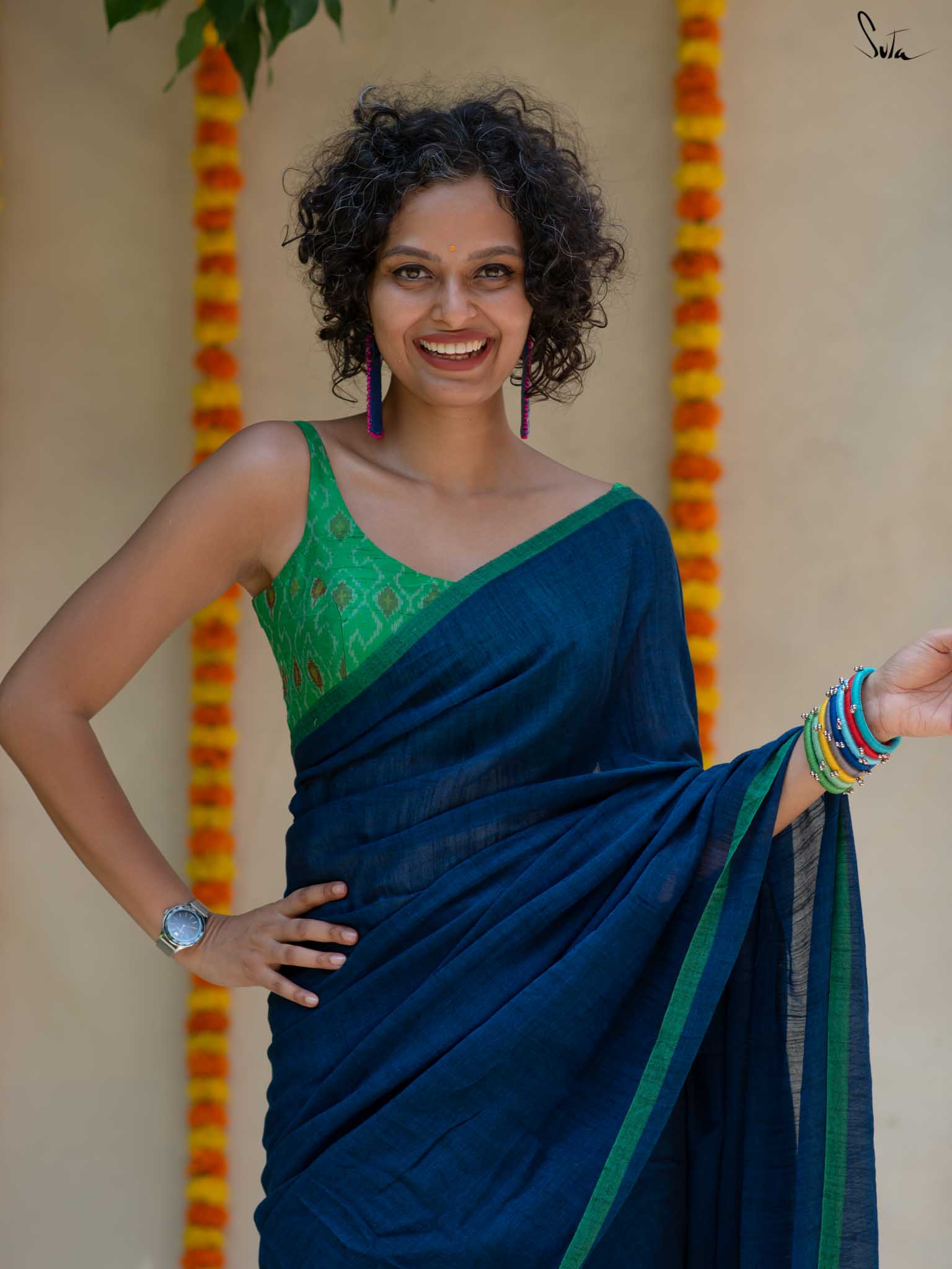 Blouse: Su, the model is wearing size S of the blouse called Khatta Angur