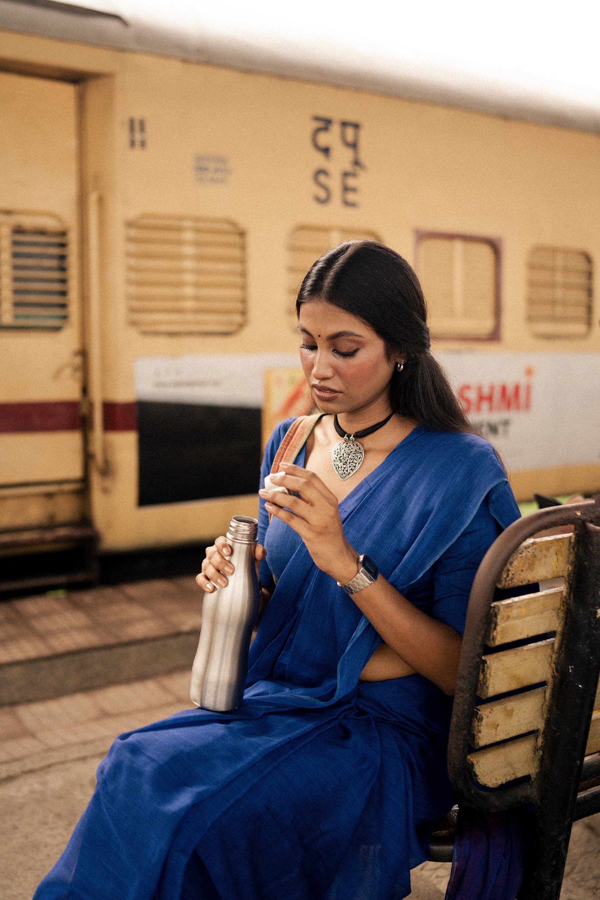 Jindagi ki railgadi I Blue mul modal handloom saree