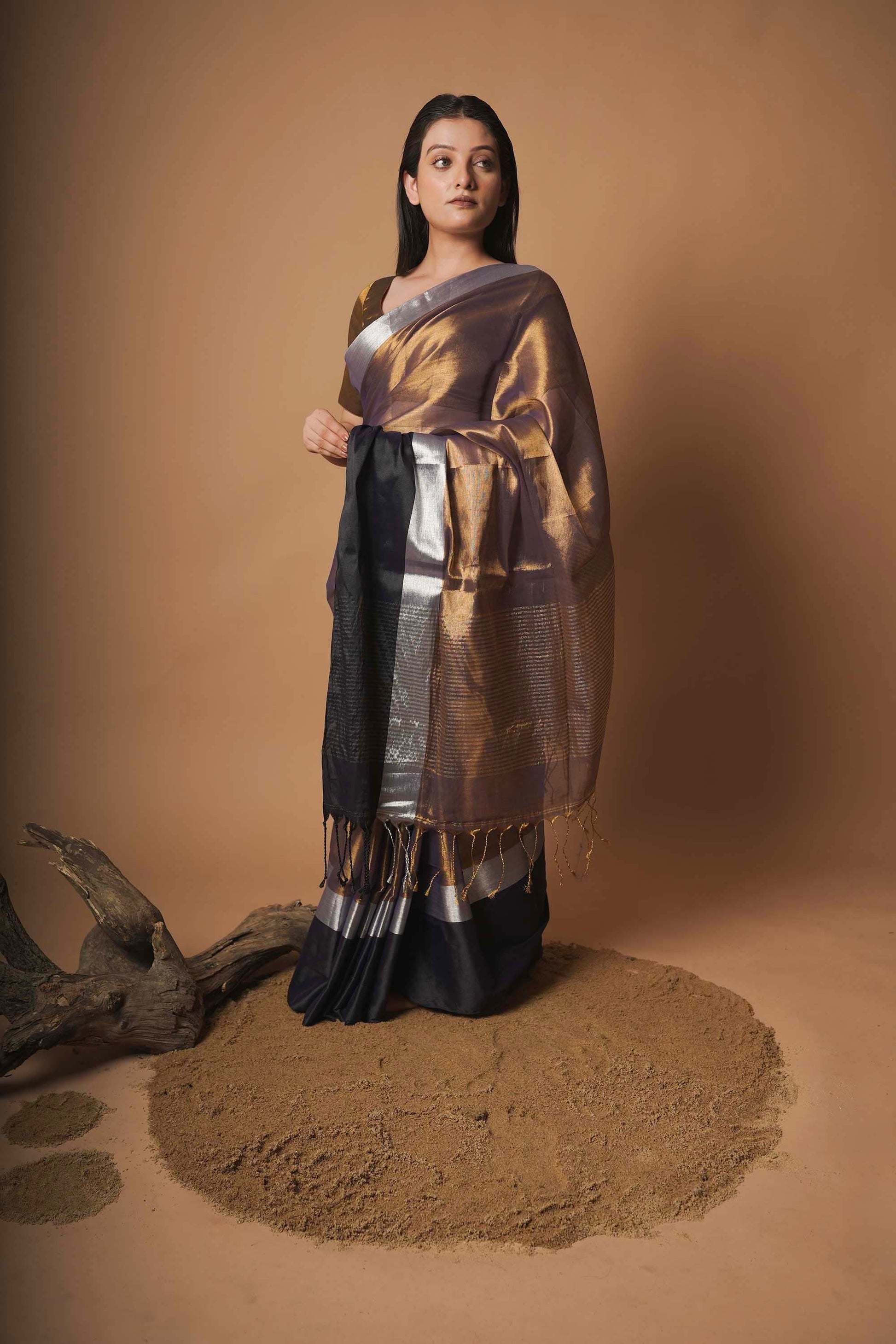 Kaashvi | Gold and Black Handloom Tissue Saree