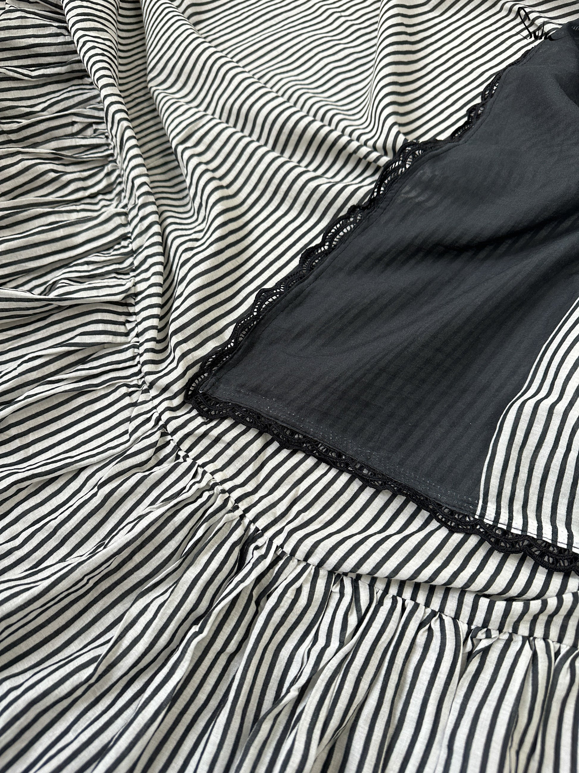 Write your story of togetherness in this grey cotton saree with ruffles and digital prints.