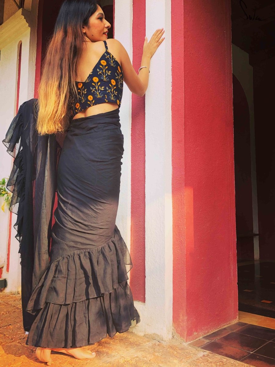 NOTE : Fall and edging is not required for a ruffle saree. You can drape this saree like a regular saree as it is not pre stitched.