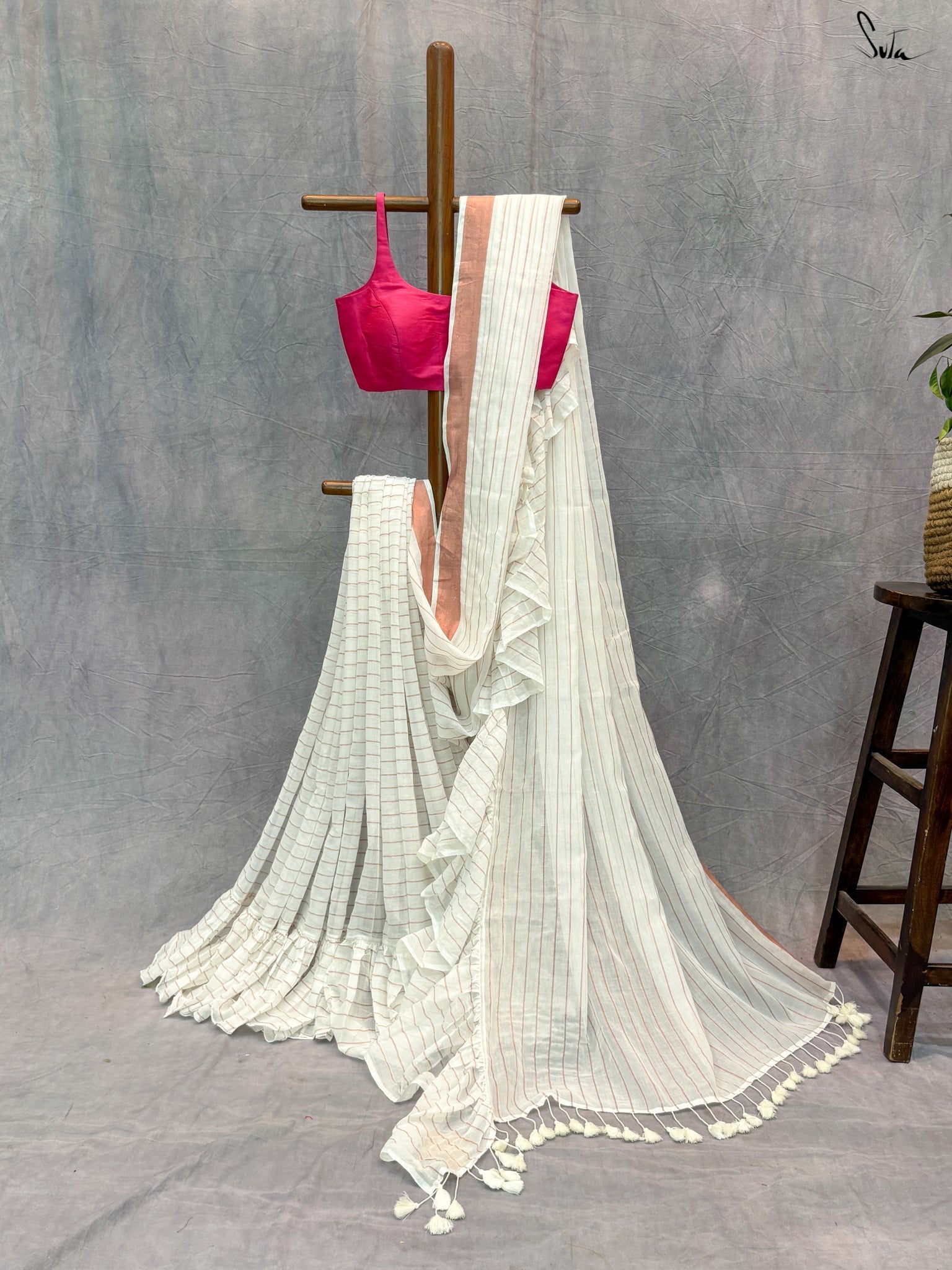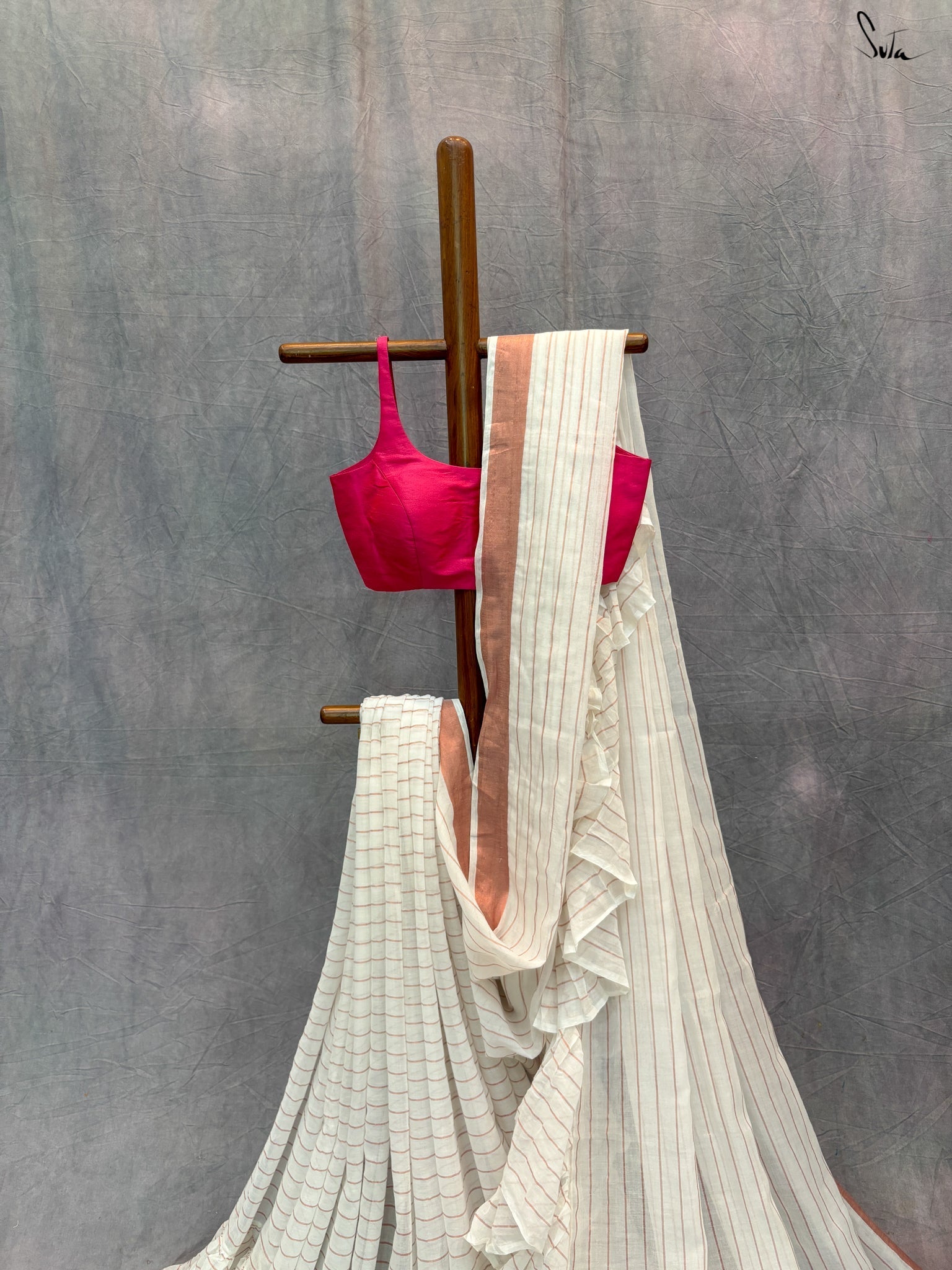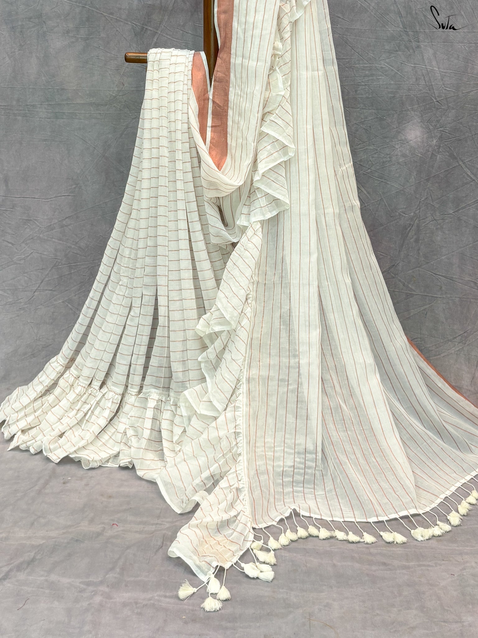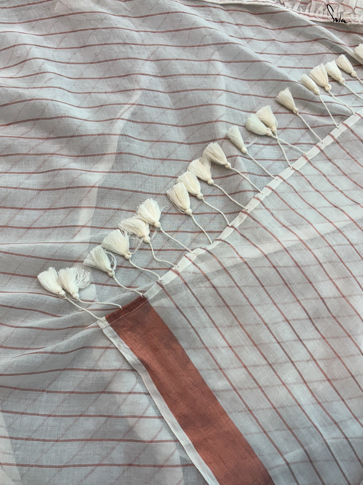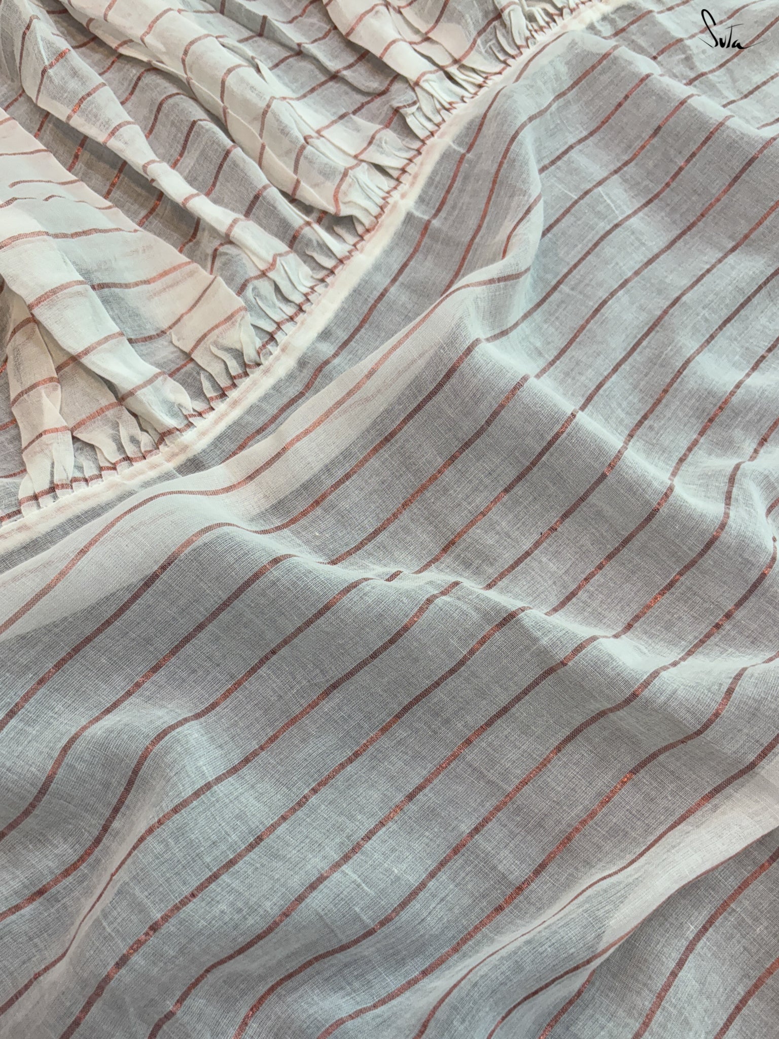 The mul cotton is what we call ˜made in heaven at Suta. Known in West Bengal as mul mul, the fabric is buttery soft and delicately beautiful. The weave of this fabric is very fine, and this lends a very fluid texture to it that makes draping it a breeze. It is truly like a hug that wraps you in its love!