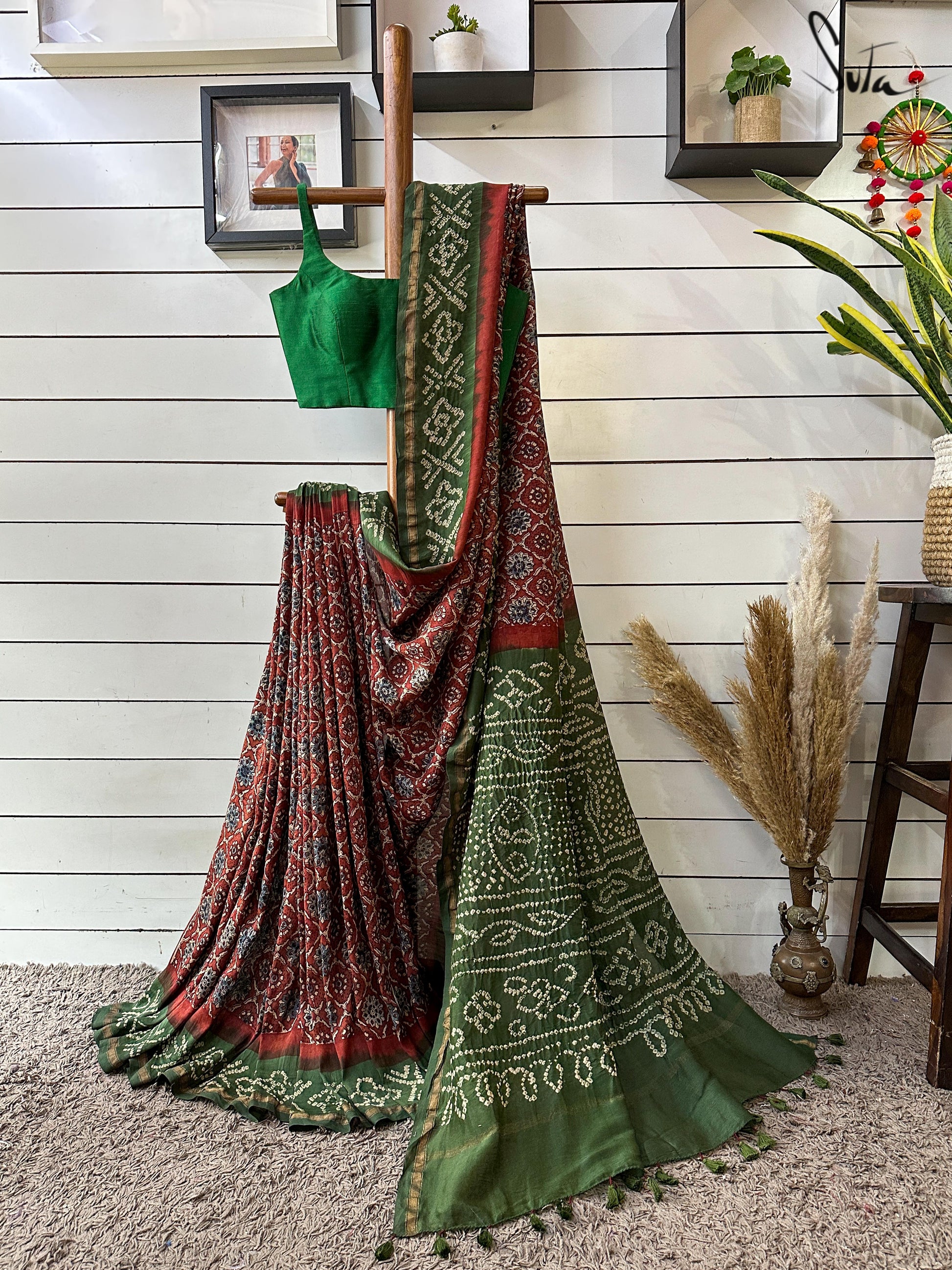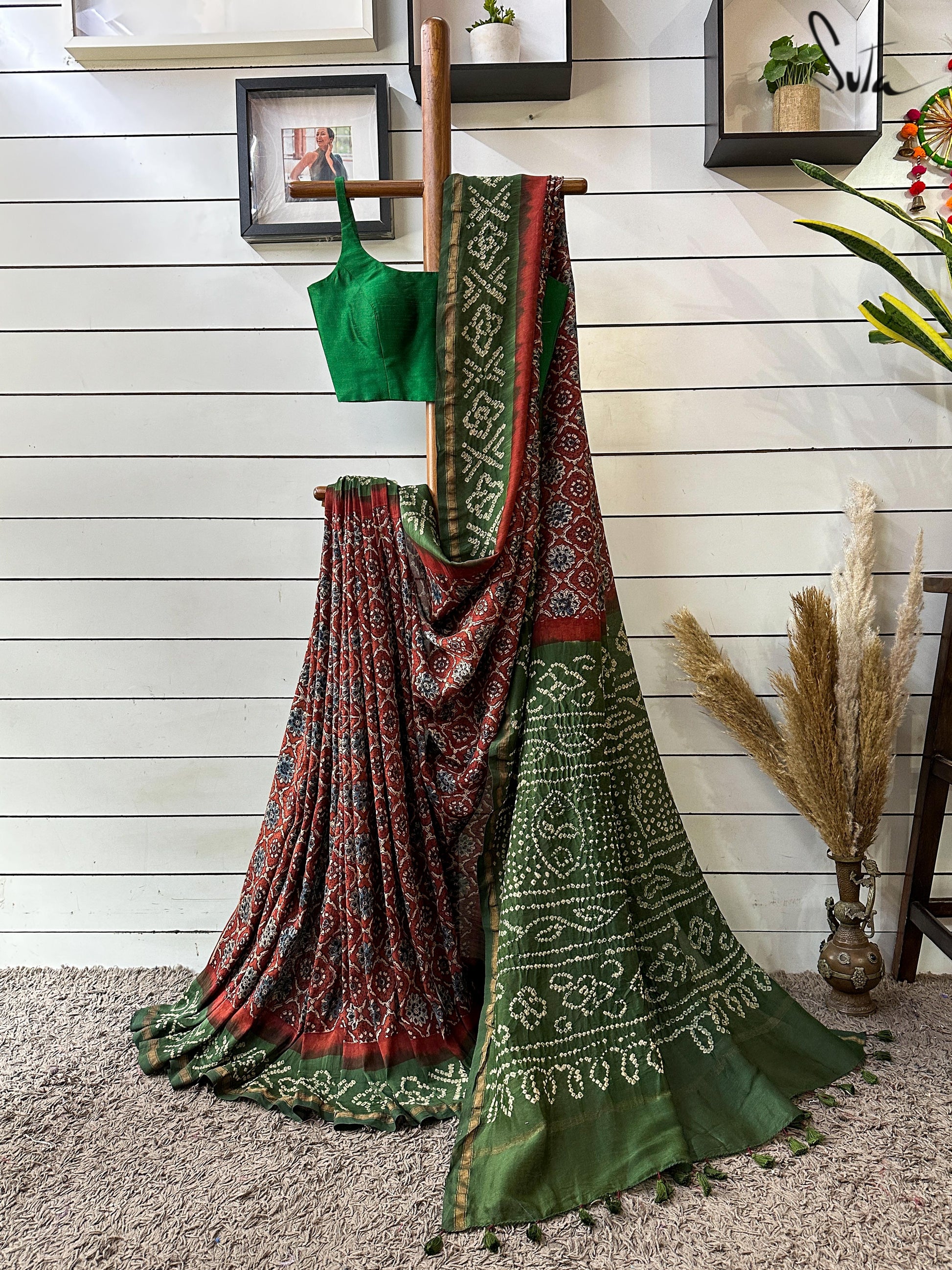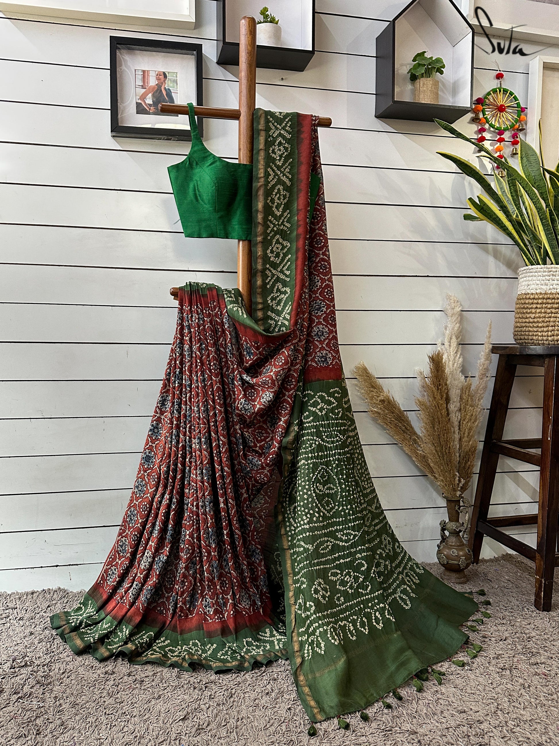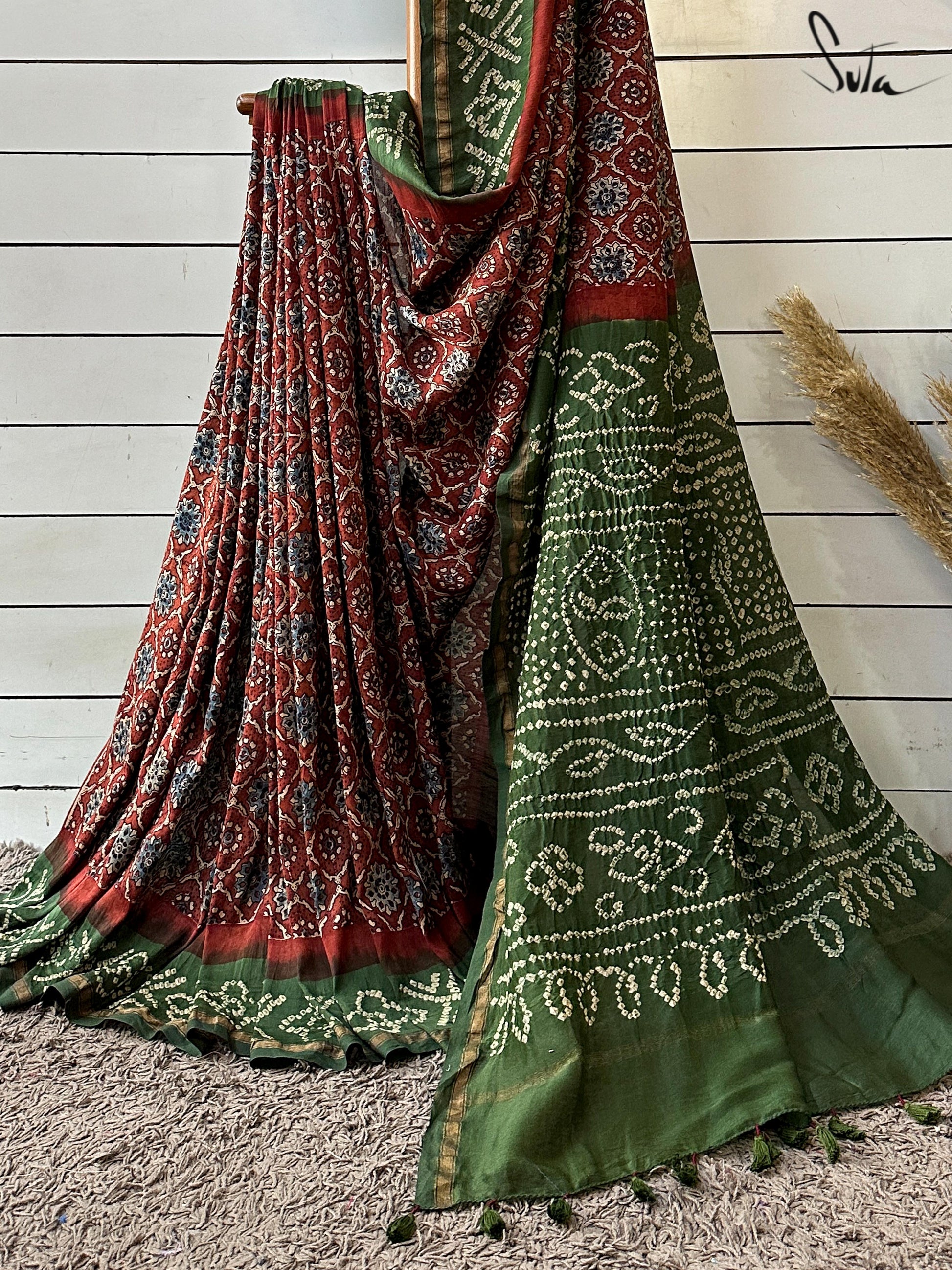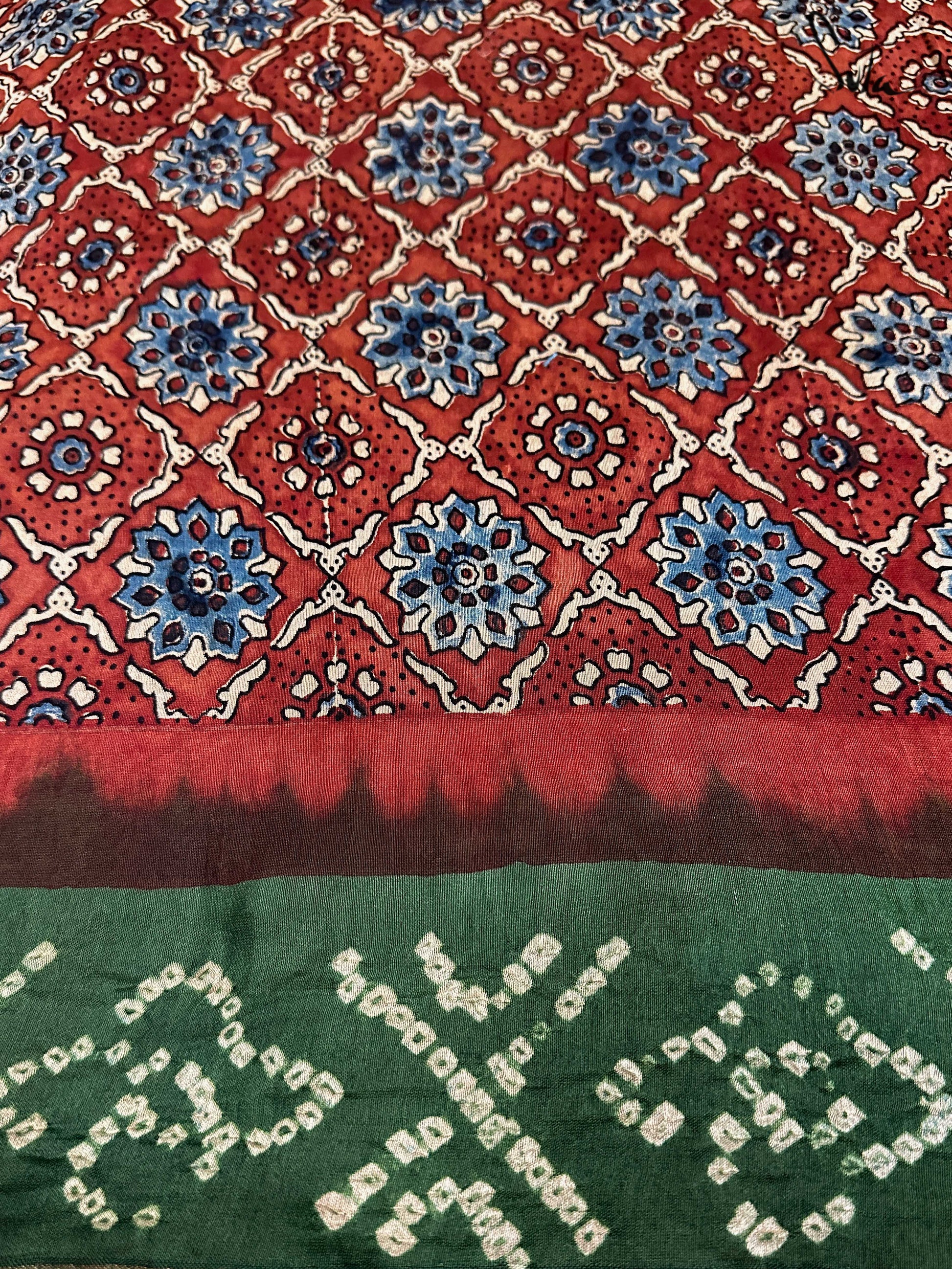 Fabric: Saree chanderi body ajrakh pbb bandhani