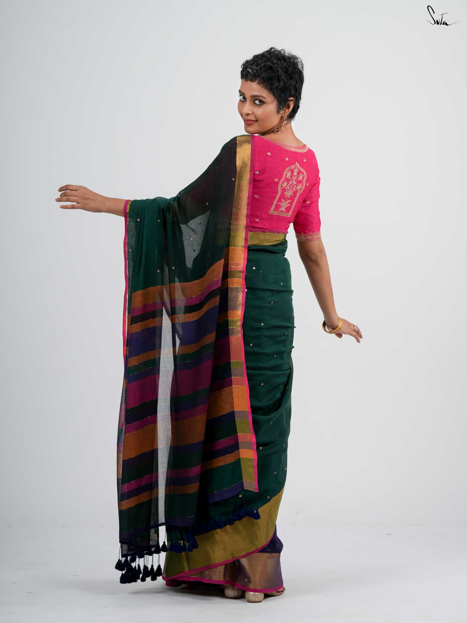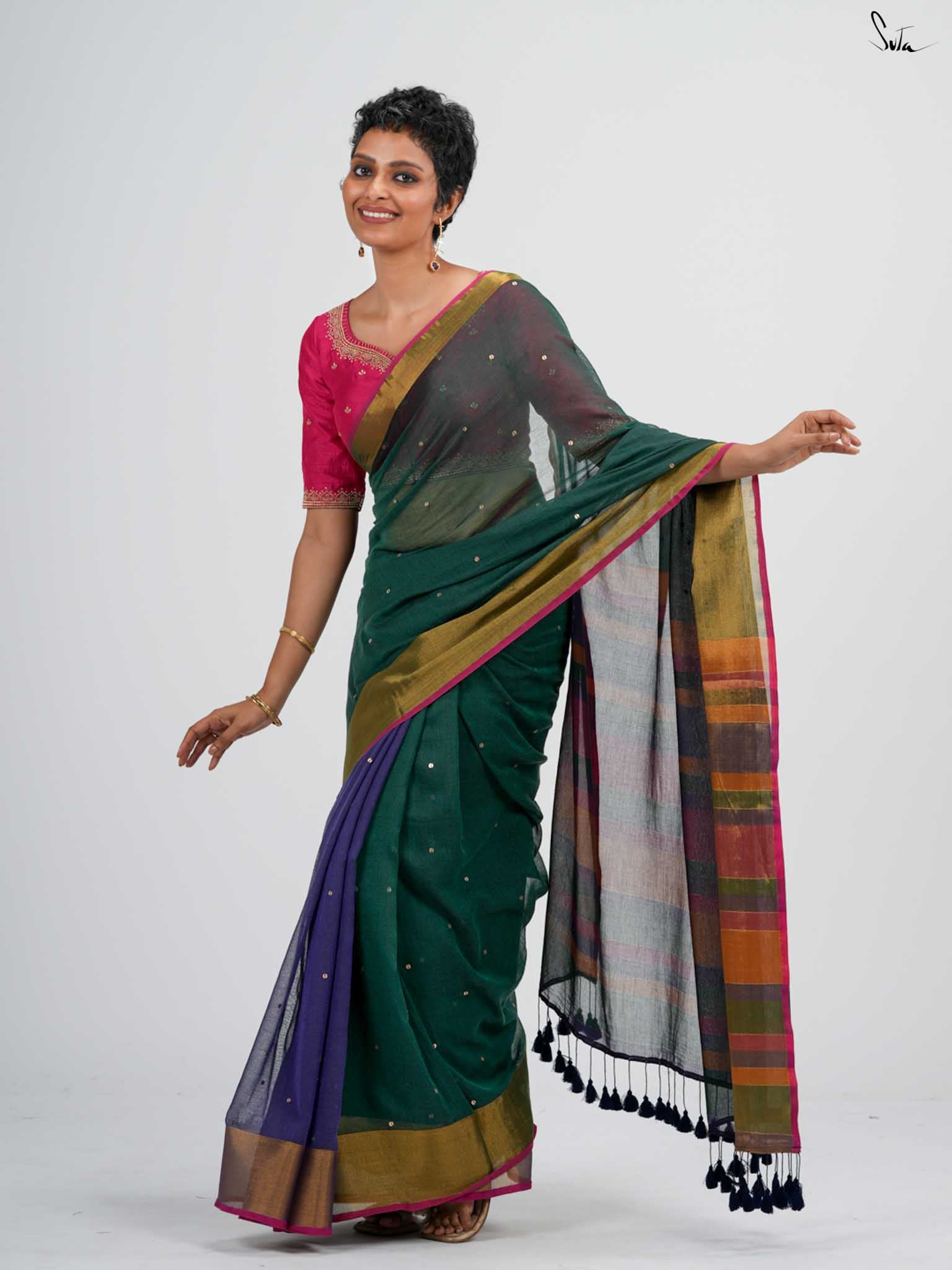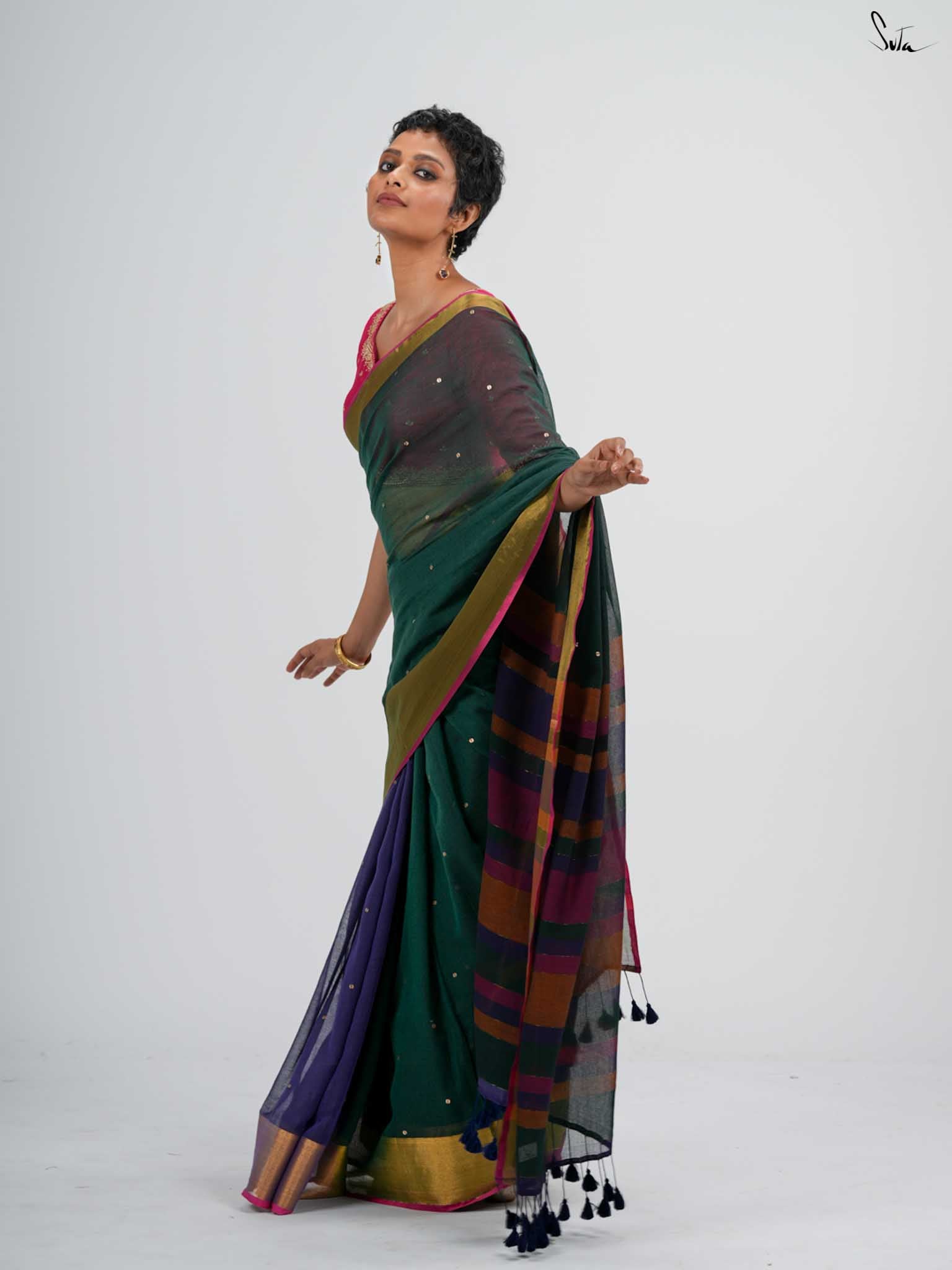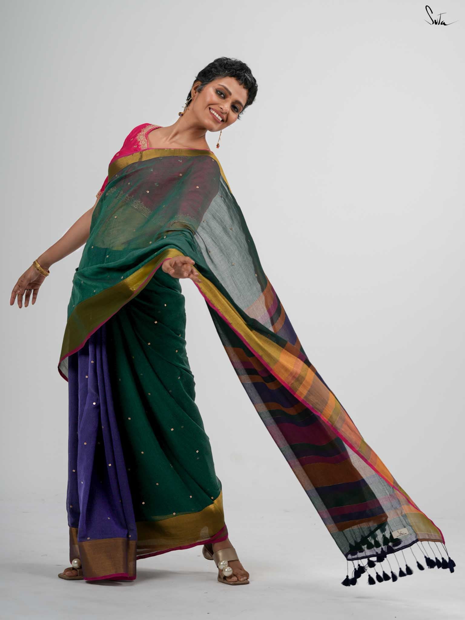 The mul cotton is what we call ˜made in heaven at Suta. Known in West Bengal as mul mul, the fabric is buttery soft and delicately beautiful. The weave of this fabric is very fine, and this lends a very fluid texture to it that makes draping it a breeze. It is truly like a hug that wraps you in its love!