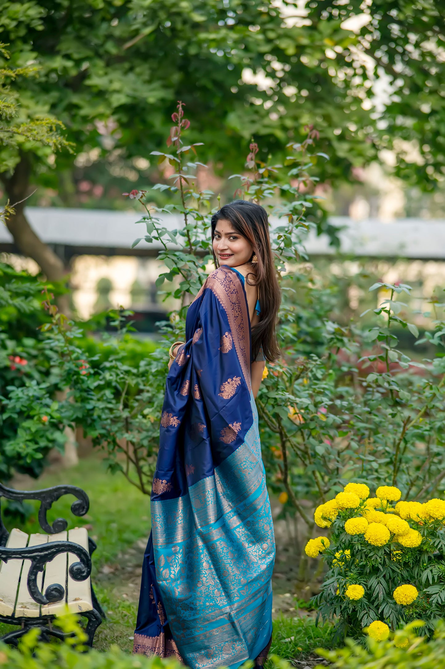 • Nivi drape: Choose a Banarasi silk saree for a wedding and drape it with a flowing pallu to captivate attention.
