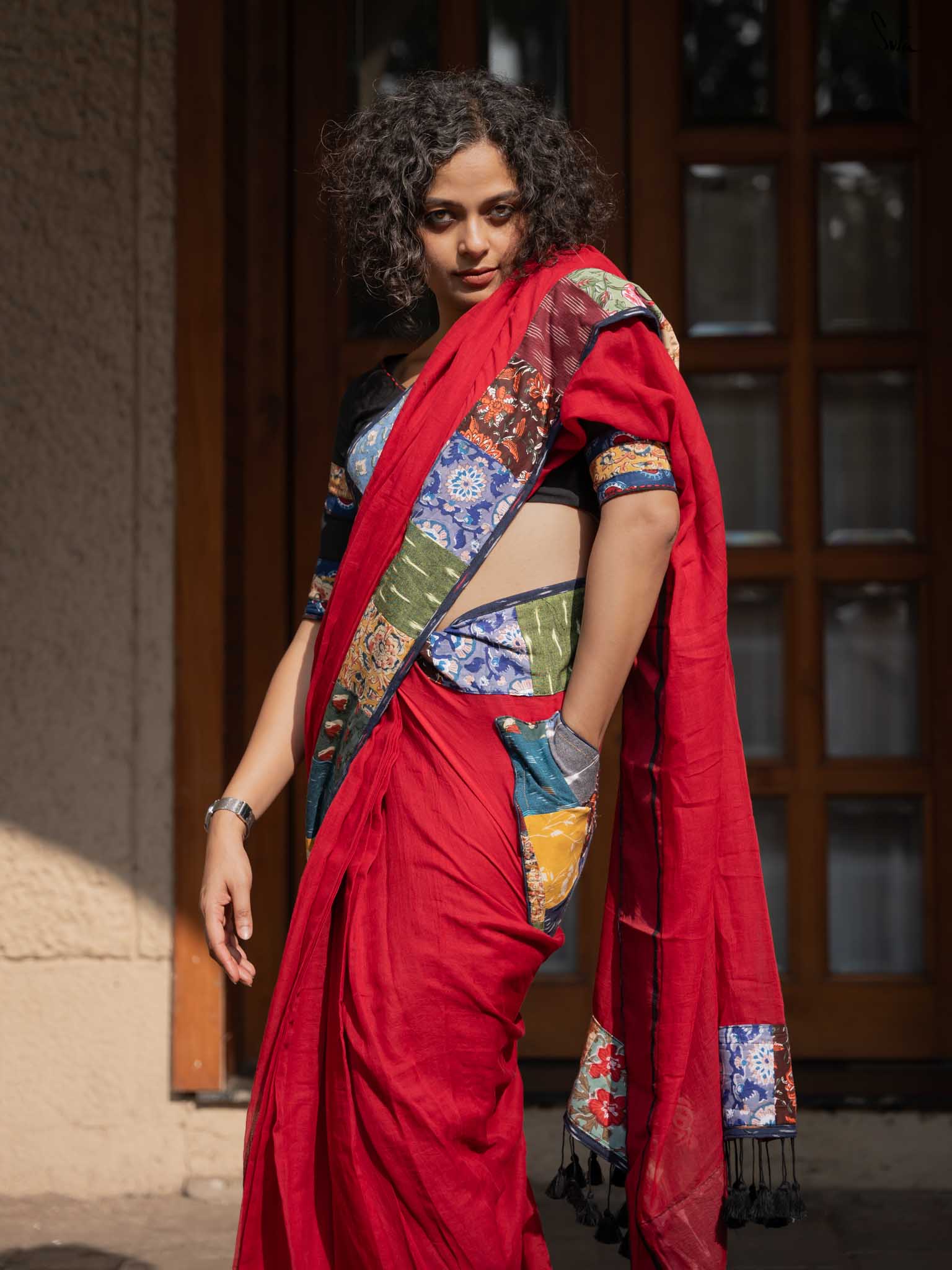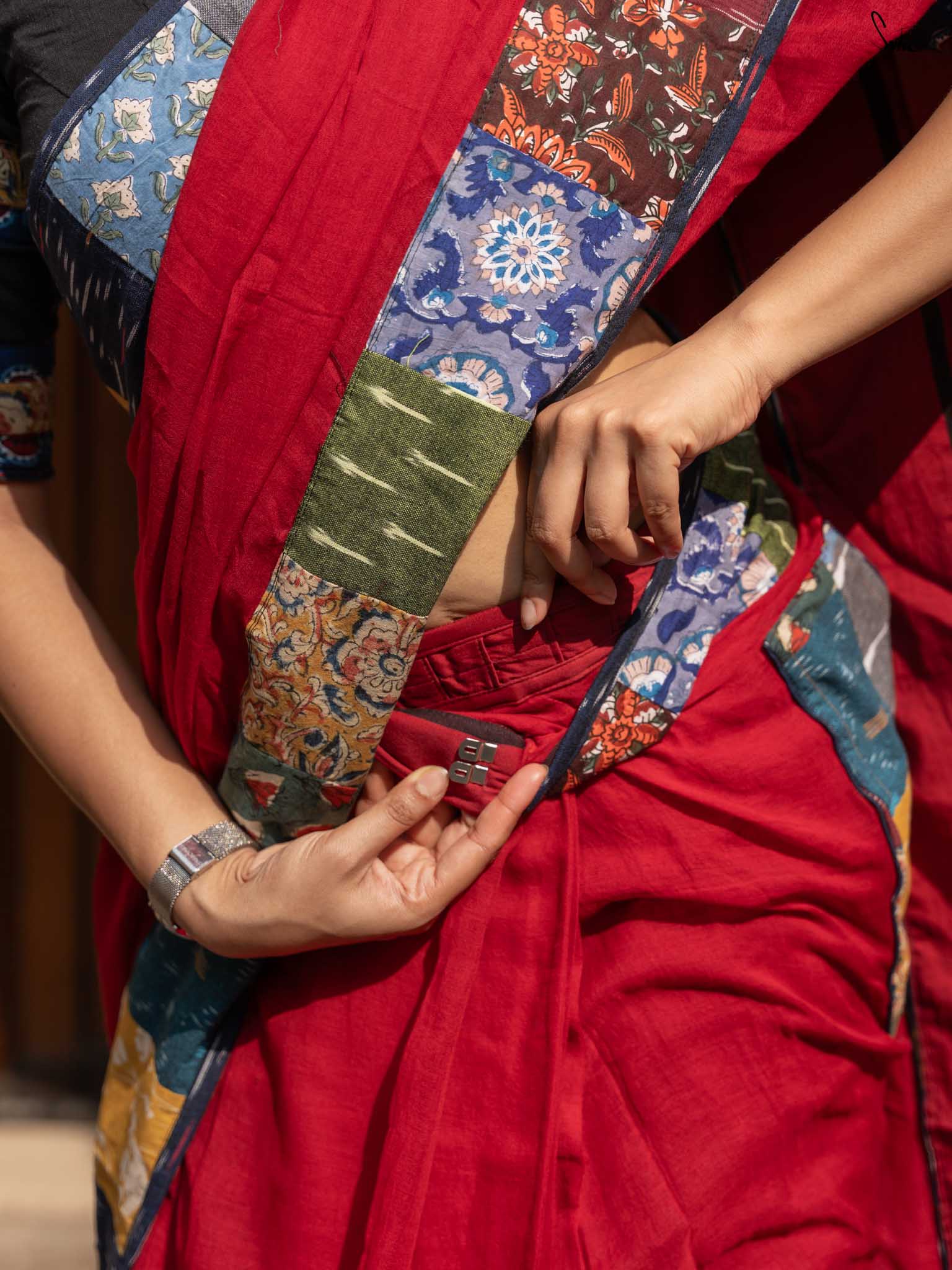 Note : This saree is a unique piece of art, crafted by skilled artisans. Variations in fabric placement and patterns highlight its handcrafted charm, making it truly one of a kind.