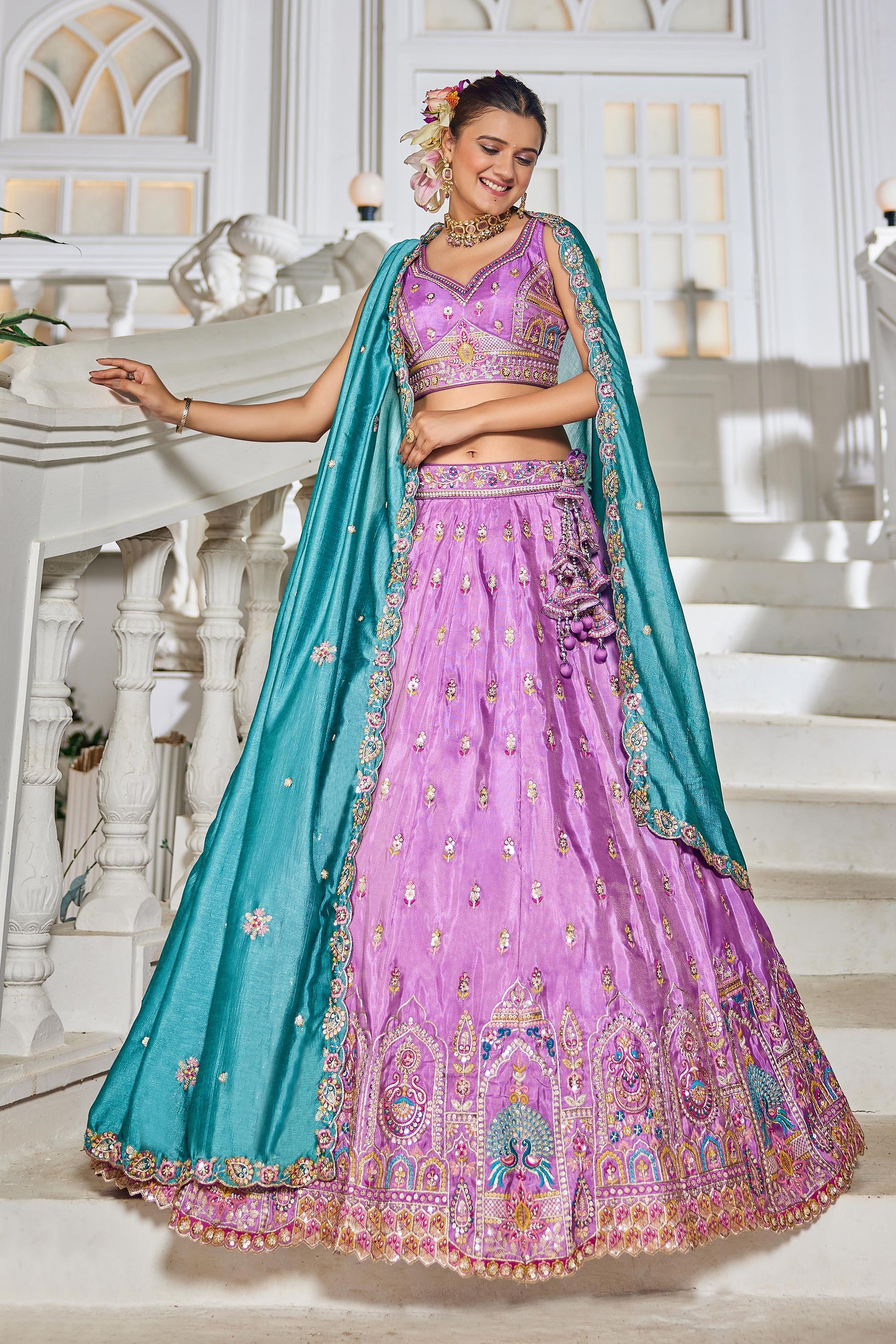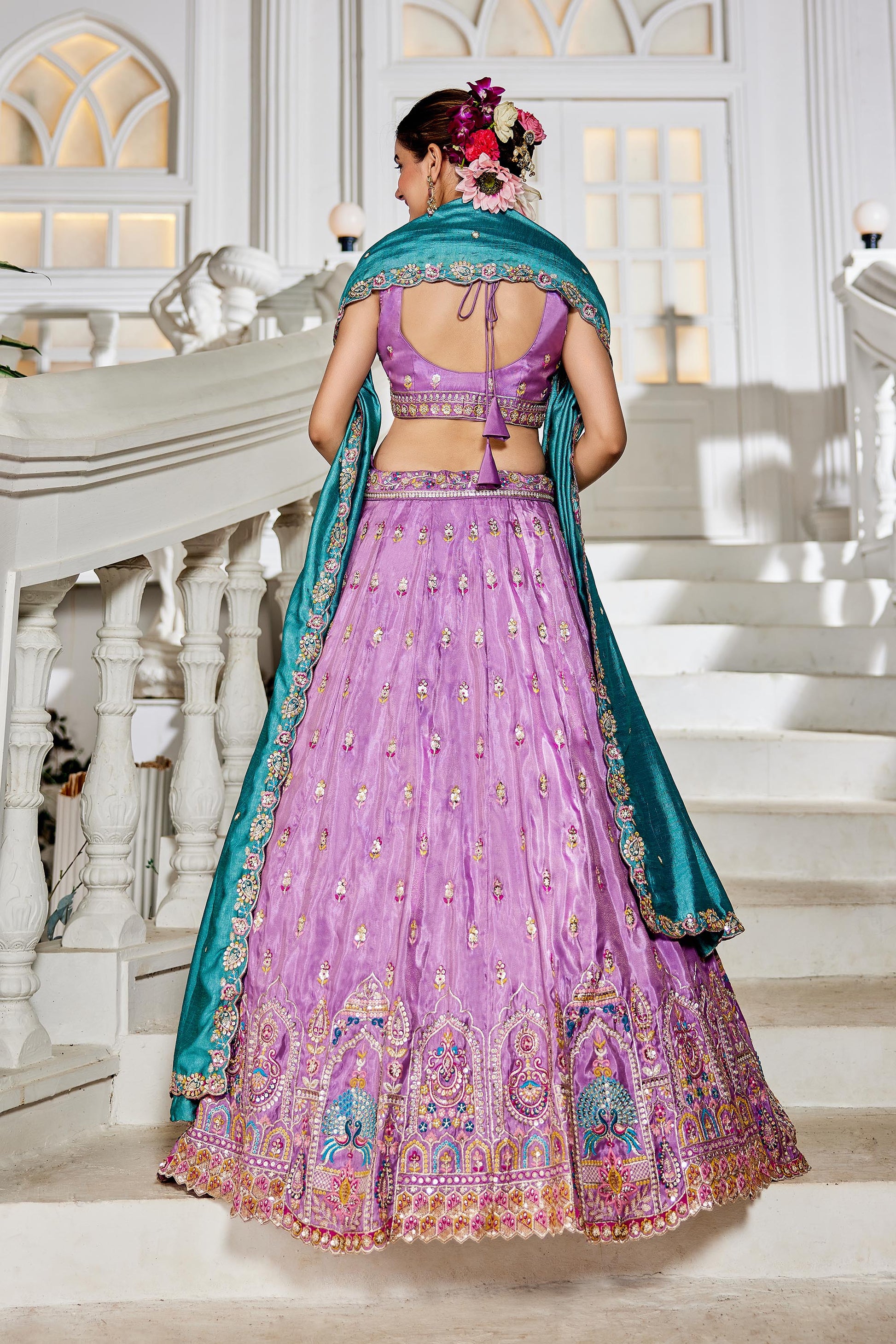 Lavender colour Tissue Sequinse embroidery Lehenga choli & Dupatta