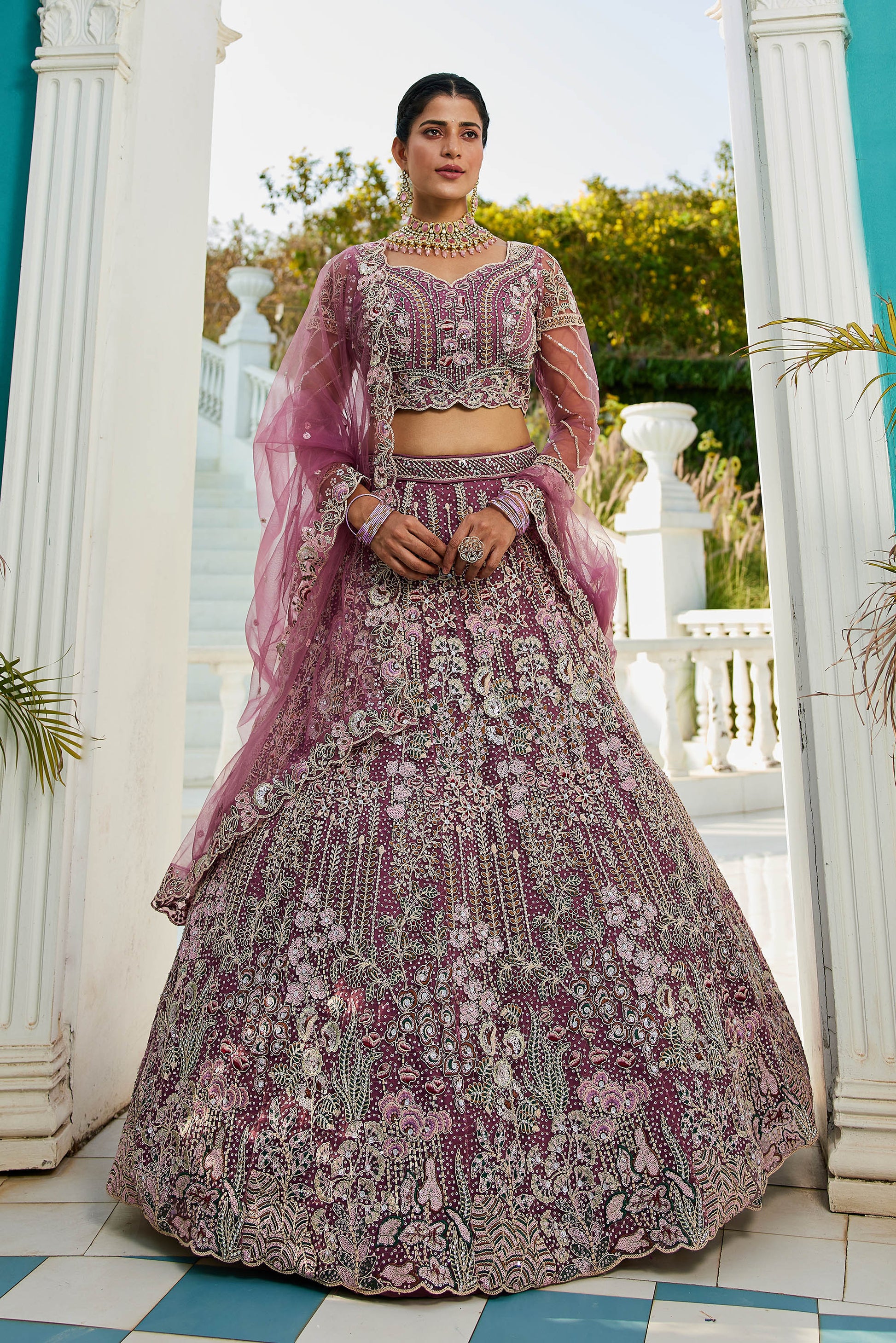 Lavender net and Coding & Zarkan embroidery Lehenga choli & Dupatta