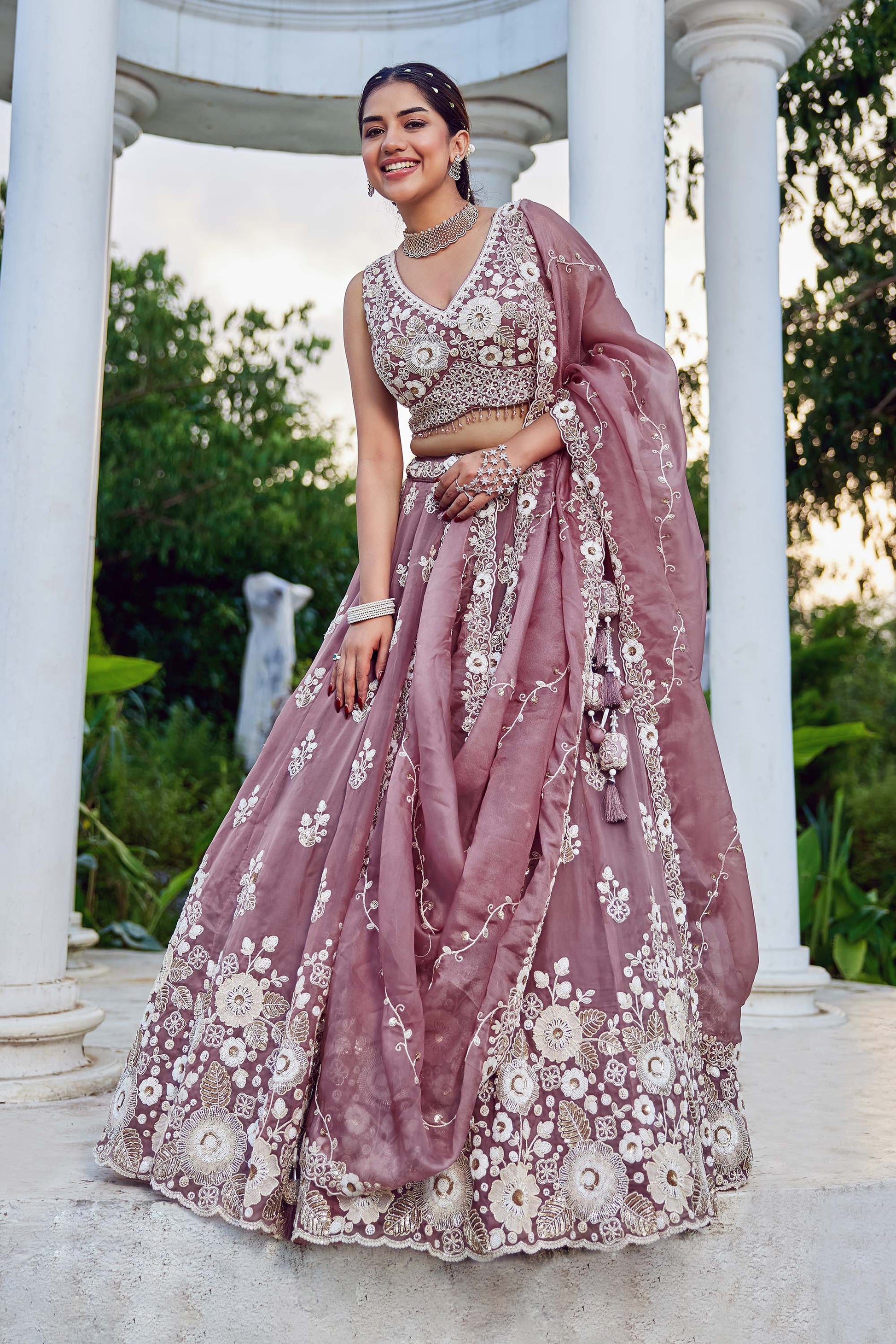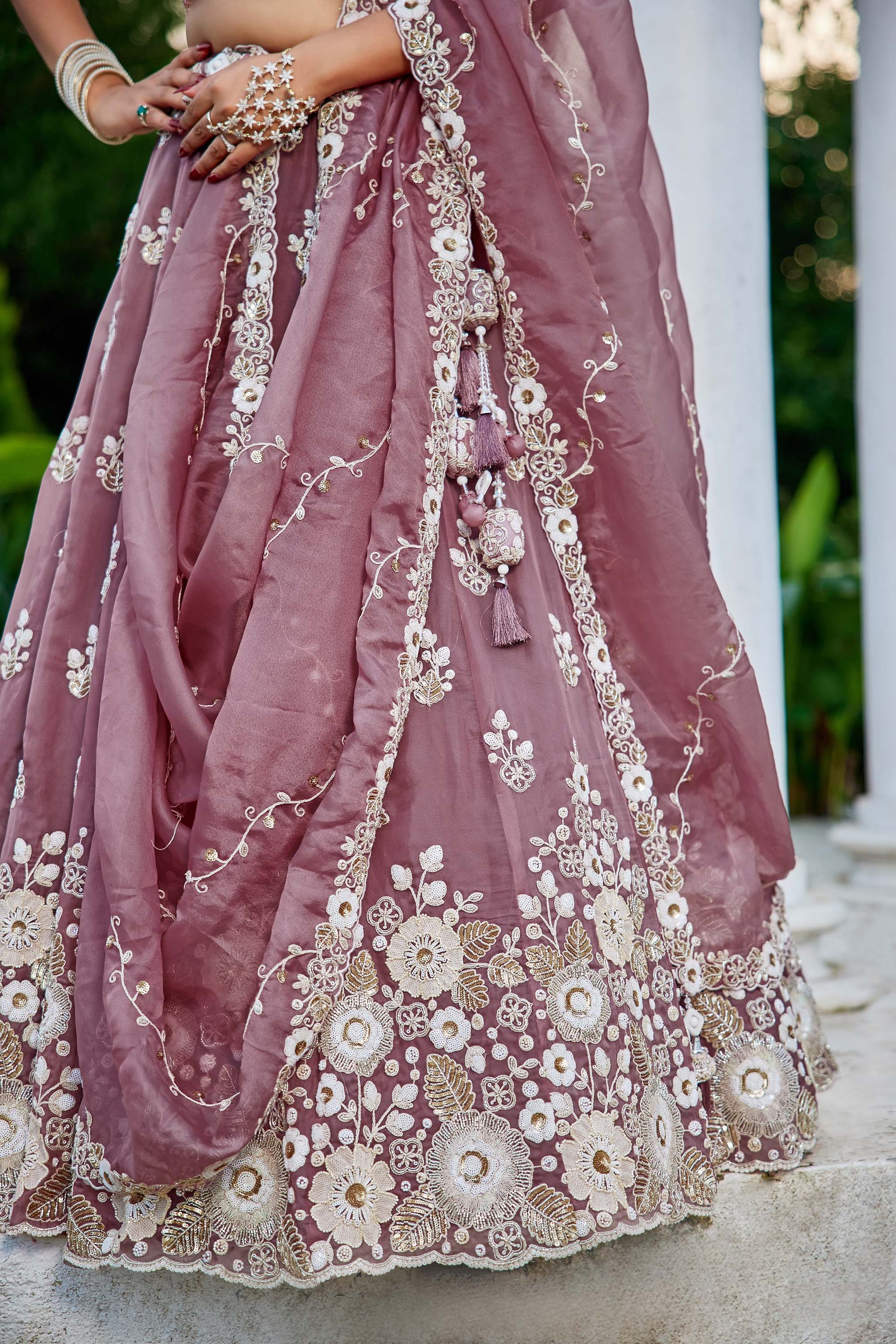 Lavender Organza Beads & Sequins Embroidered Ready to Wear Engagement Lehenga