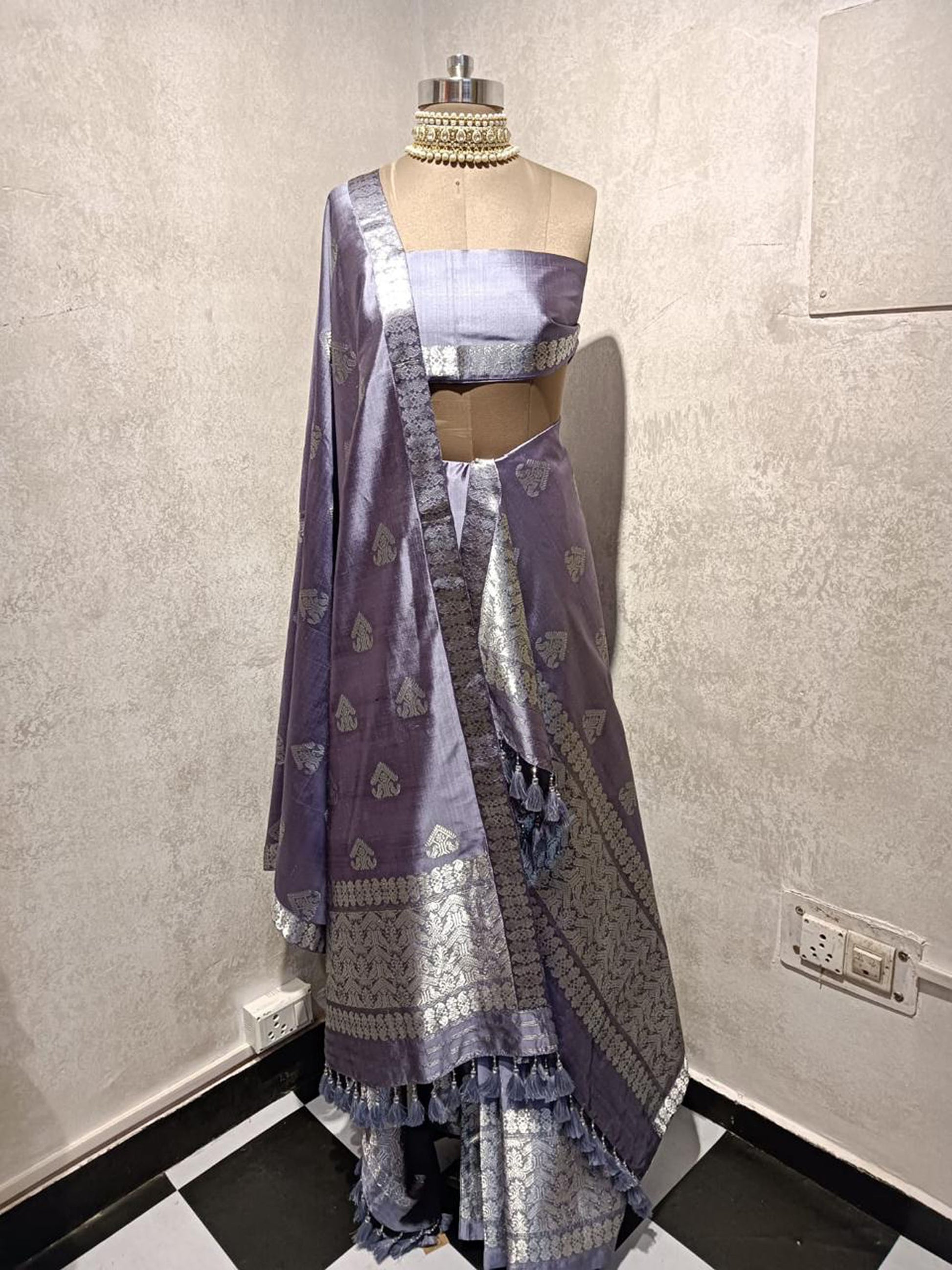 Lavender Pure Assam Silk Hand woven Mekhela chadar