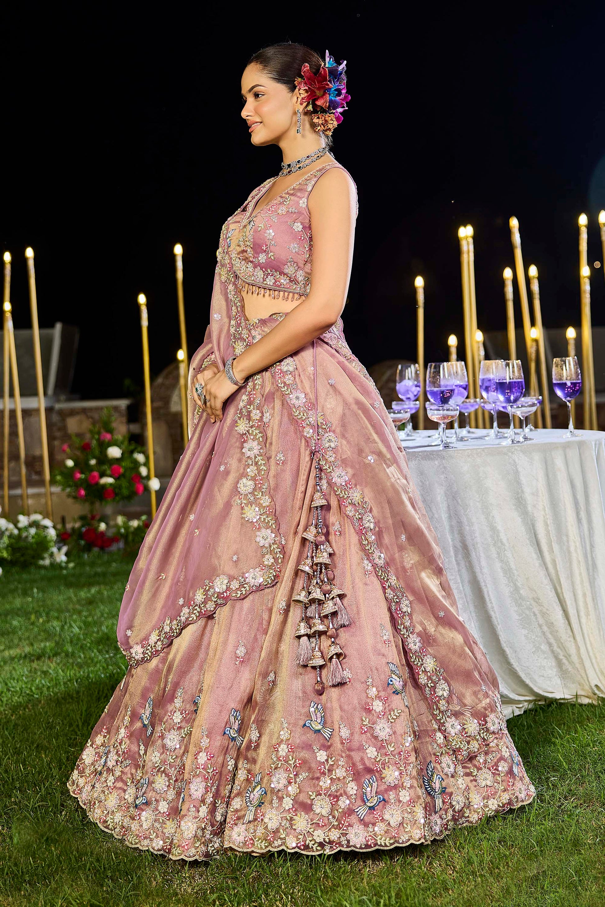 Lavender Tissue Beads & Sequins Embroidered Ready to Wear Sangeet Lehenga