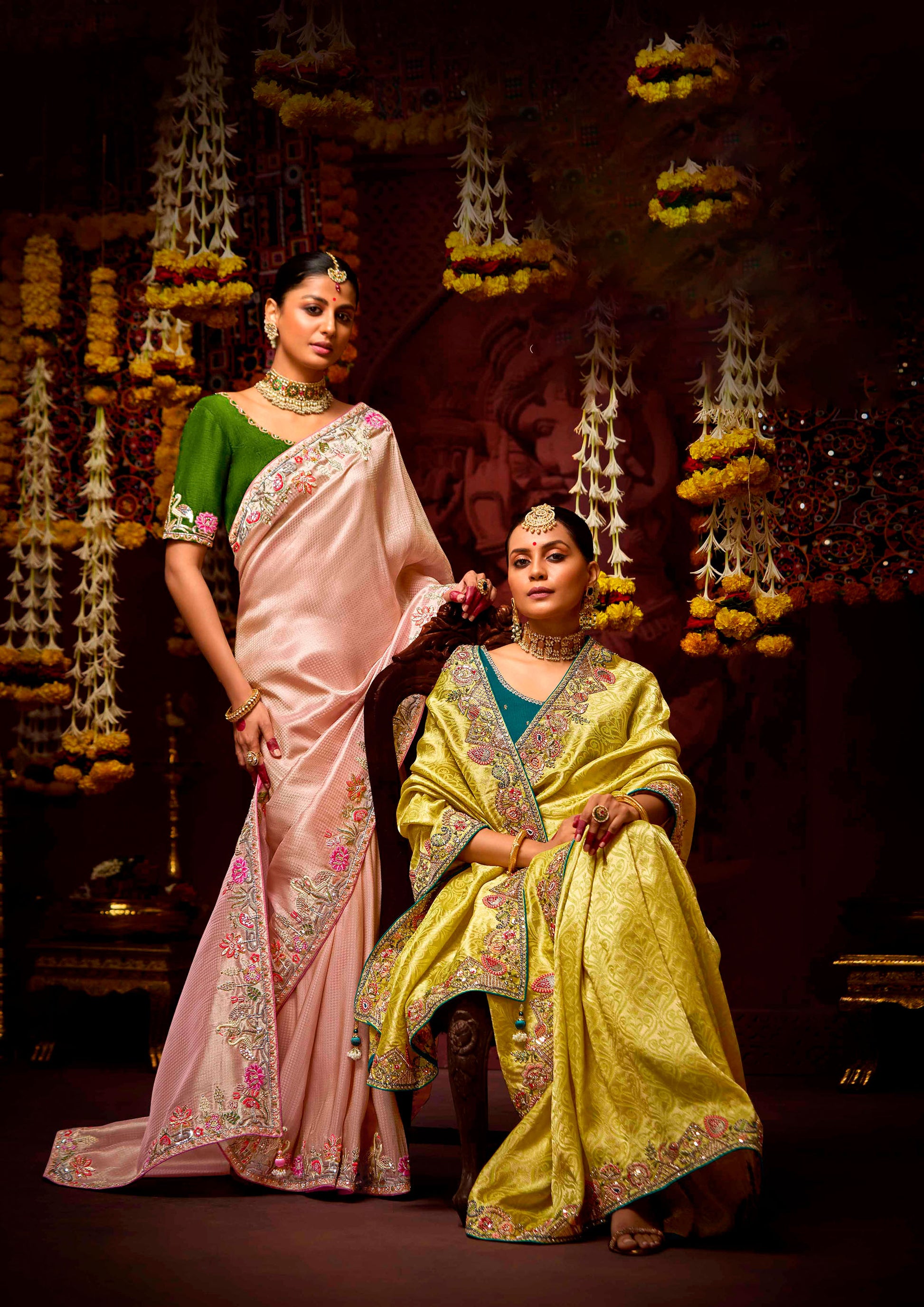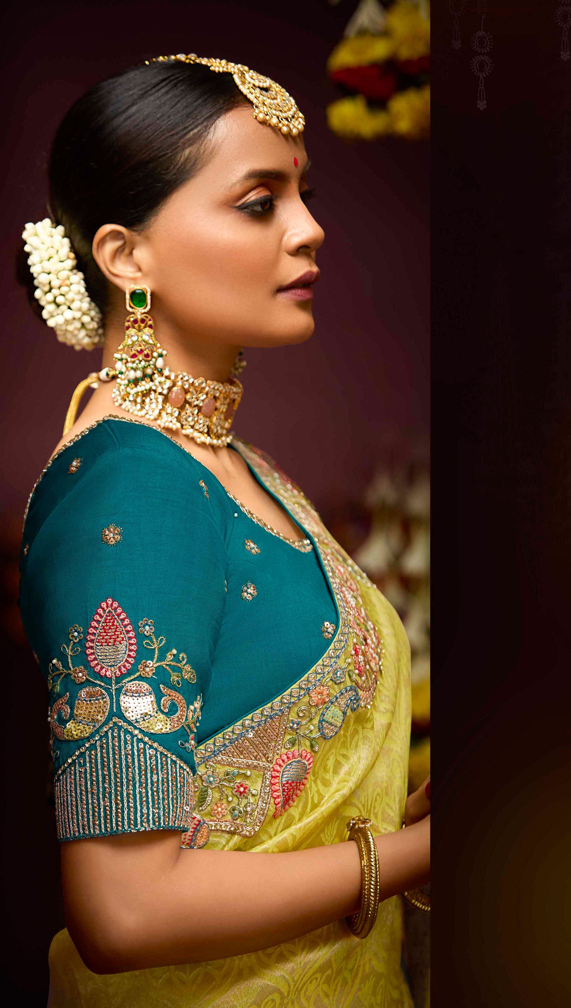 Lemon Yellow Banarasi Zari Woven Prasang Wedding Saree