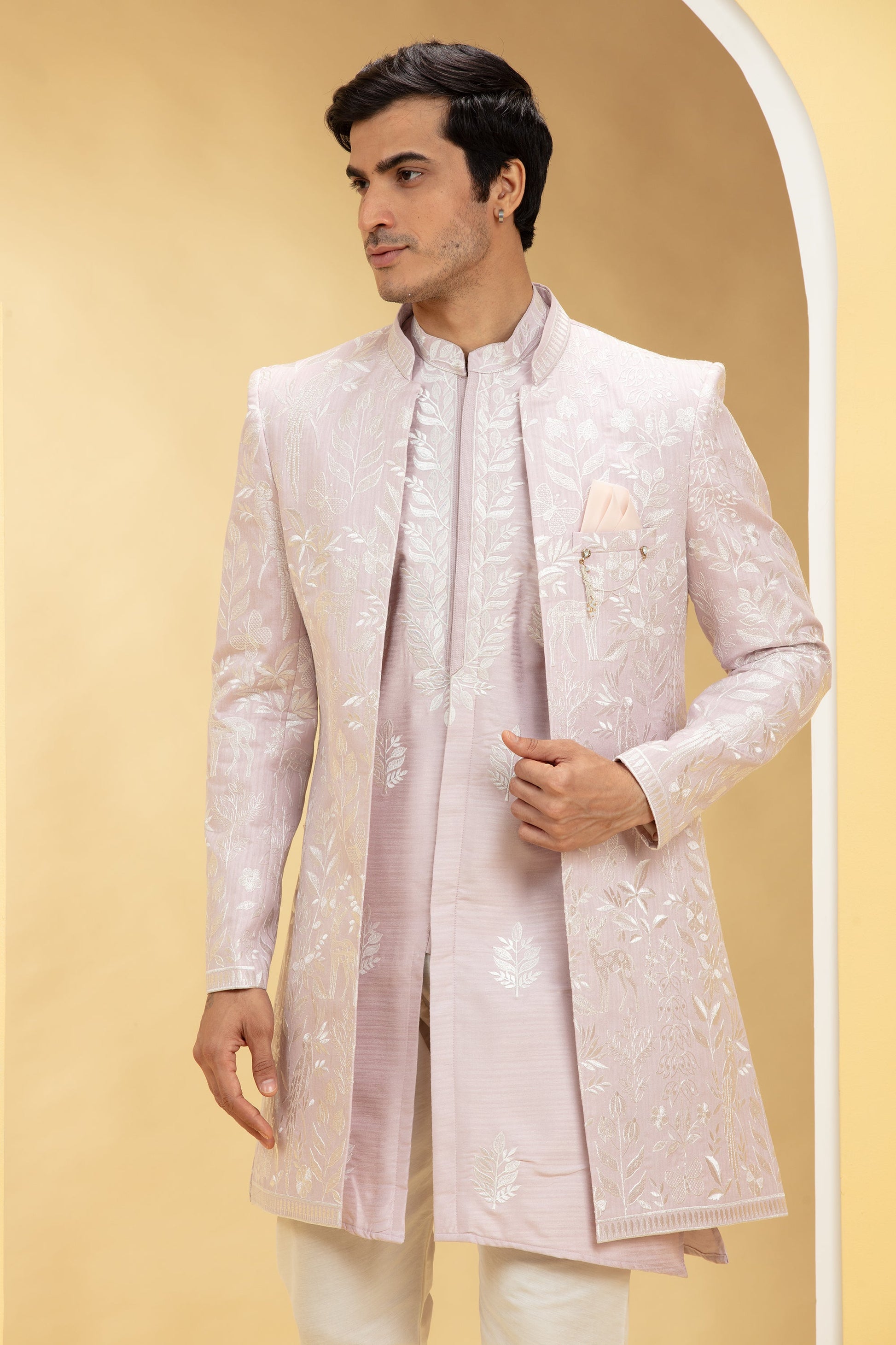 Light Mauve Indo Western Jacket Set with all over Resham work