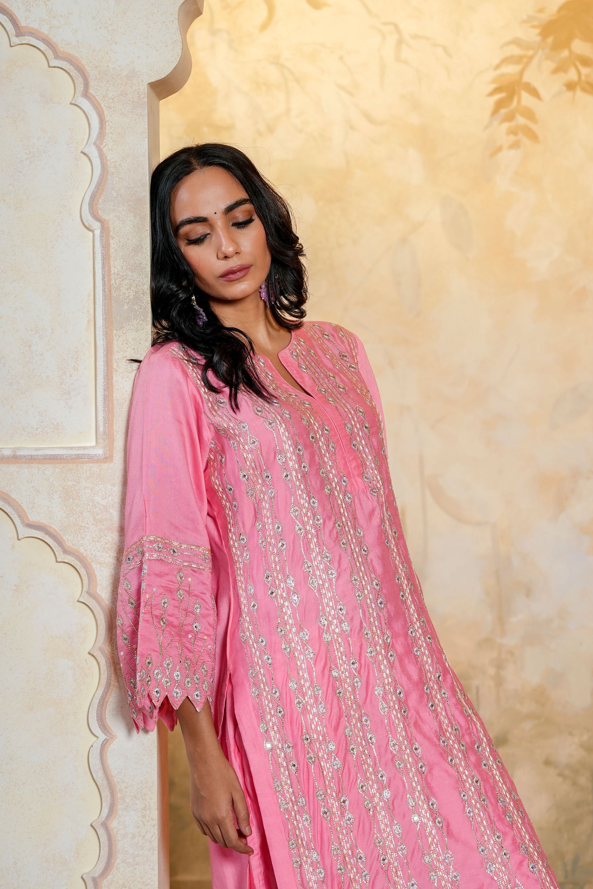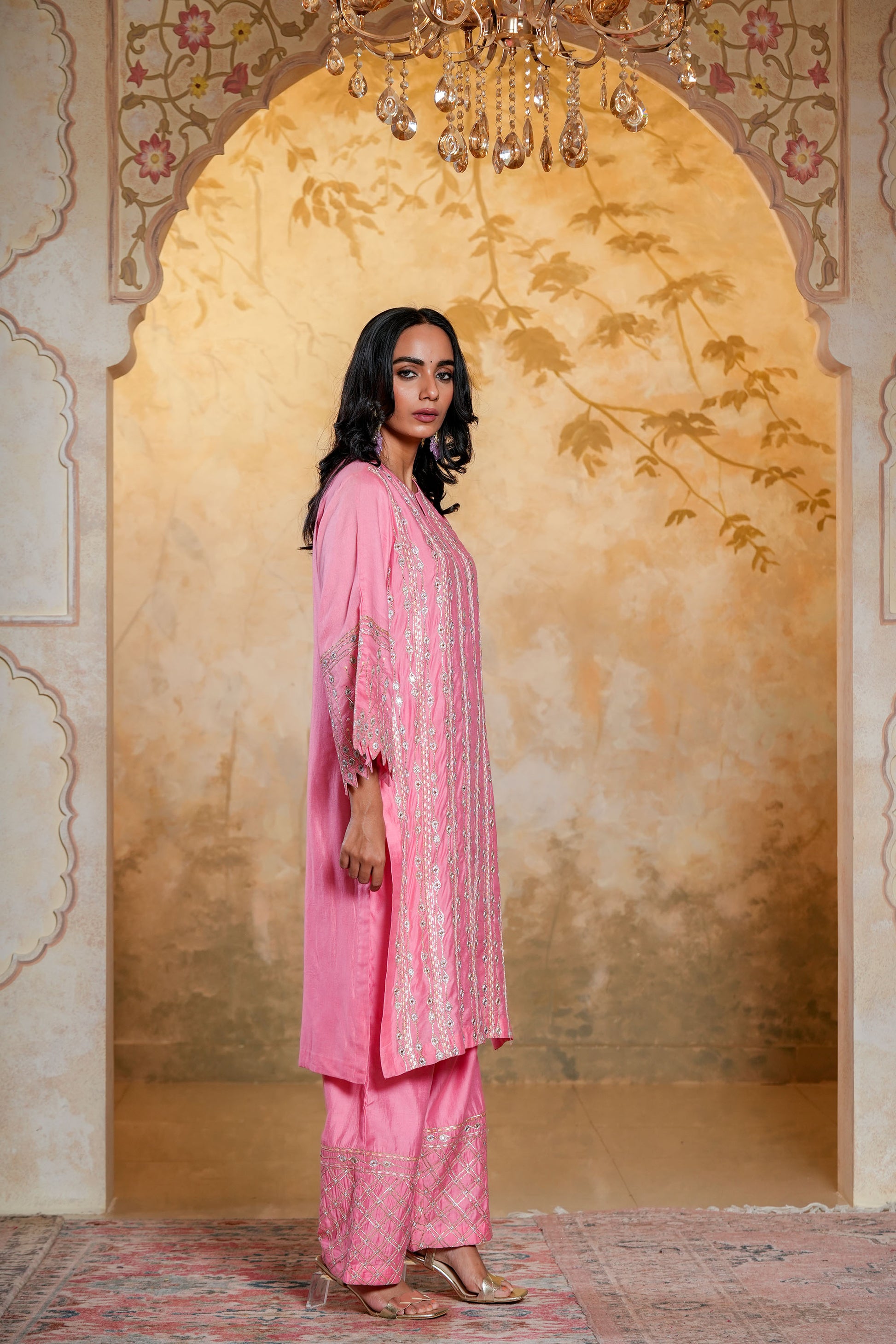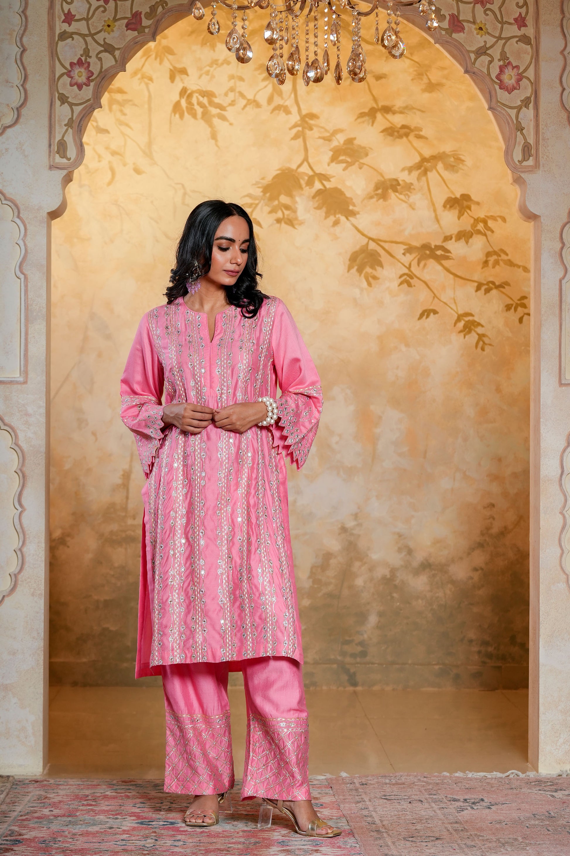 Light Pink Chanderi SequinsAnd Gota Work Kurta Set