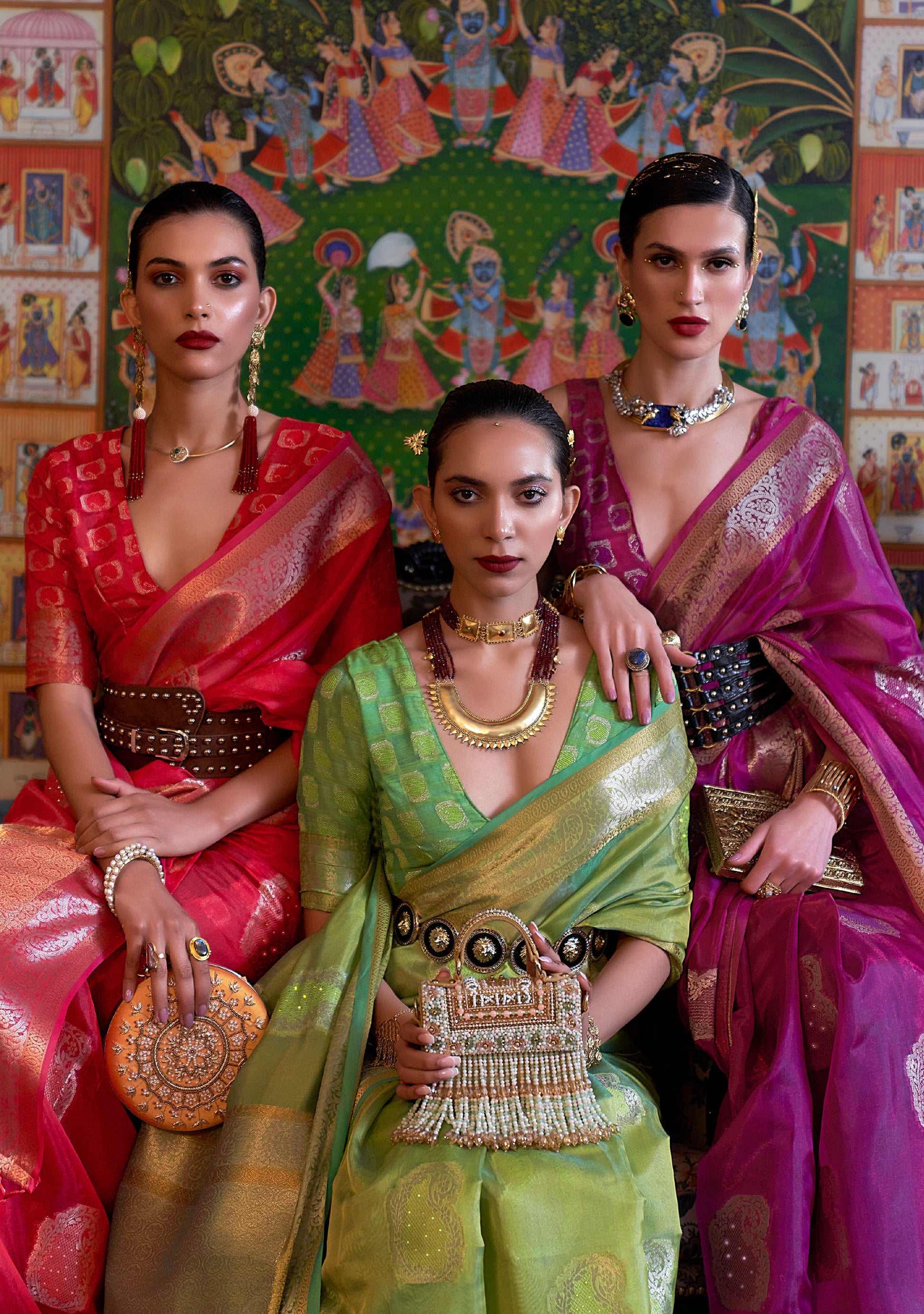 Lime Green Kabinni Organza Two Tone Handloom Saree