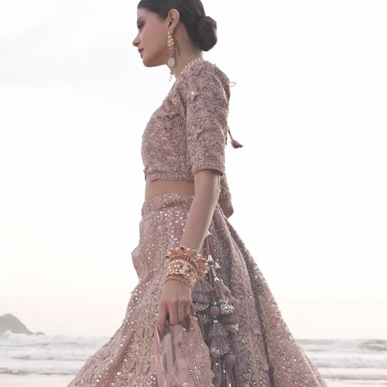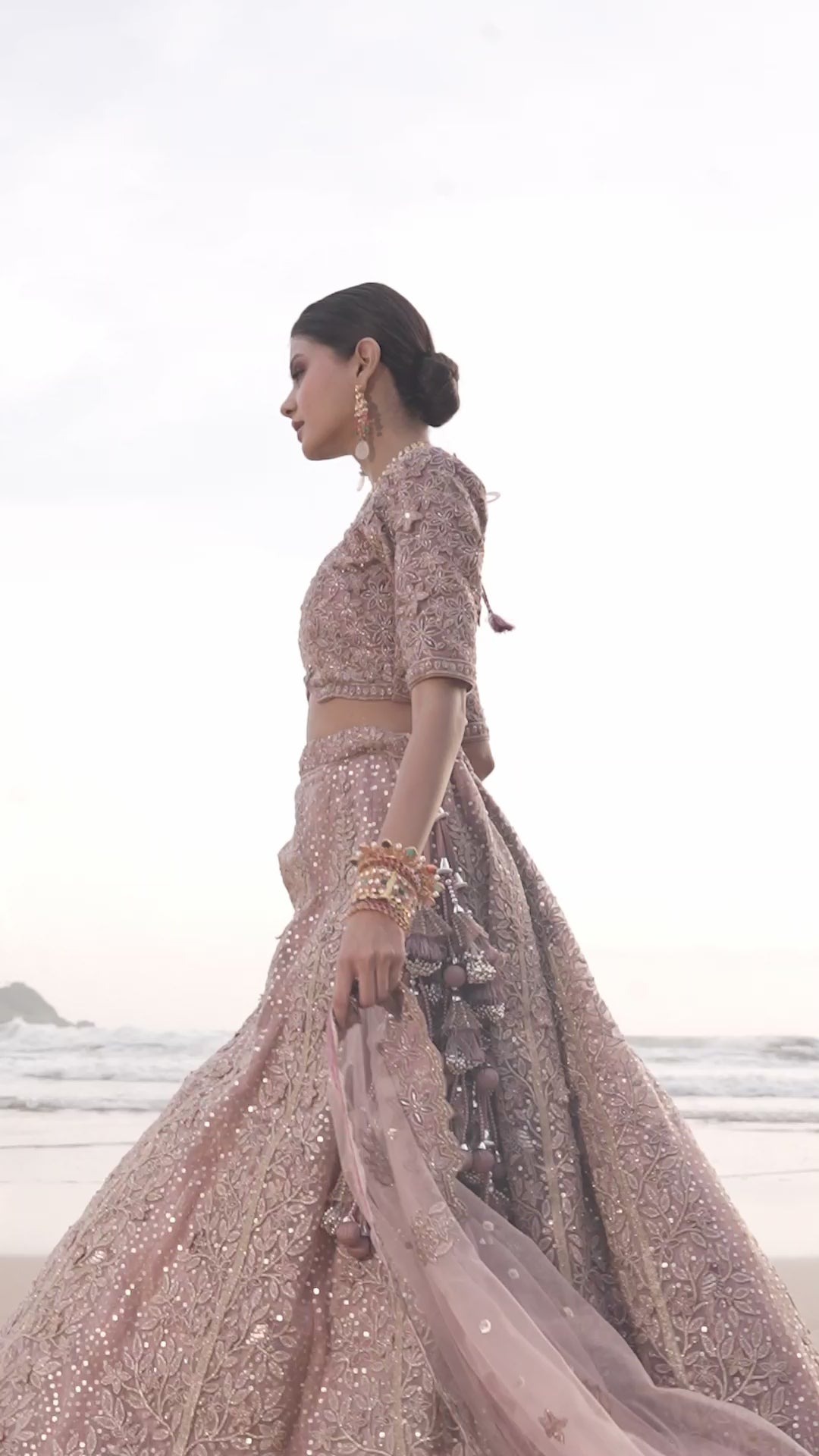 Mahavir Machine Embroidered Net, Silk Light Pink Bridal lehenga