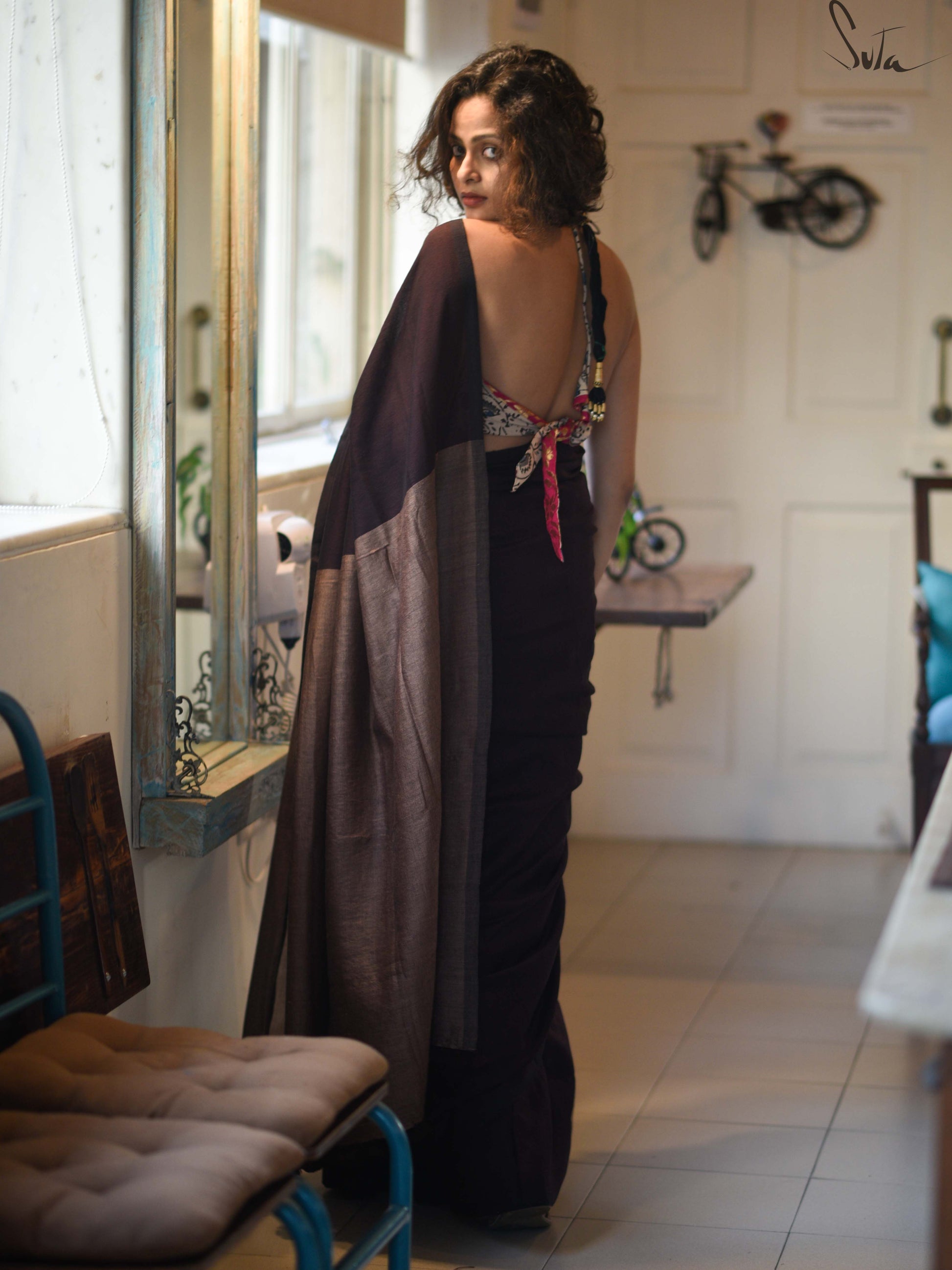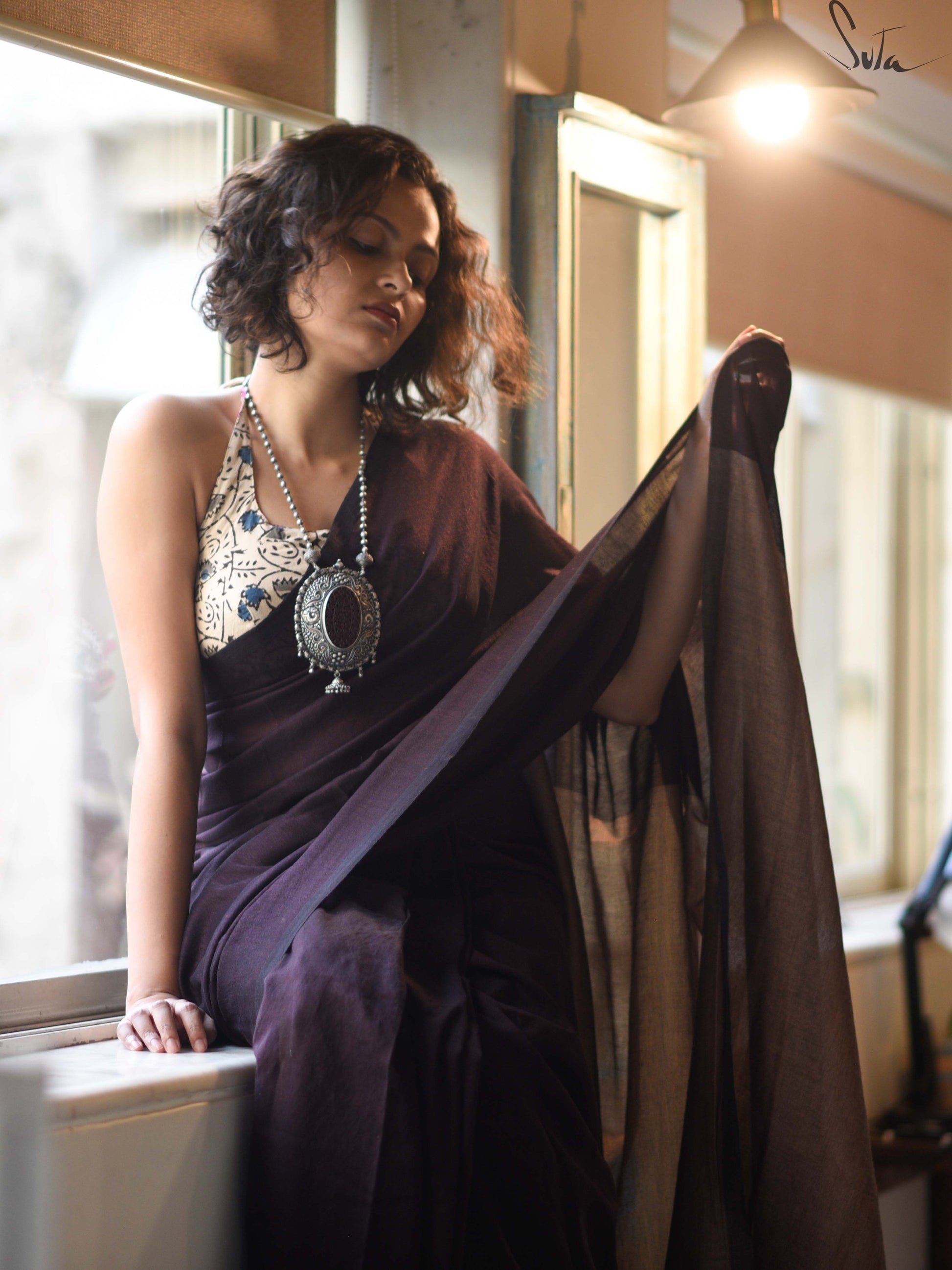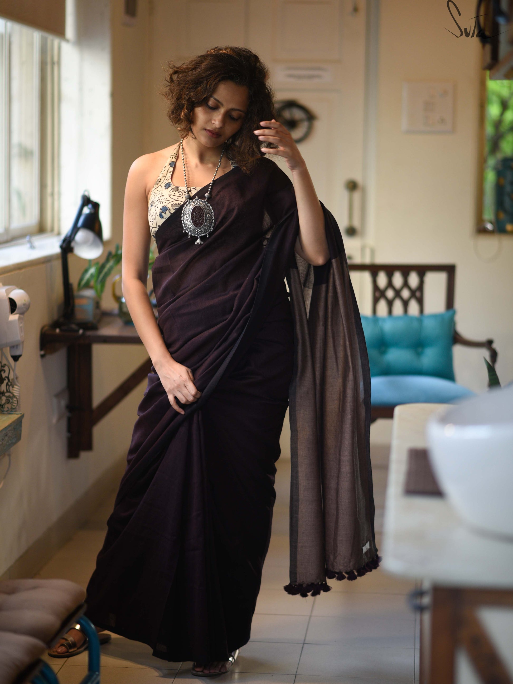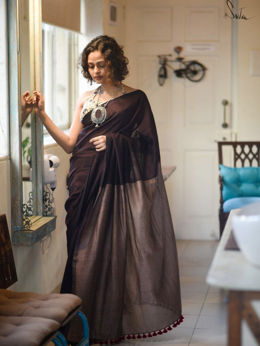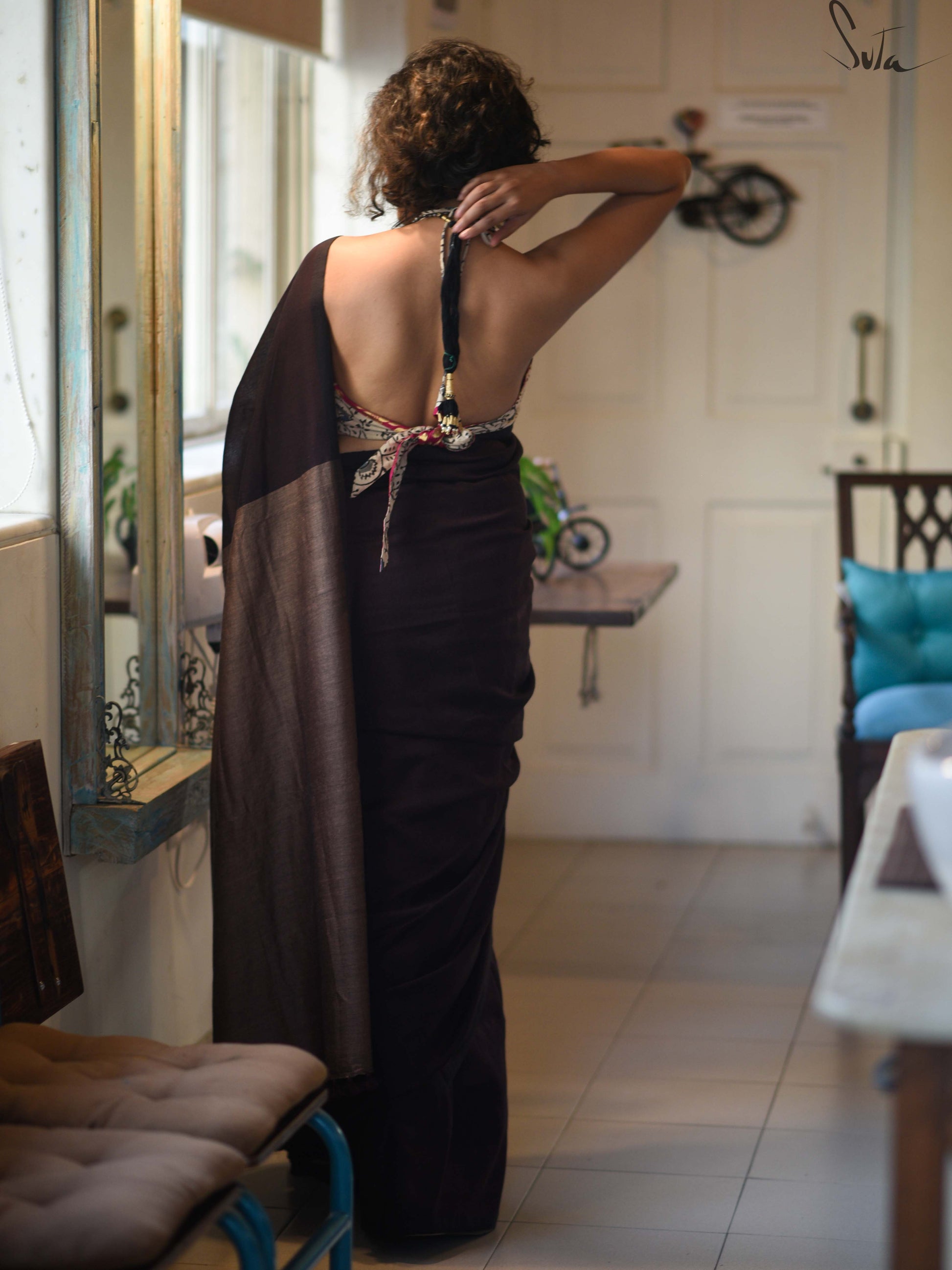 Brown is a colour that is mystically beautiful. This dark brown saree has the right shades of brown to create magic!