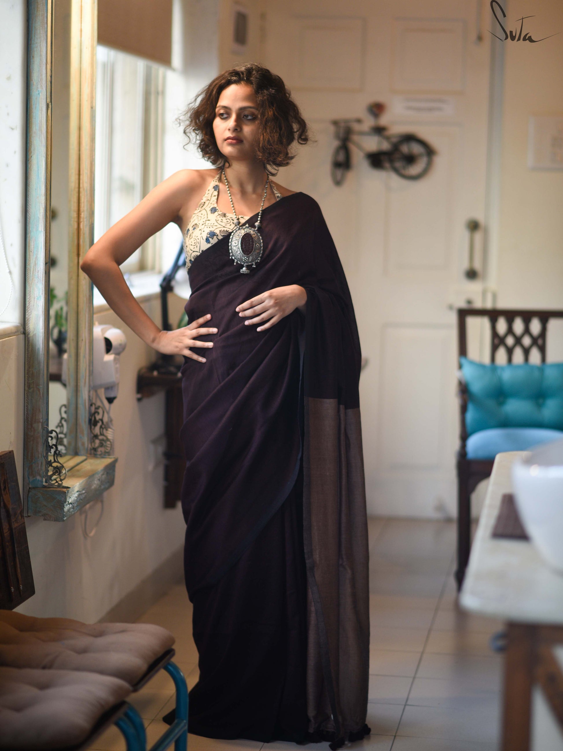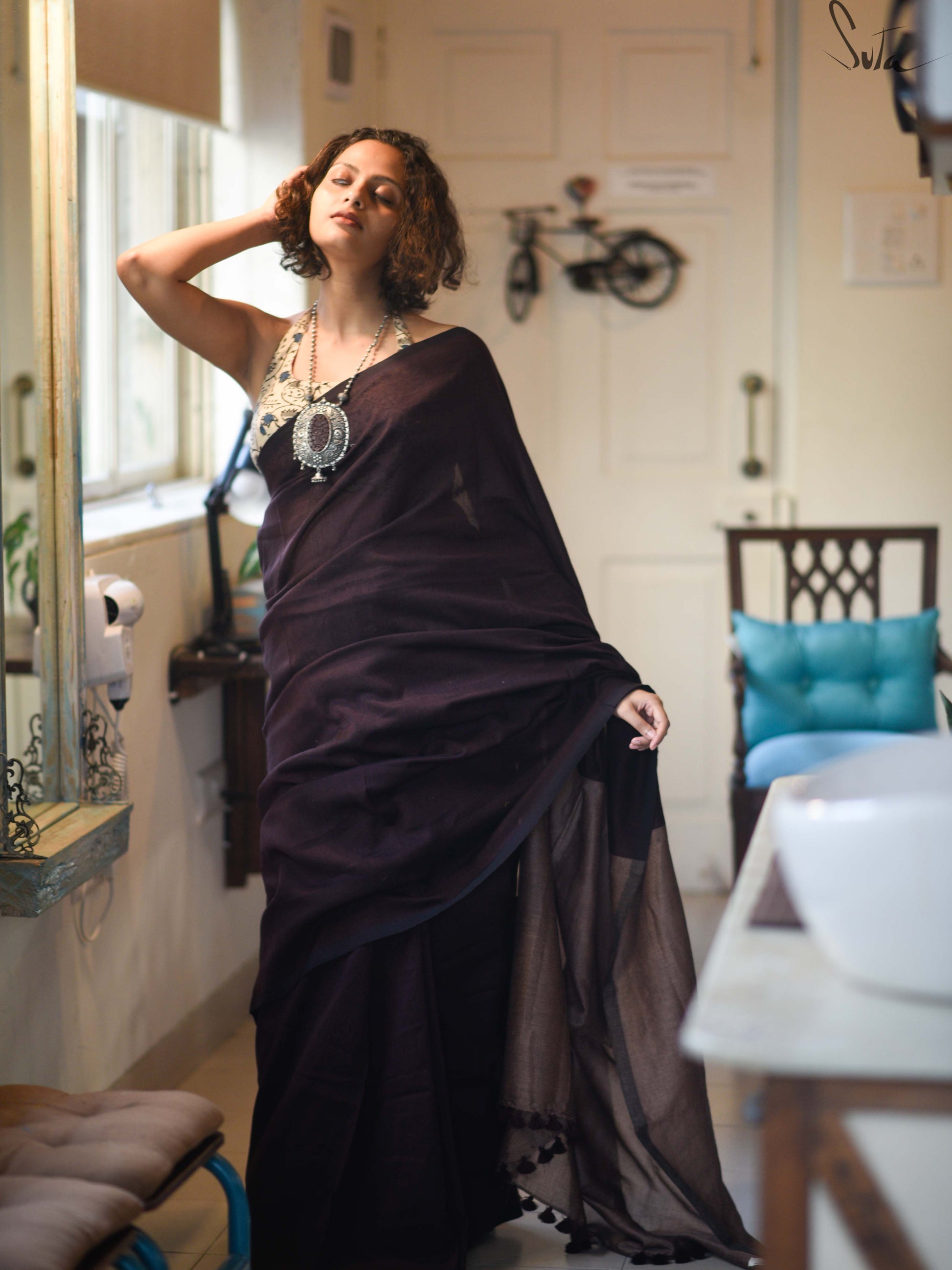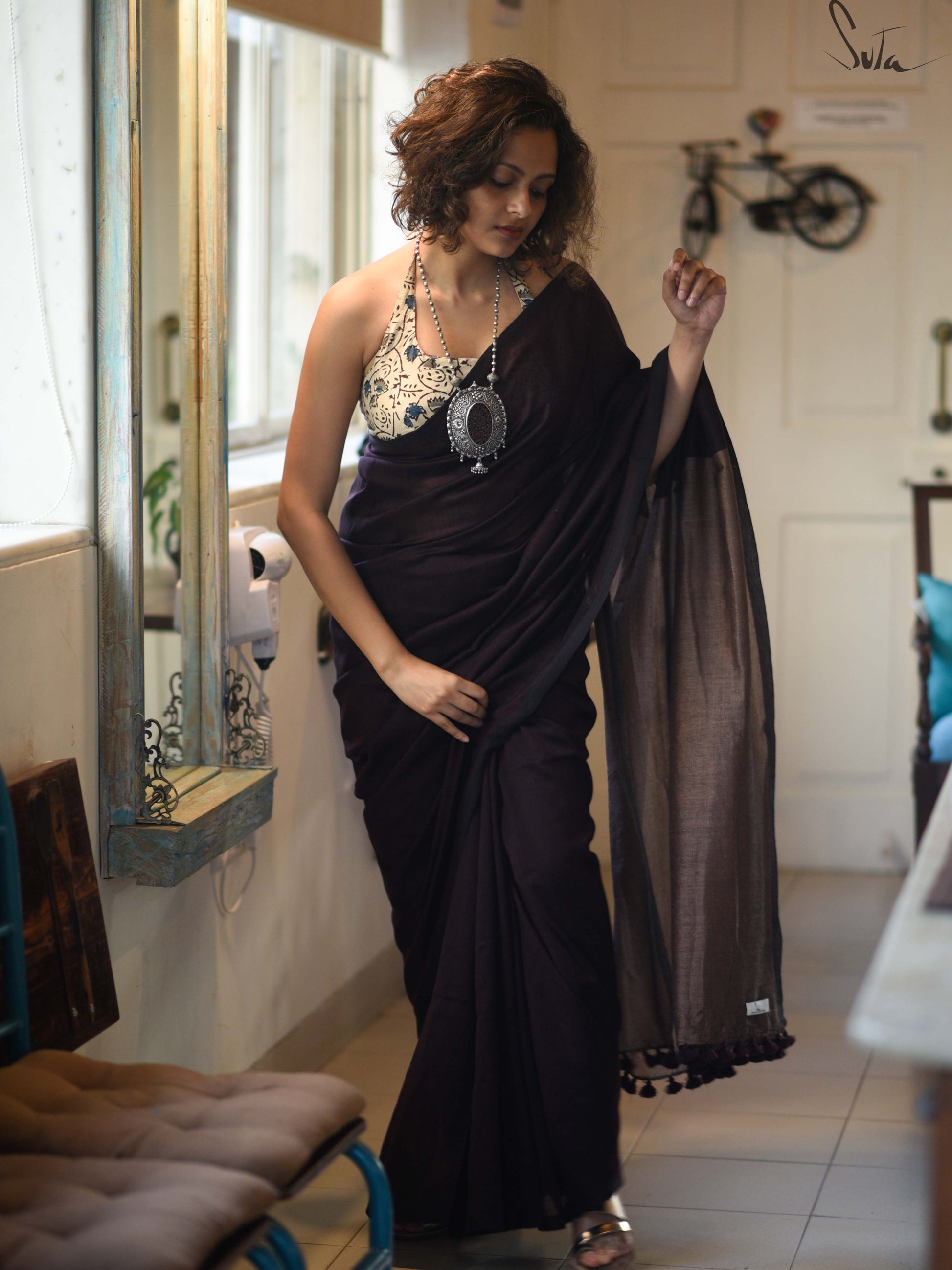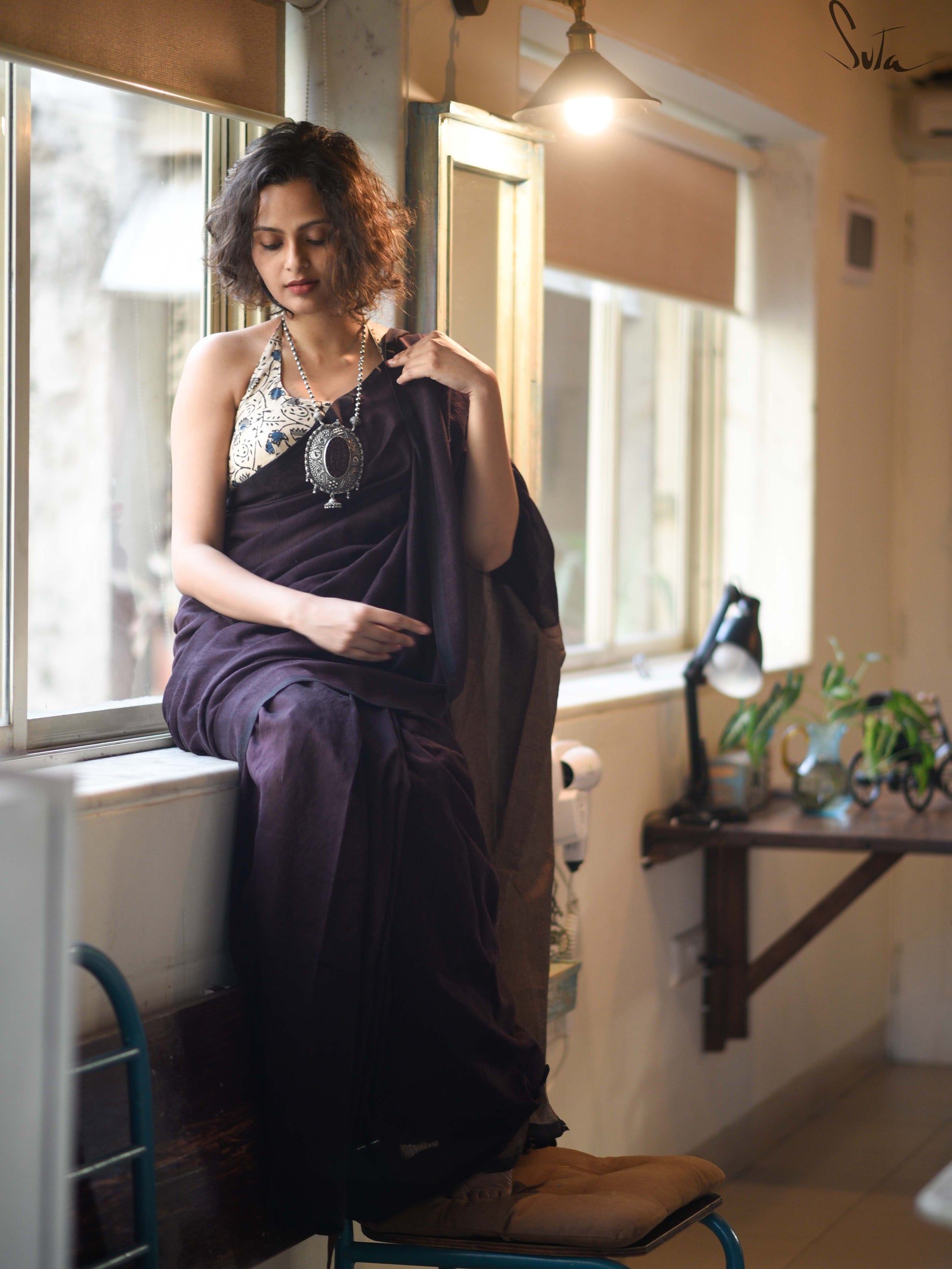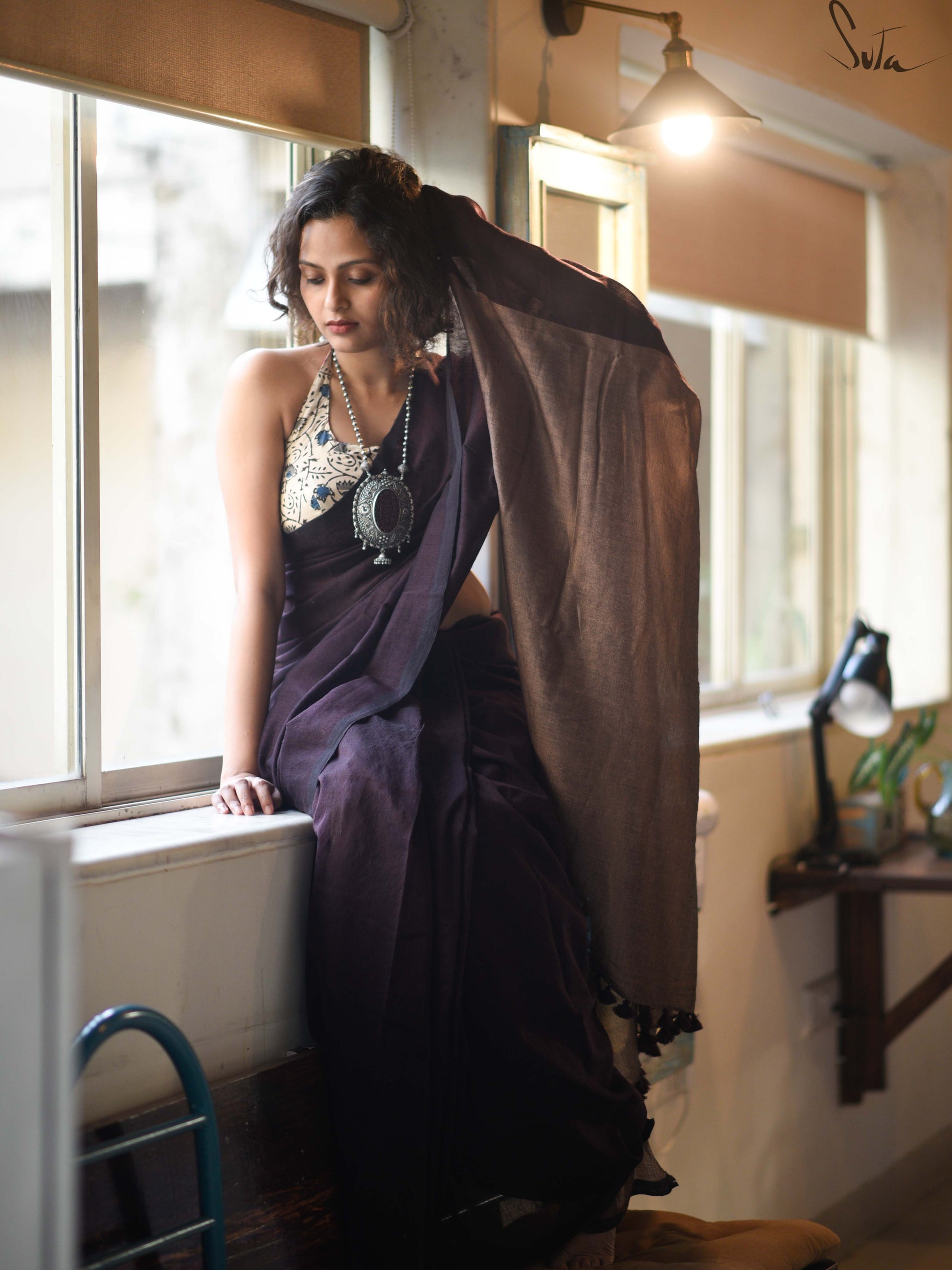 Brown is a colour that is mystically beautiful. This dark brown saree has the right shades of brown to create magic!