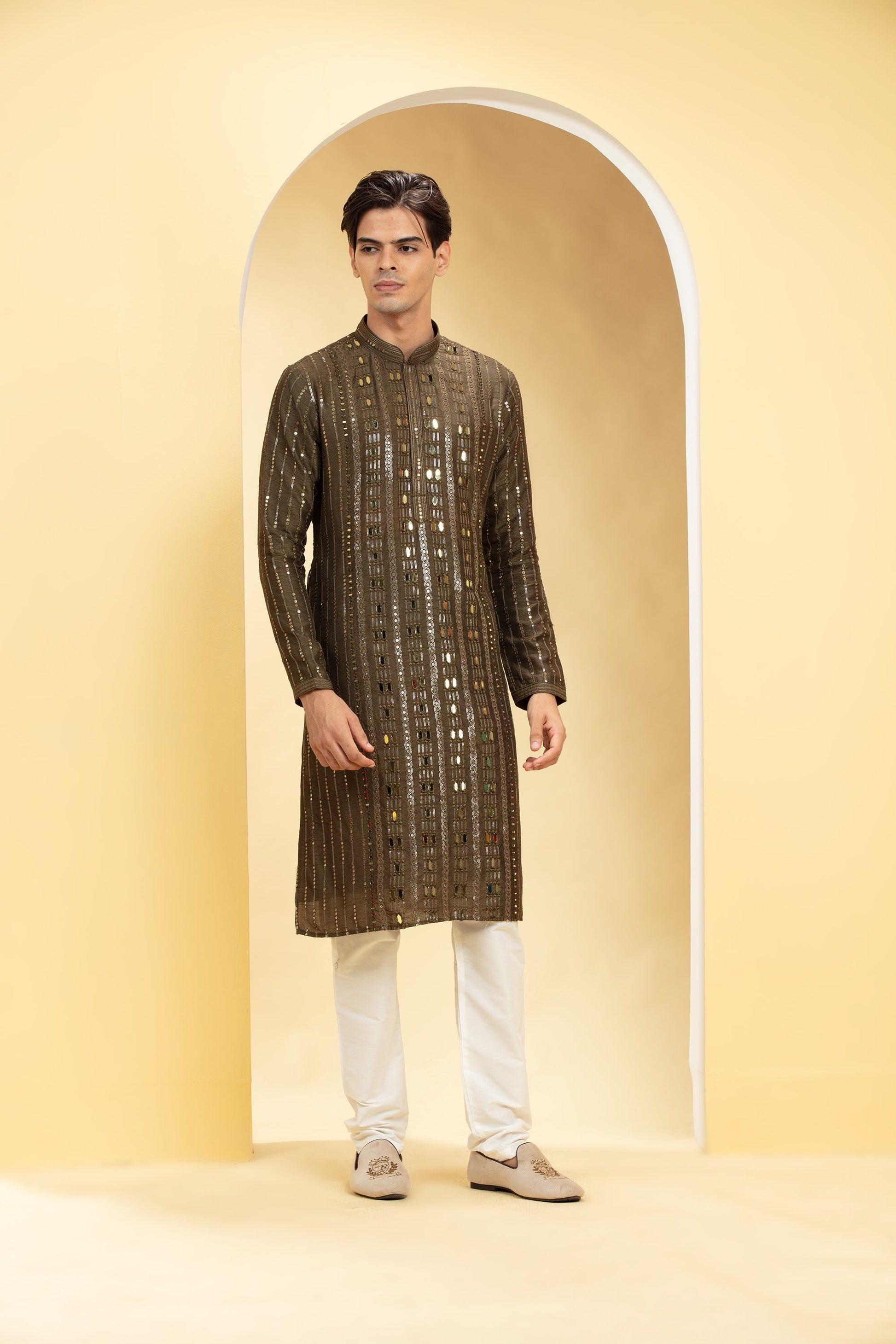 Mehendi Green Lucknowi kurta pajama Set with Sequins and Thread work