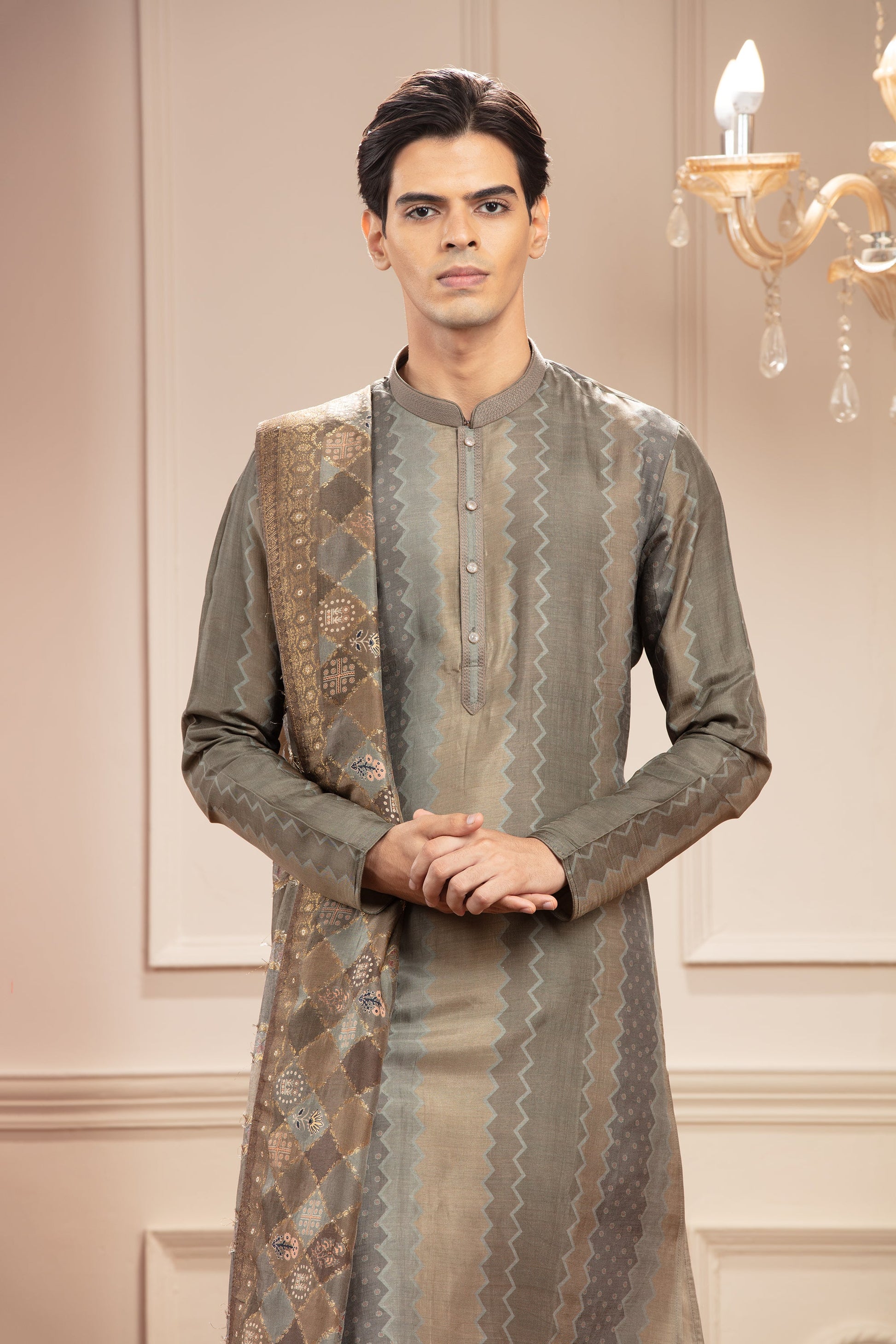 Mehendi Green Printed Banarasi kurta pajama Set with Matching Dupatta