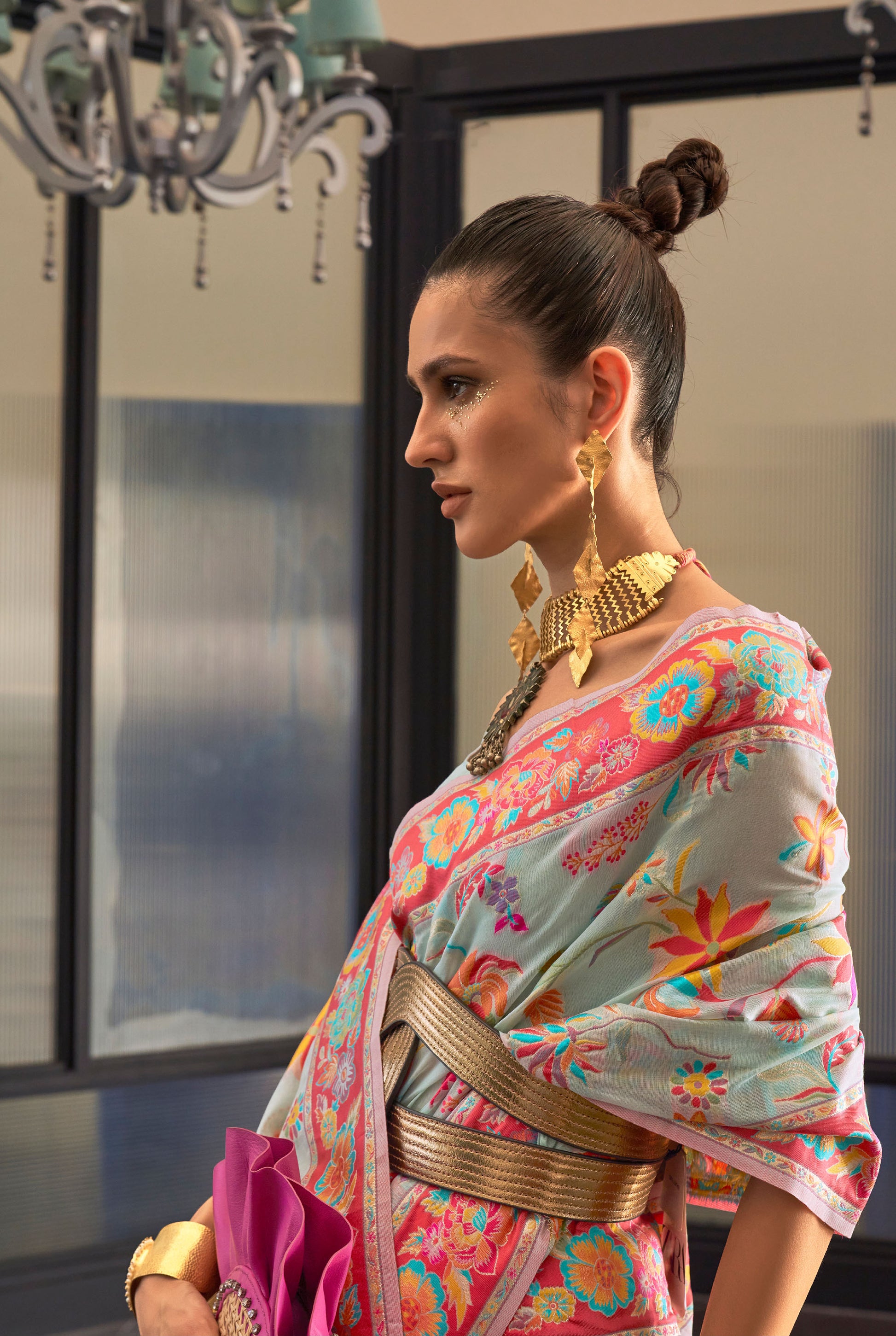 Mint Blue Kabira Kashmiri Modal Handloom Silk Saree