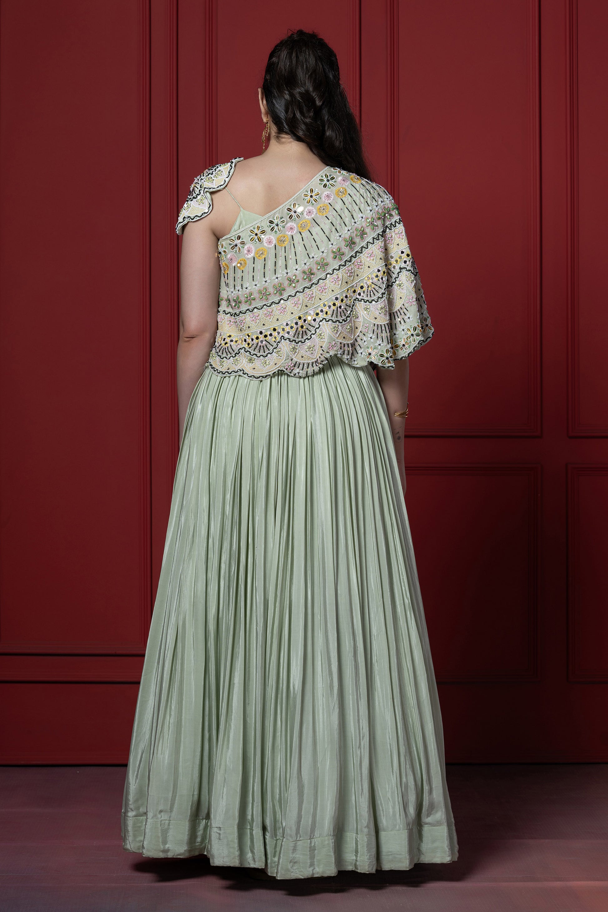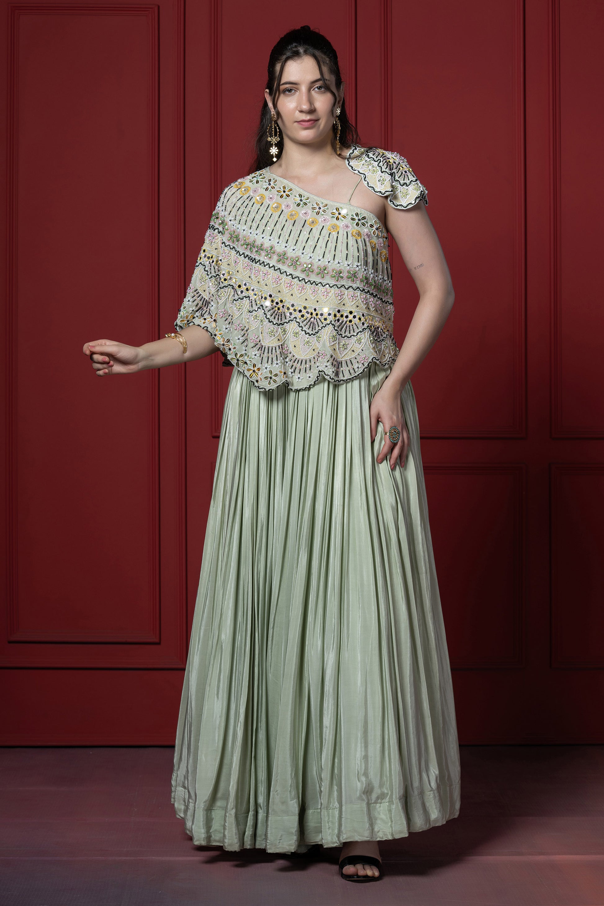 Embroidered Cape with glass crystals, stones & shoulder patch with pleated flare