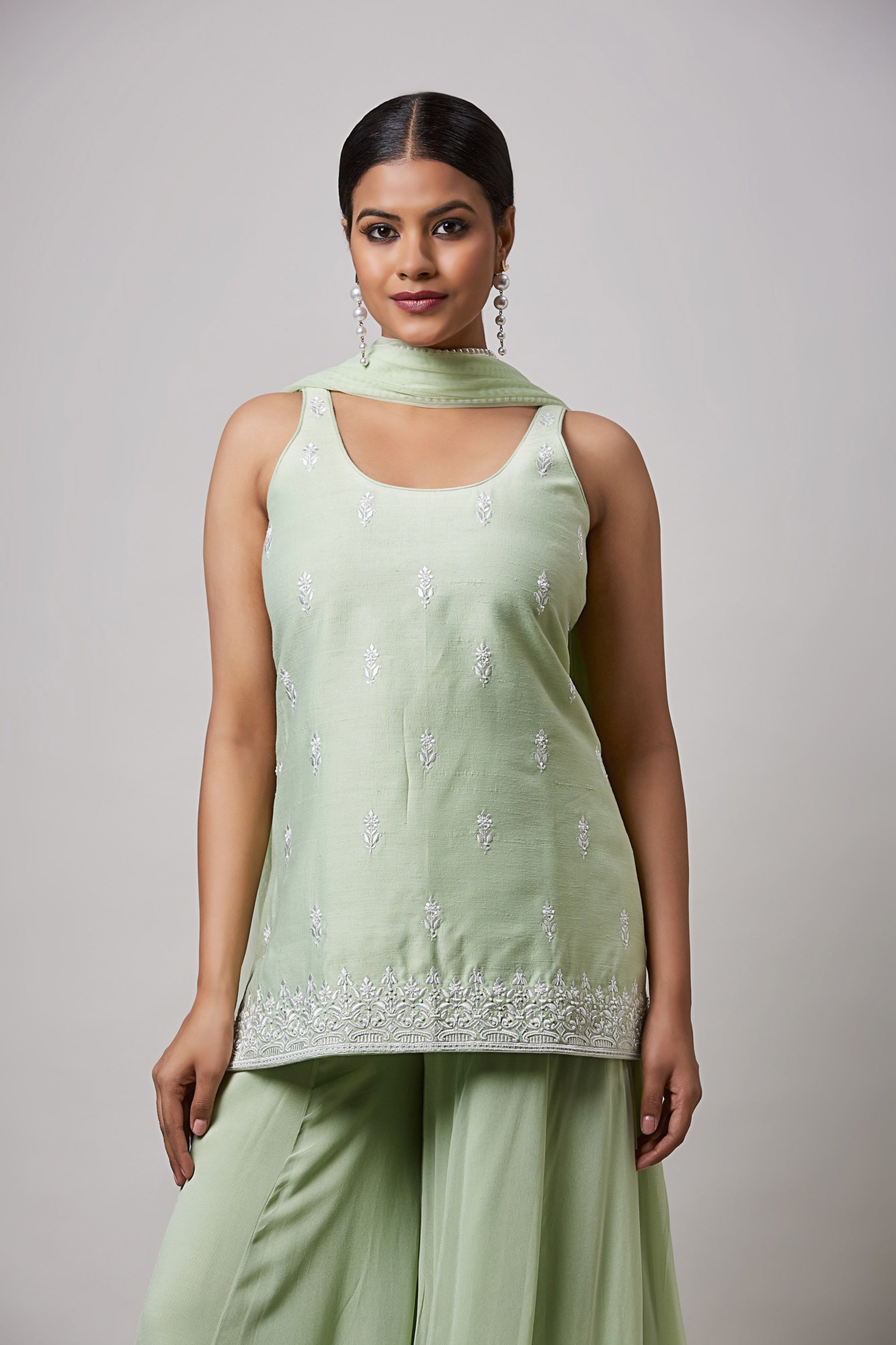 Mint Green Zion Silk Hand Embroidered Designer Sharara Set