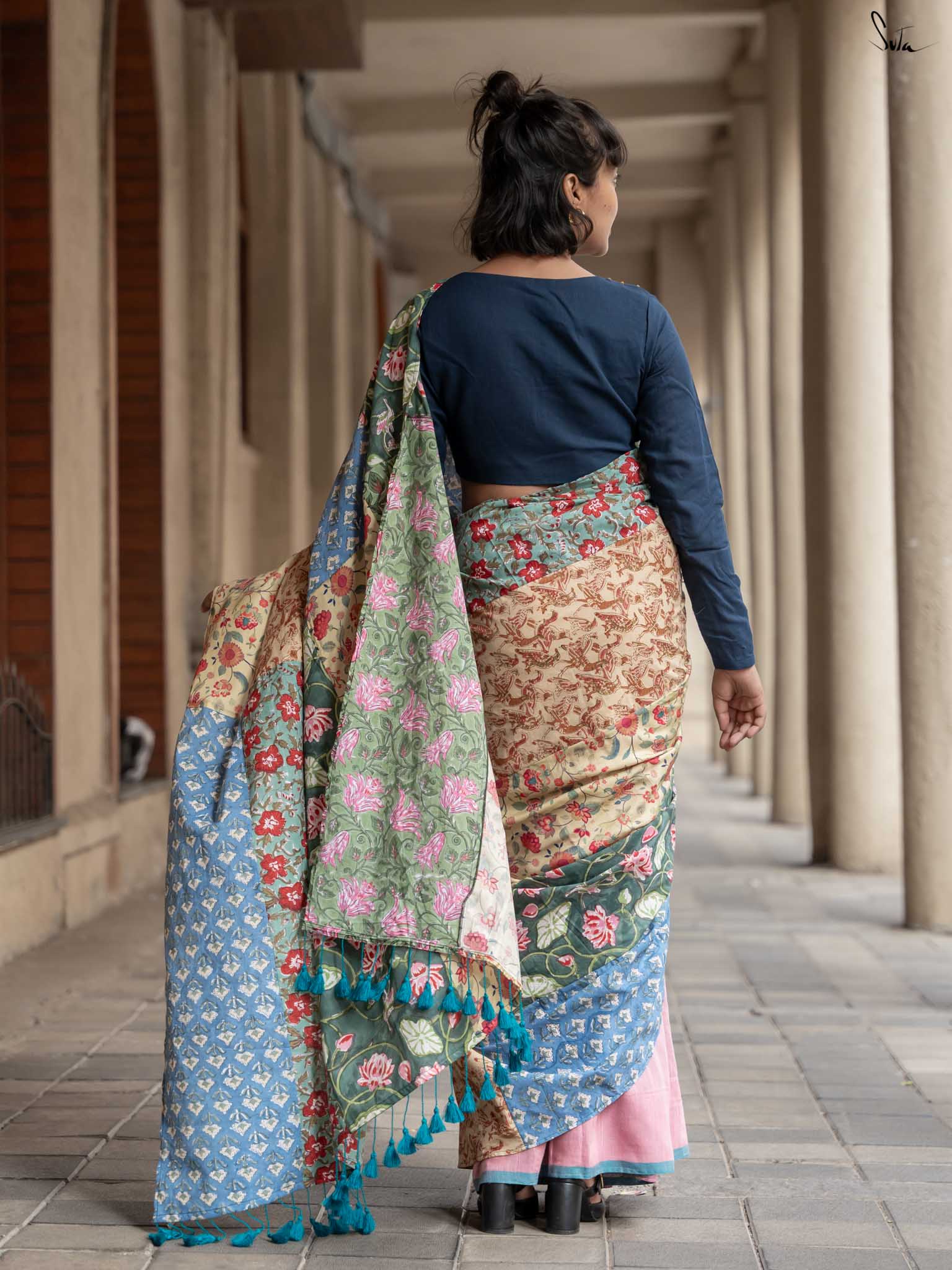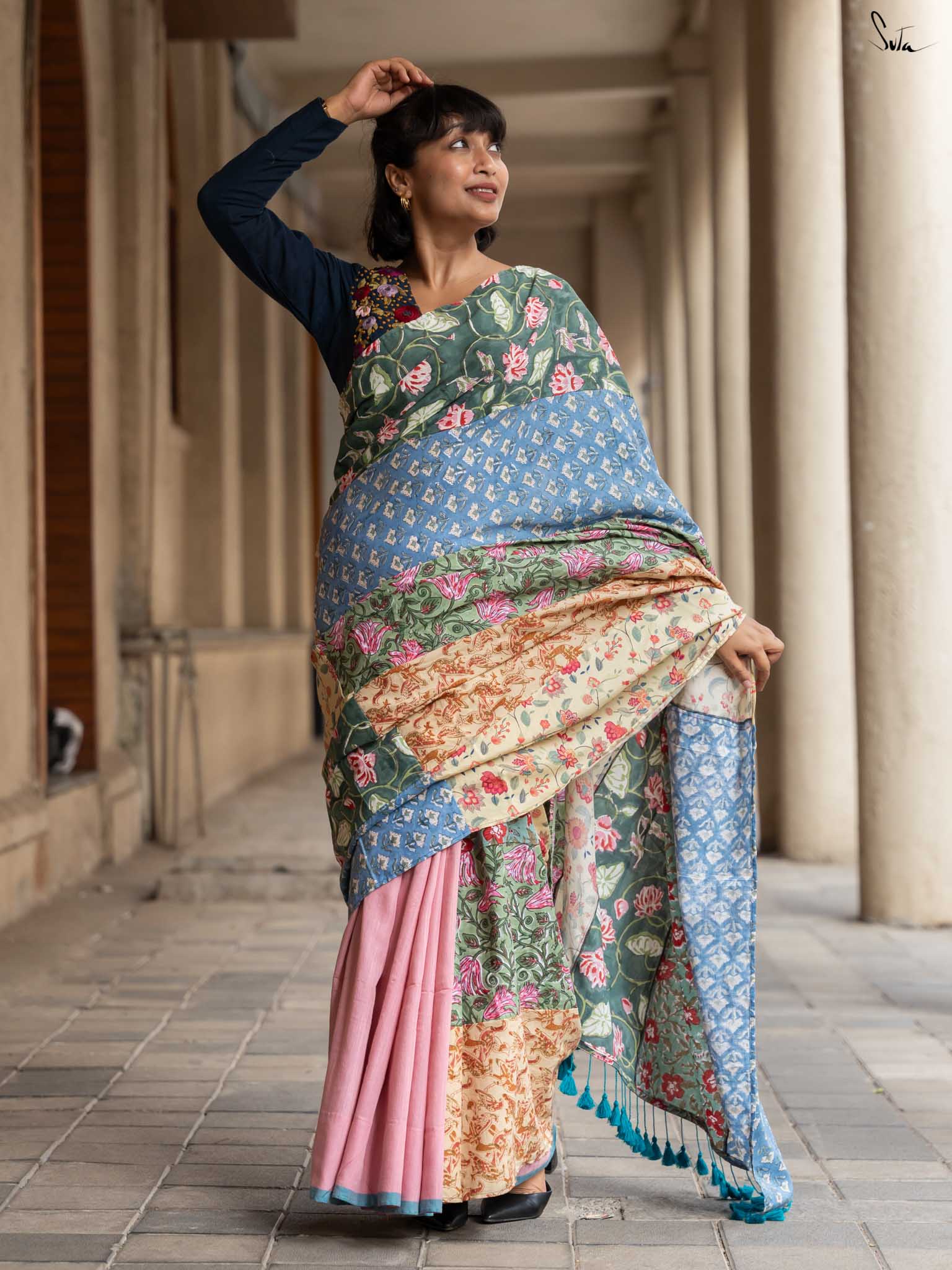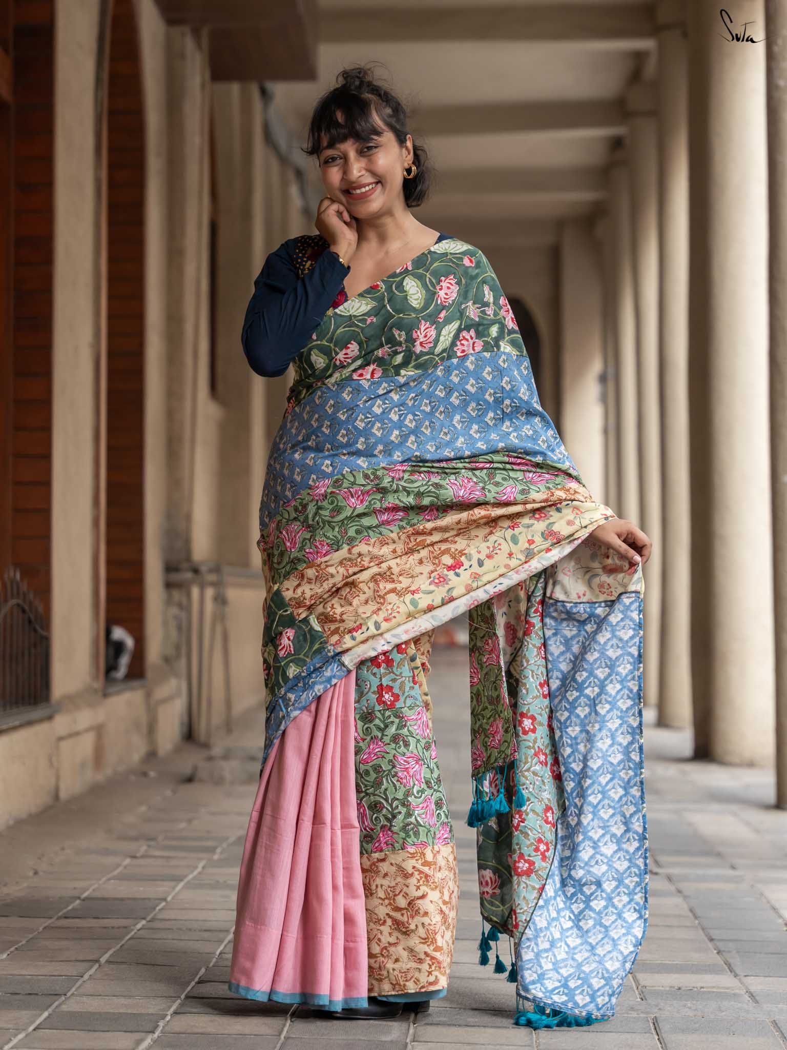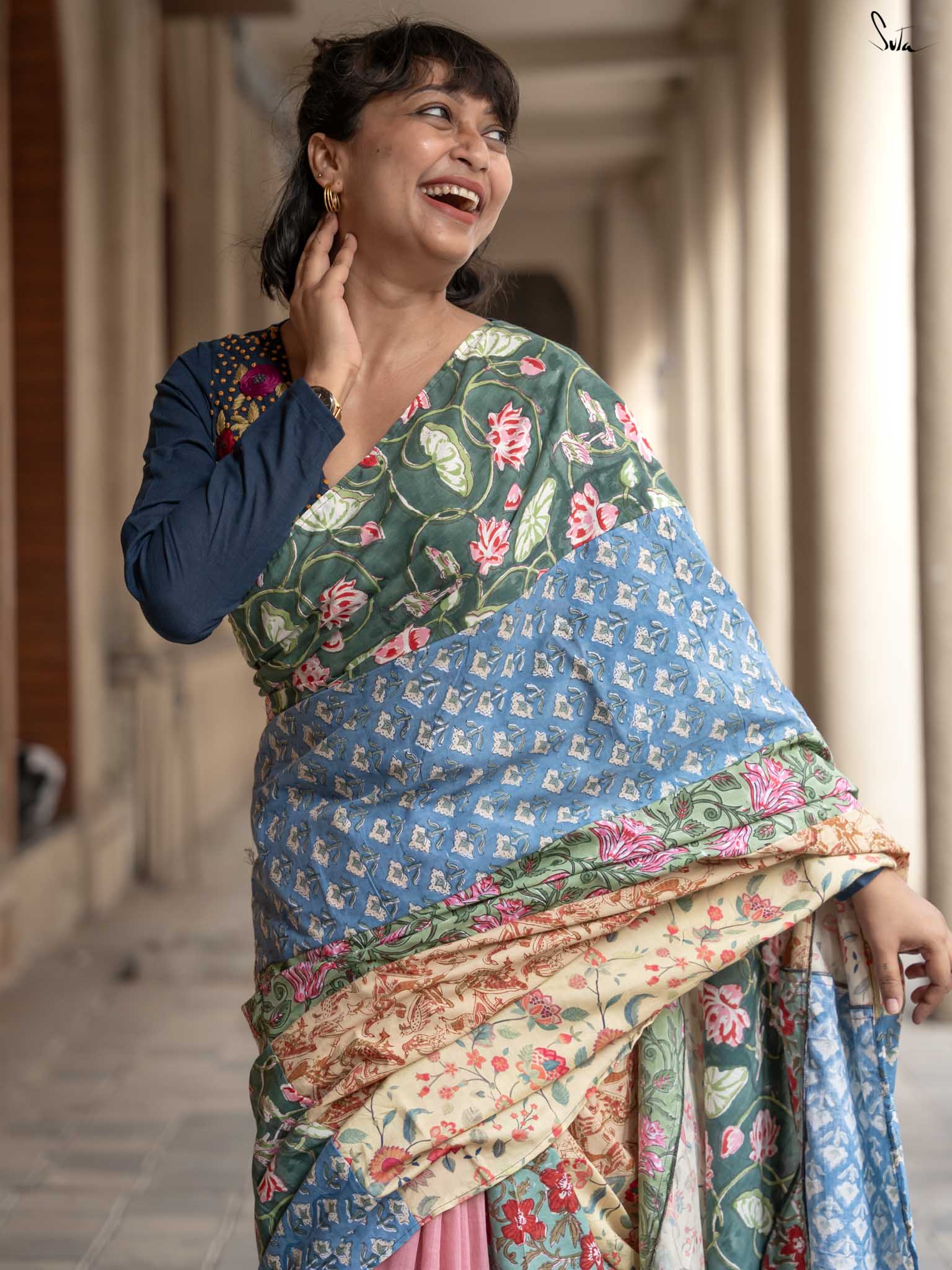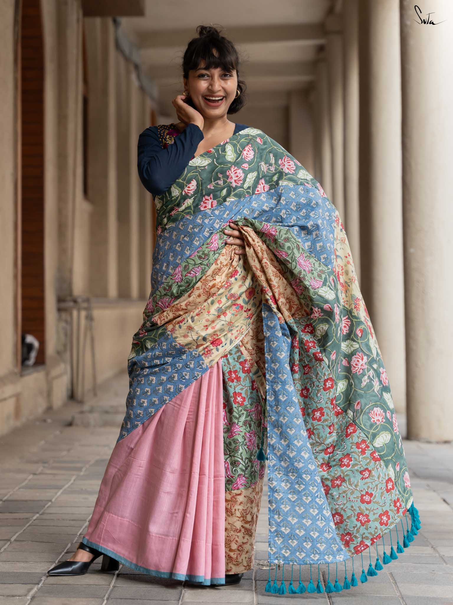 Jaise Doree ke sapne hain, waise yeh saree bhi hai ek mishmash! A perfect mix of colors and creativity, this half-and-half cotton saree celebrates ness and being yourself. Just like Doree’s strong will to follow her dreams, Mishmash Galli is for the woman who loves standing out and never blending in. Get ready to take your style to new heights!