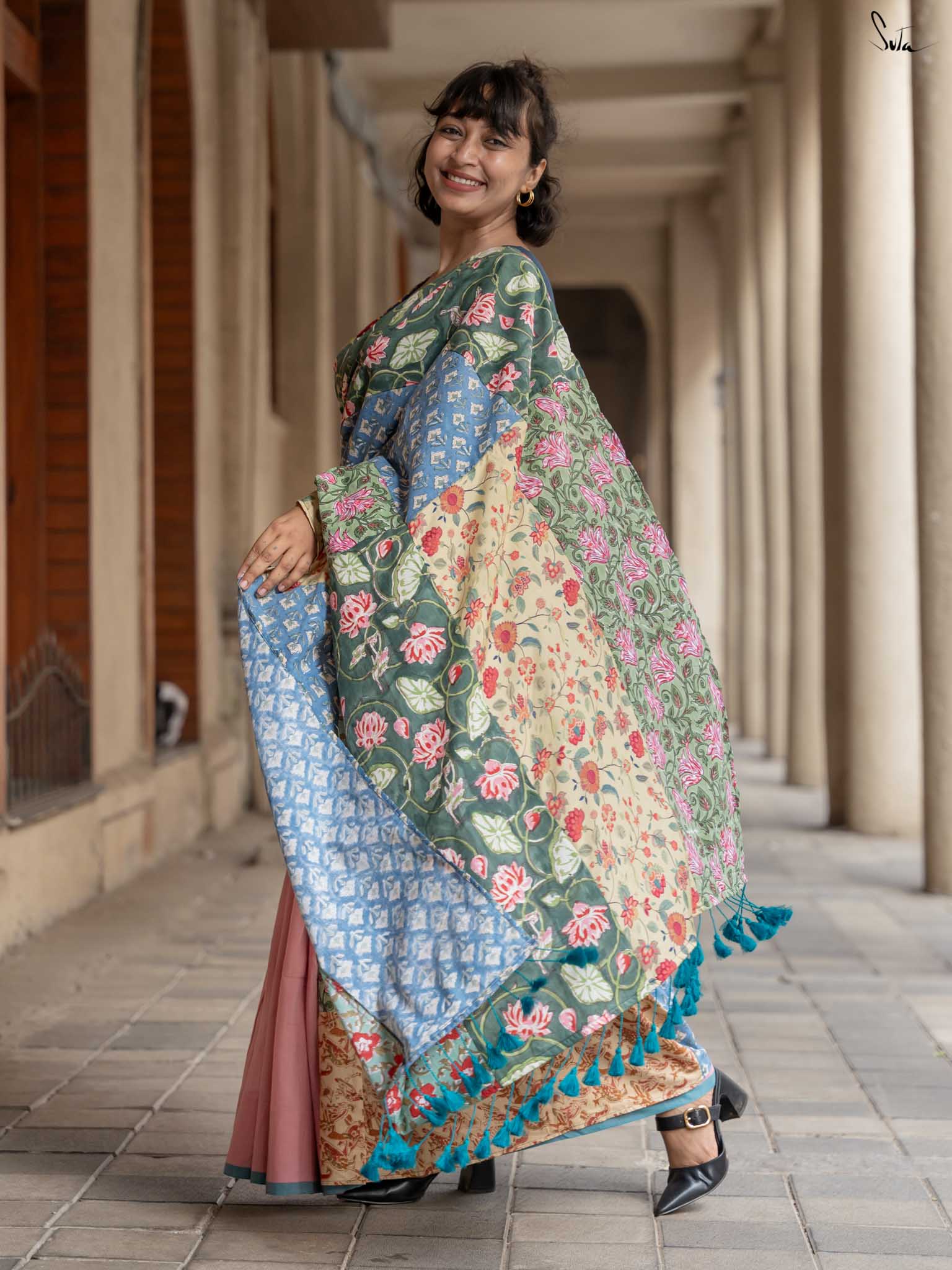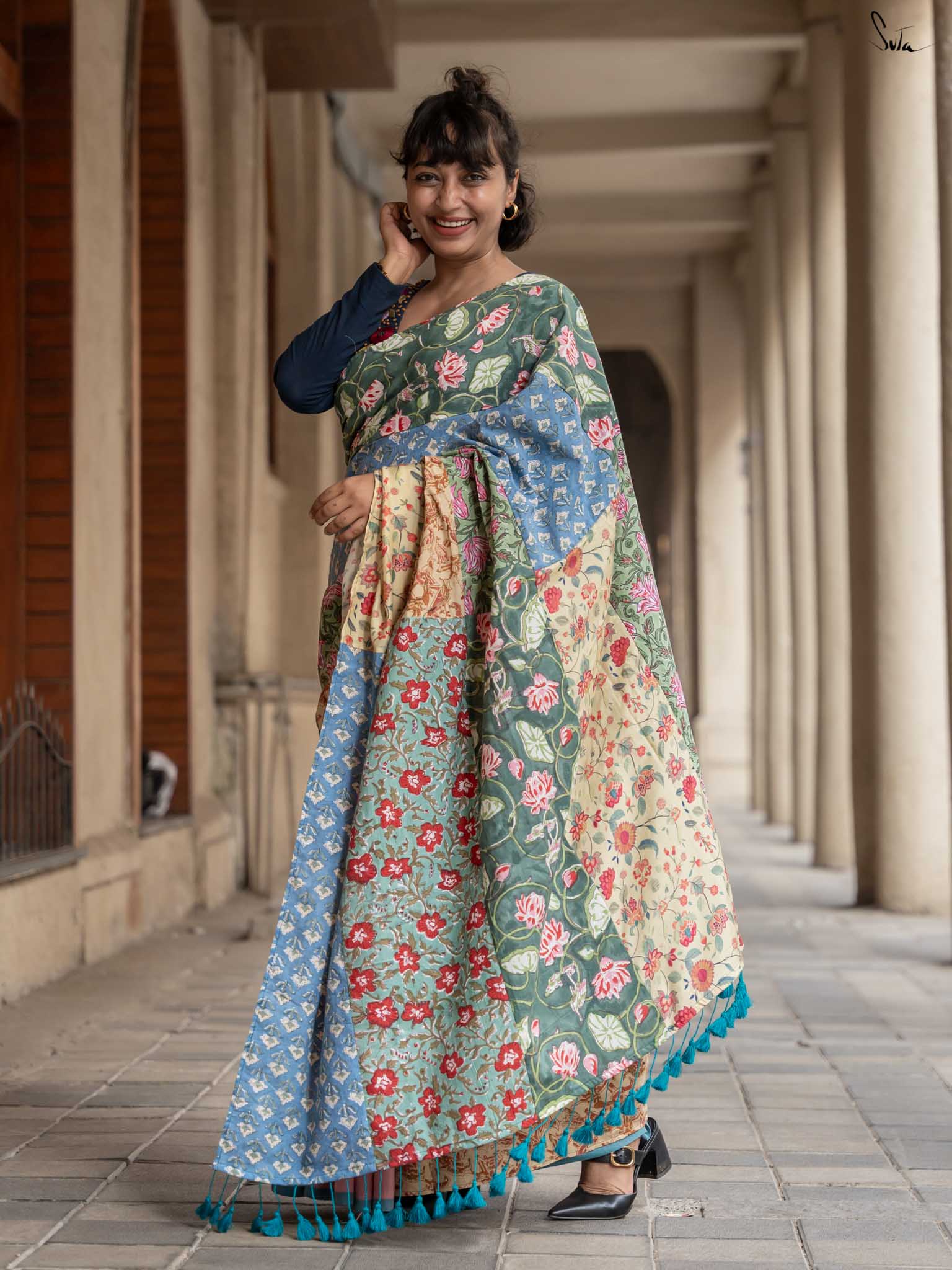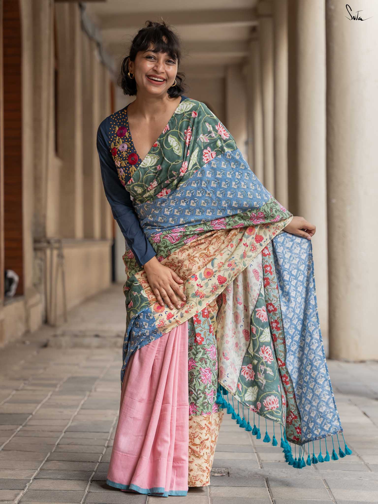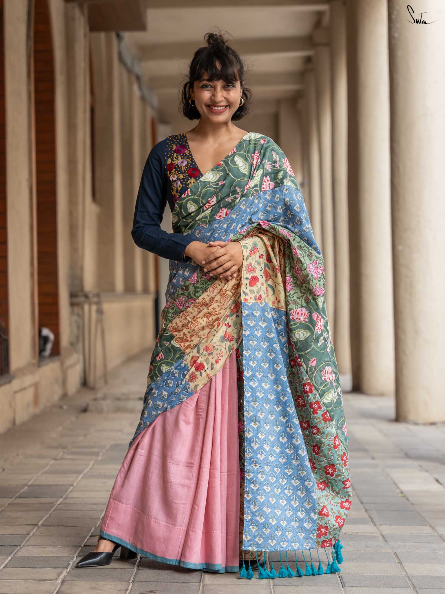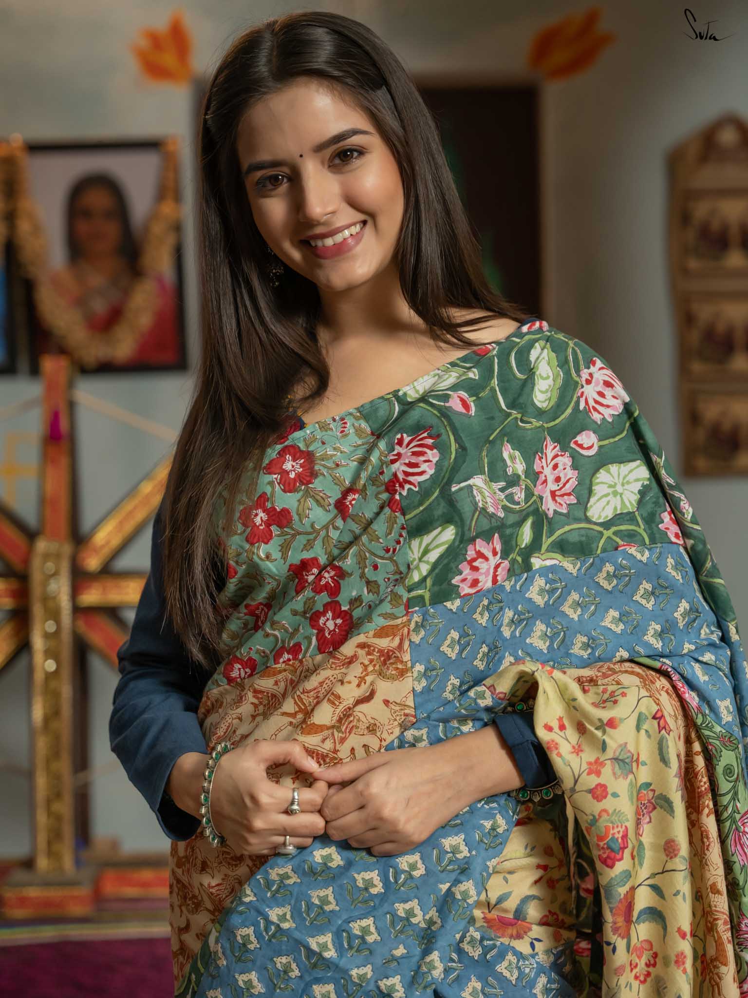 Jaise Doree ke sapne hain, waise yeh saree bhi hai ek mishmash! A perfect mix of colors and creativity, this half-and-half cotton saree celebrates ness and being yourself. Just like Doree’s strong will to follow her dreams, Mishmash Galli is for the woman who loves standing out and never blending in. Get ready to take your style to new heights!