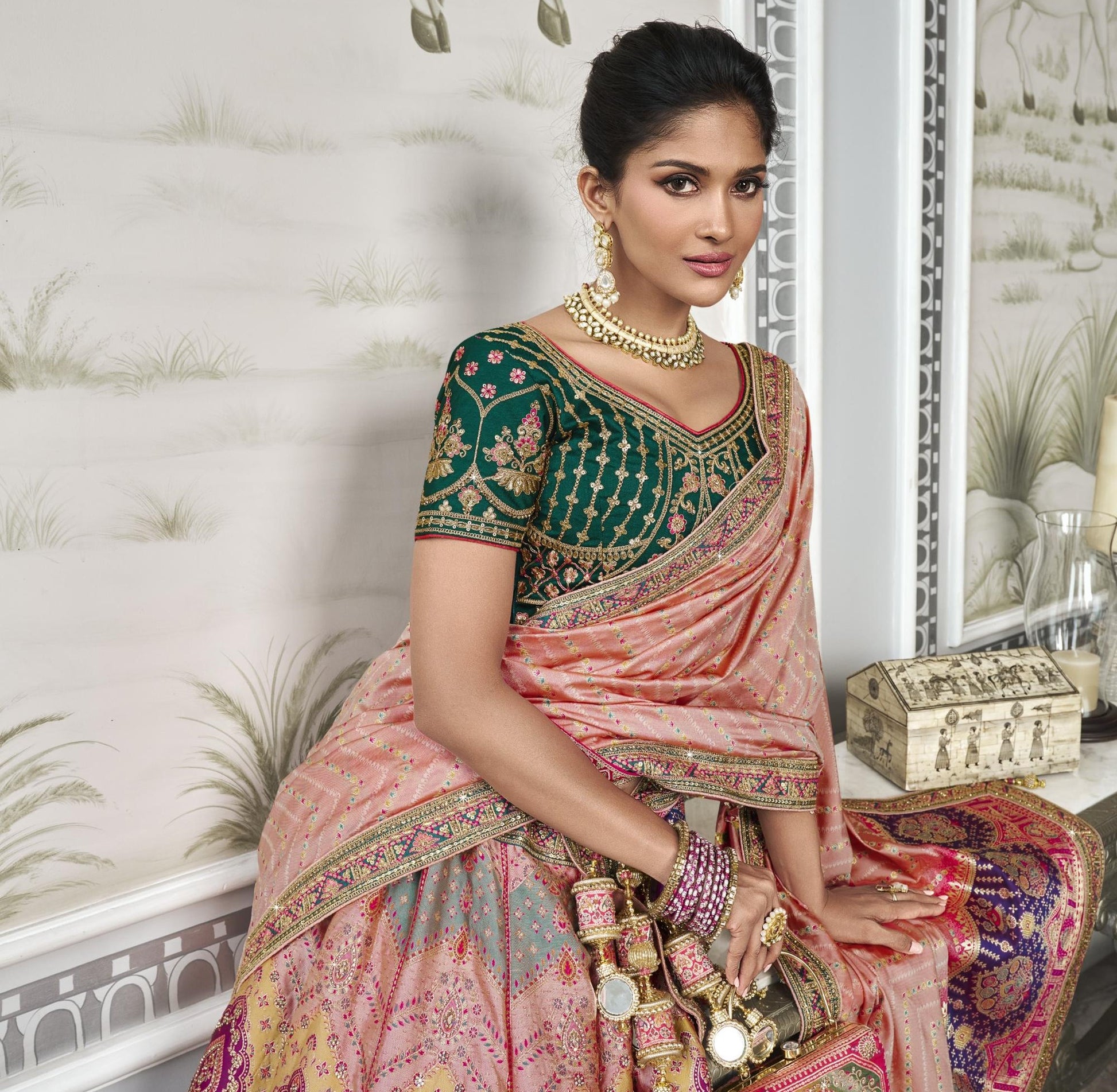 MultiColor Zarkan Embroidered Banarasi Silk Bridal Lehenga