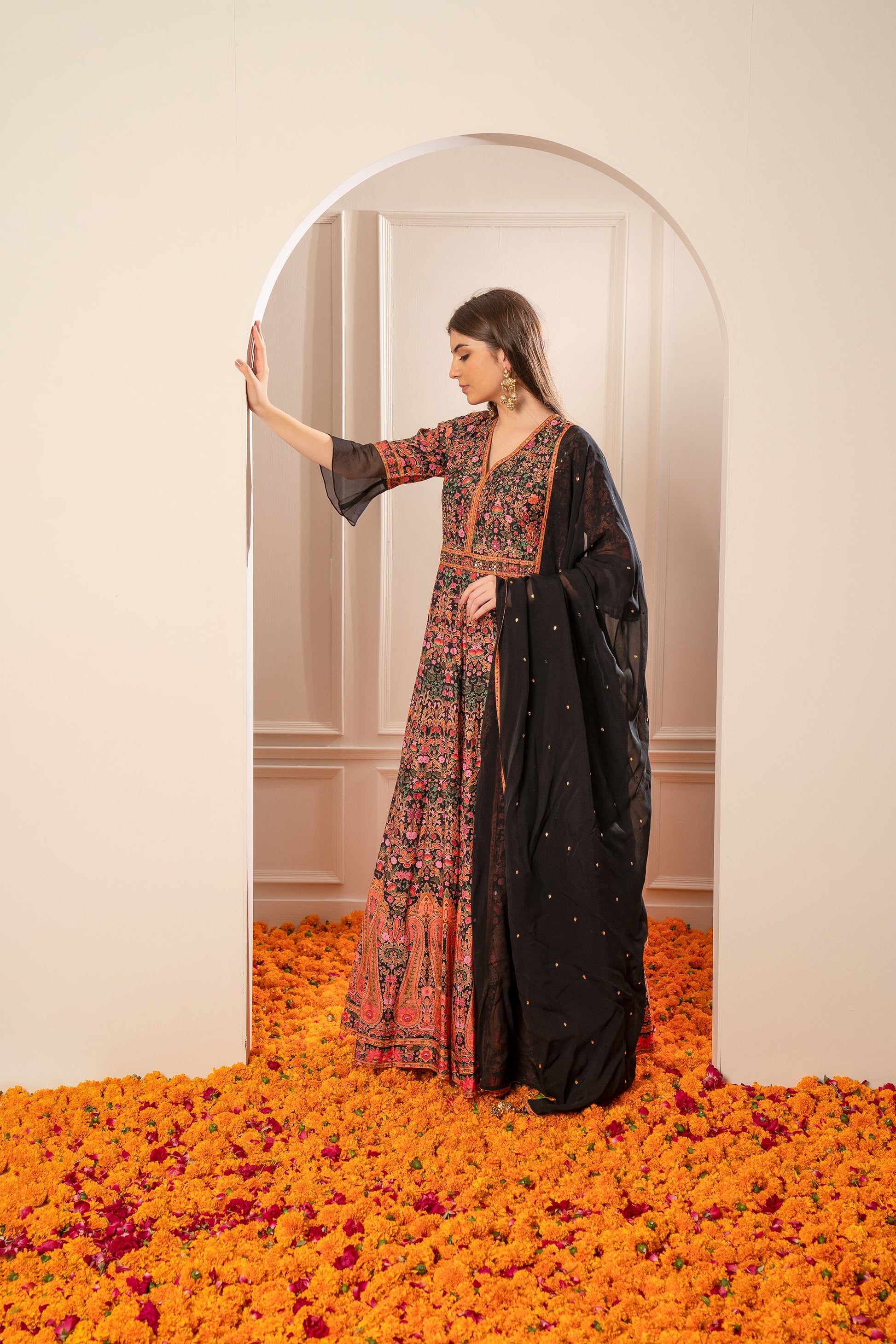 Multicolour Georgette Printed Gown with Sequins