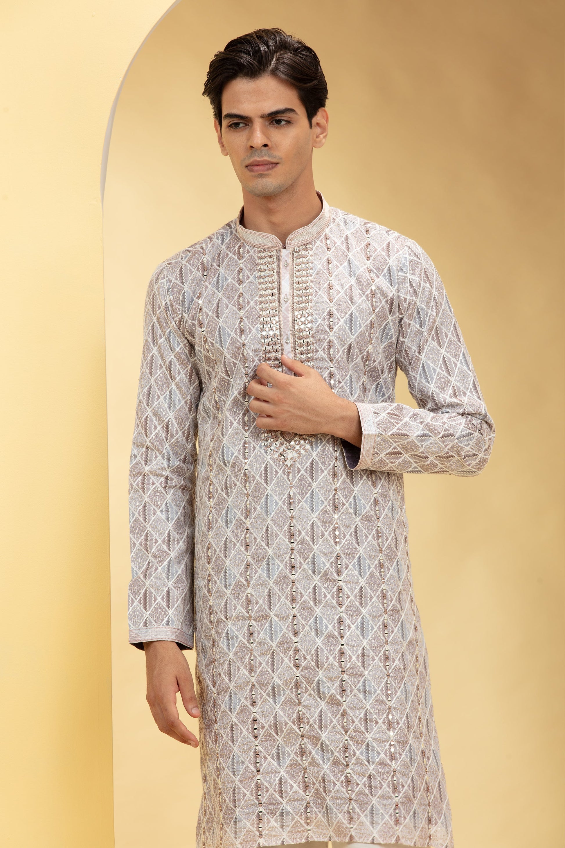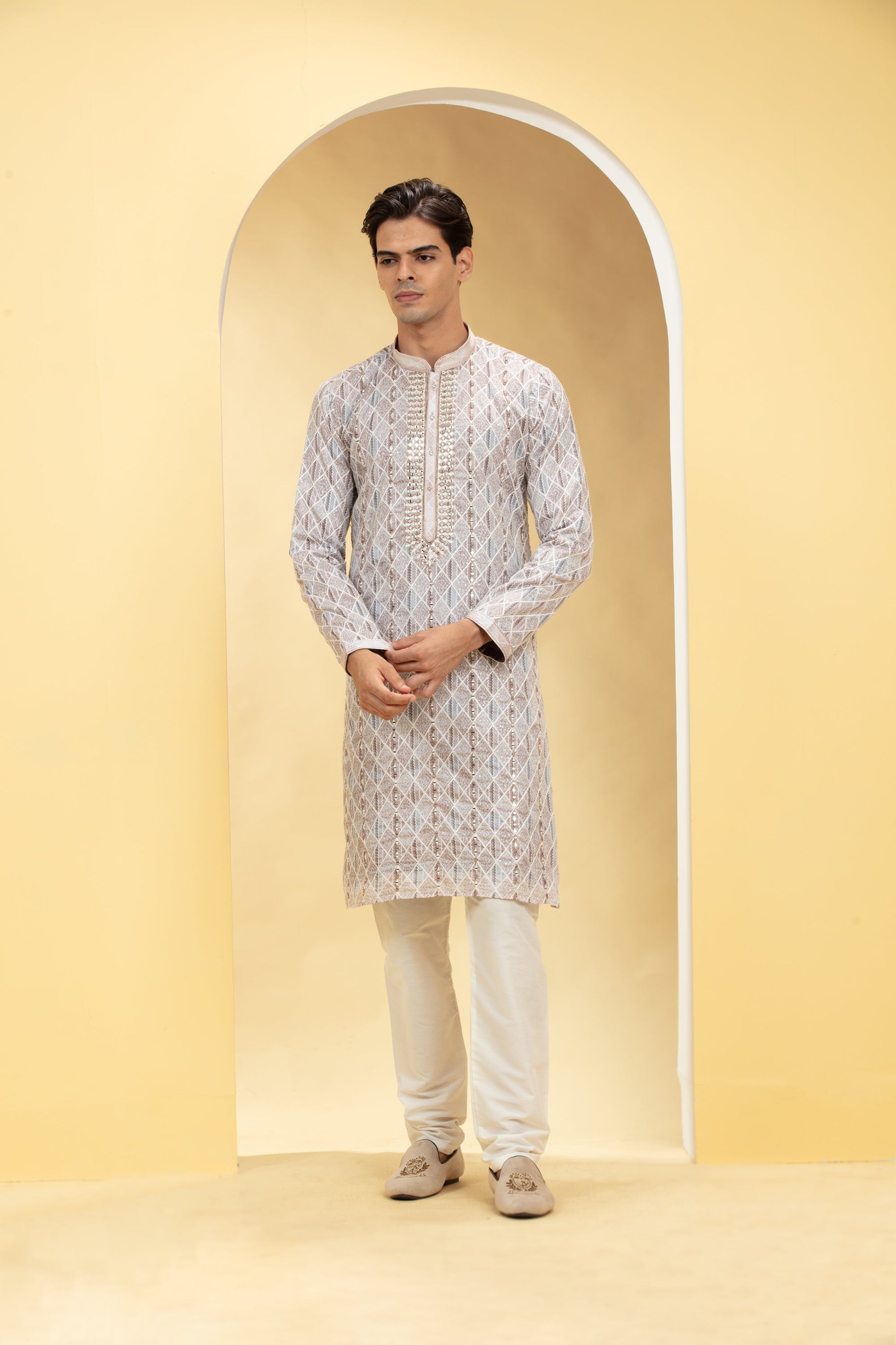 Multicolour Lucknowi kurta pajama Set with Resham and Thread work