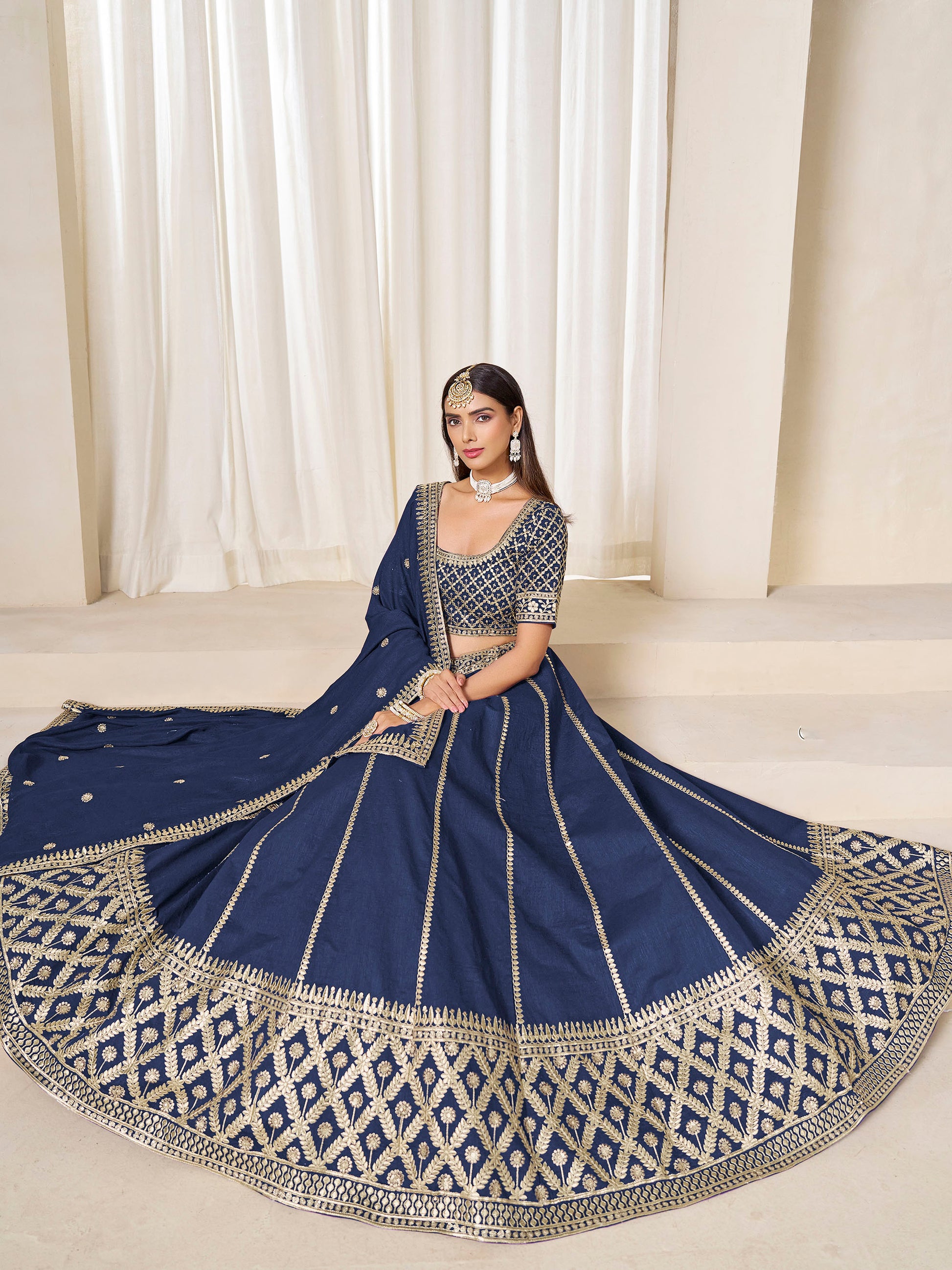 Navy Blue Heavy Sequins Embroidered Art Silk Lehenga for Wedding Guest