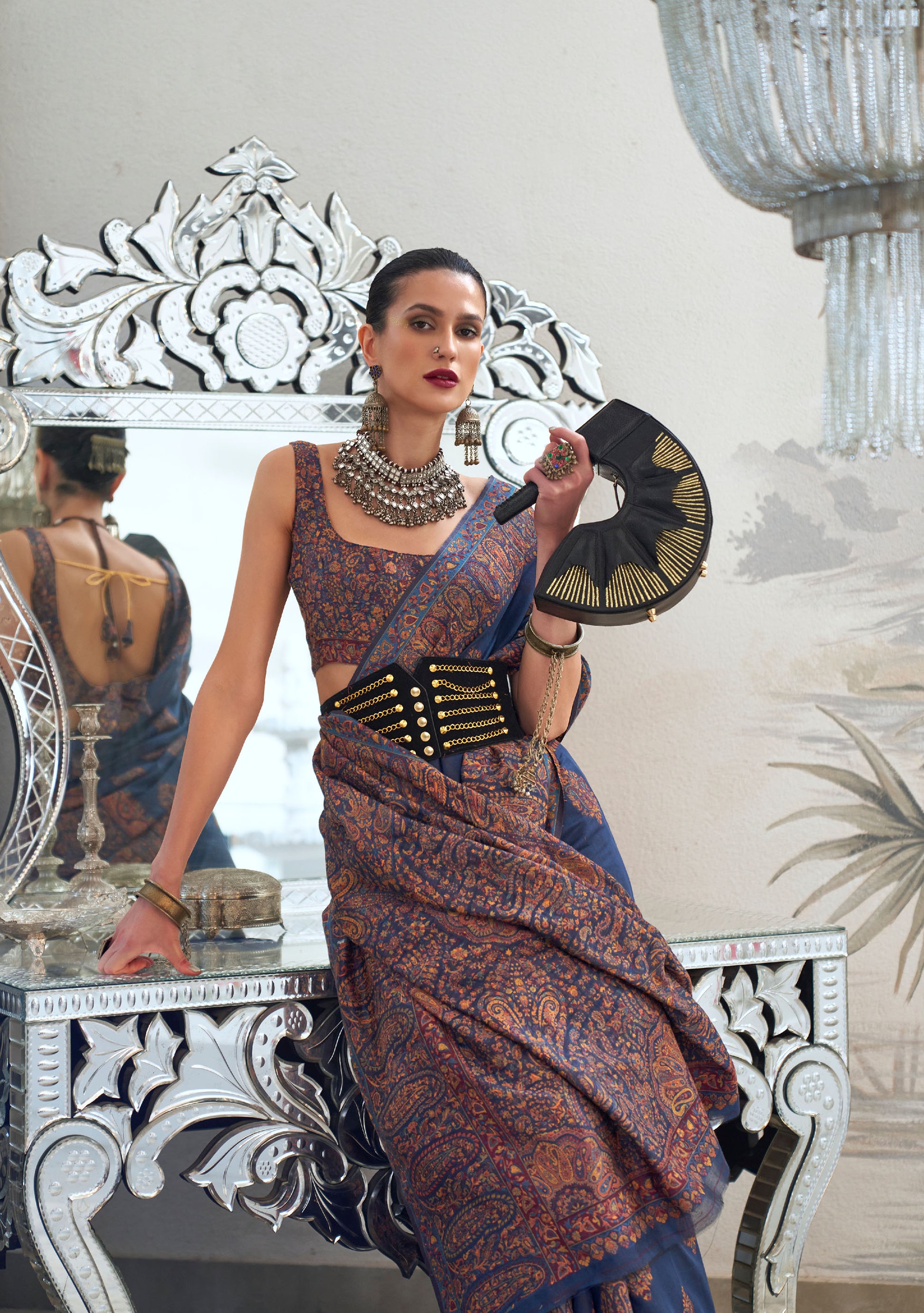 Navy Blue Kqaalib Kashmiri Handloom saree
