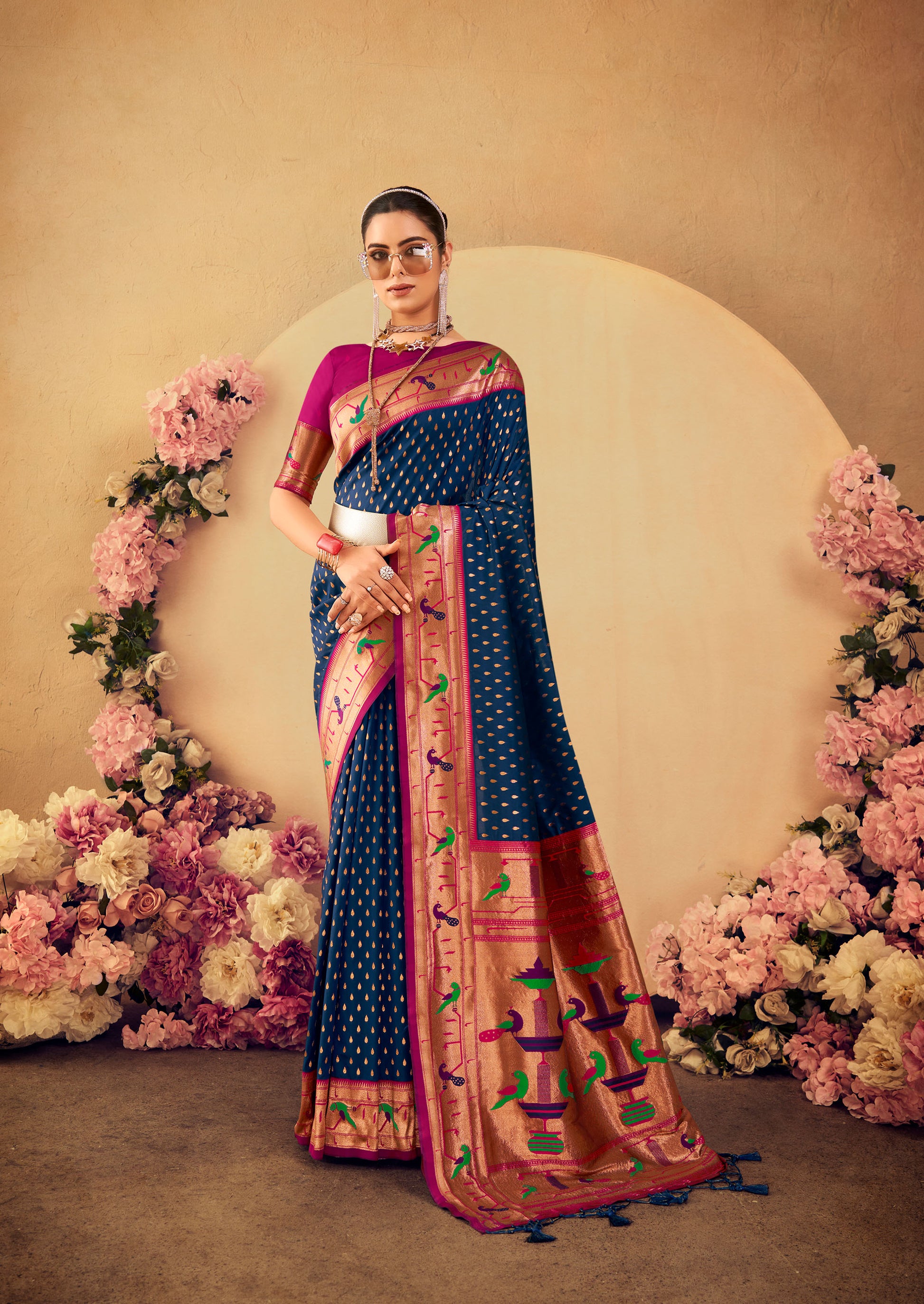 Navy Blue Paithani Silk Zari woven Butti Saree