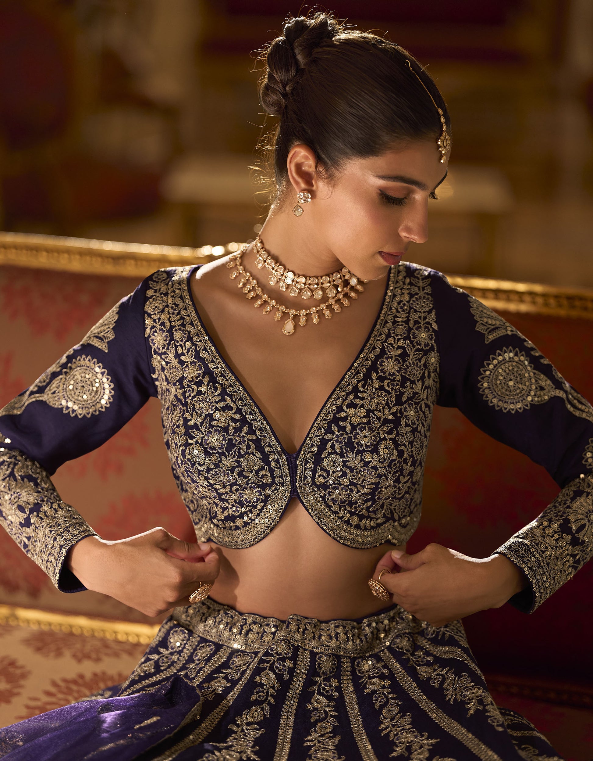 - Work: Sequins, Zari, Thread Embroidery
