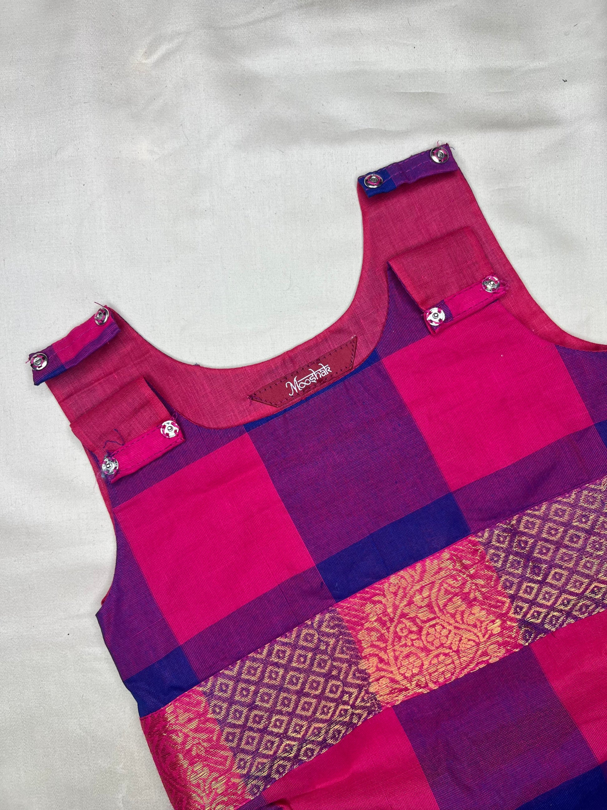 Kattam - Angel Whisper- Onesie Rompers with skirt in Pink with blue chettinad checks cotton