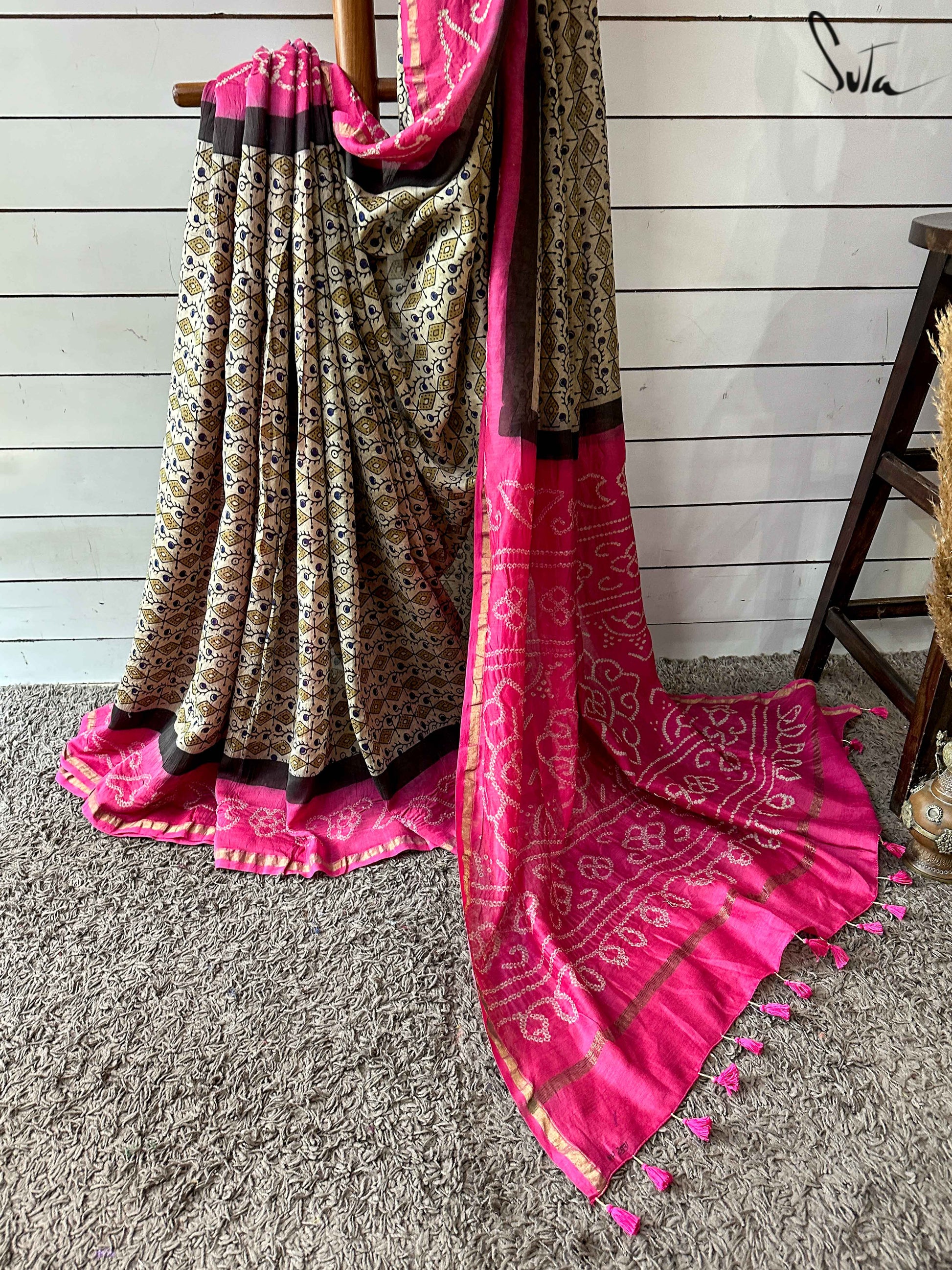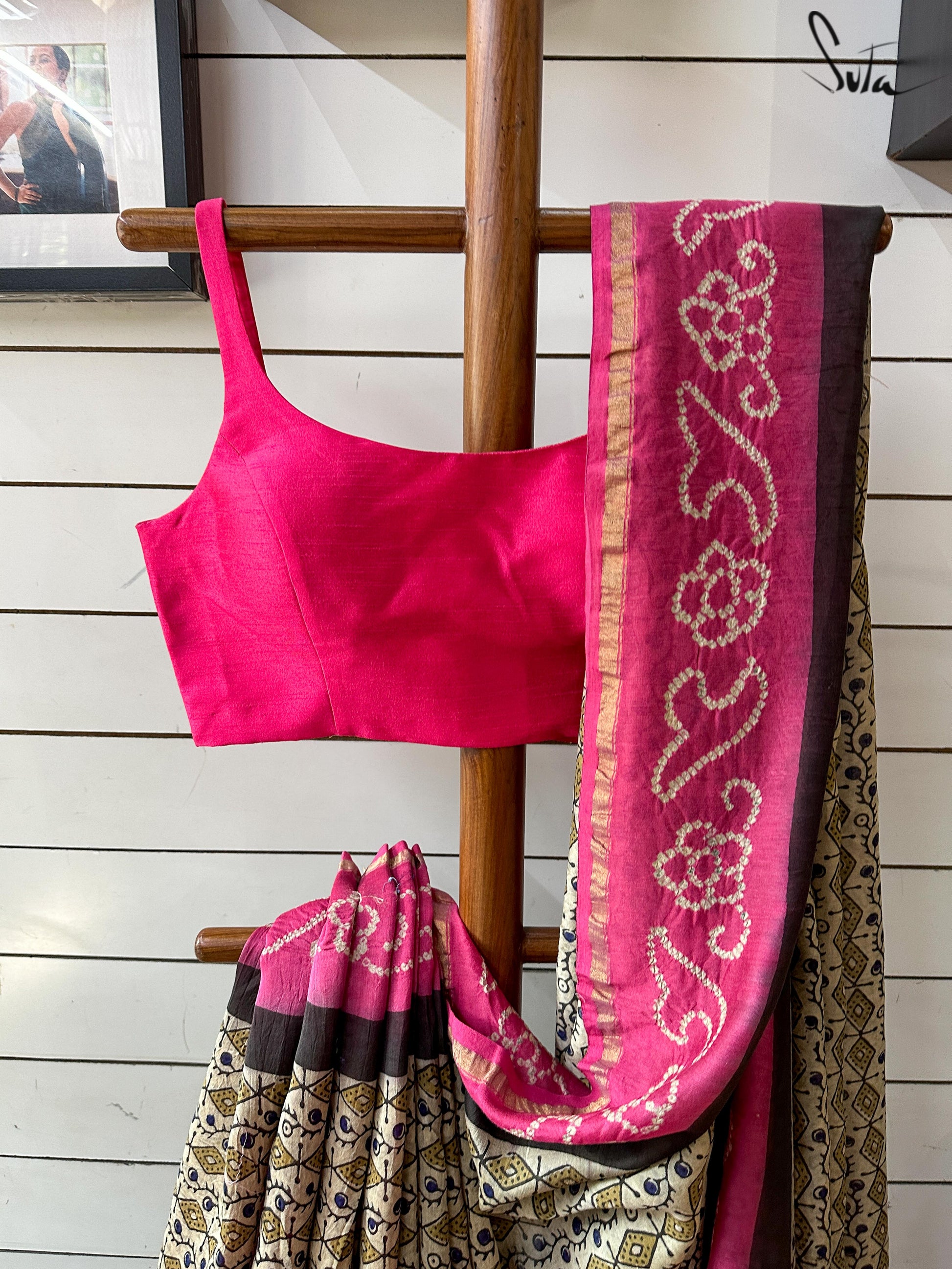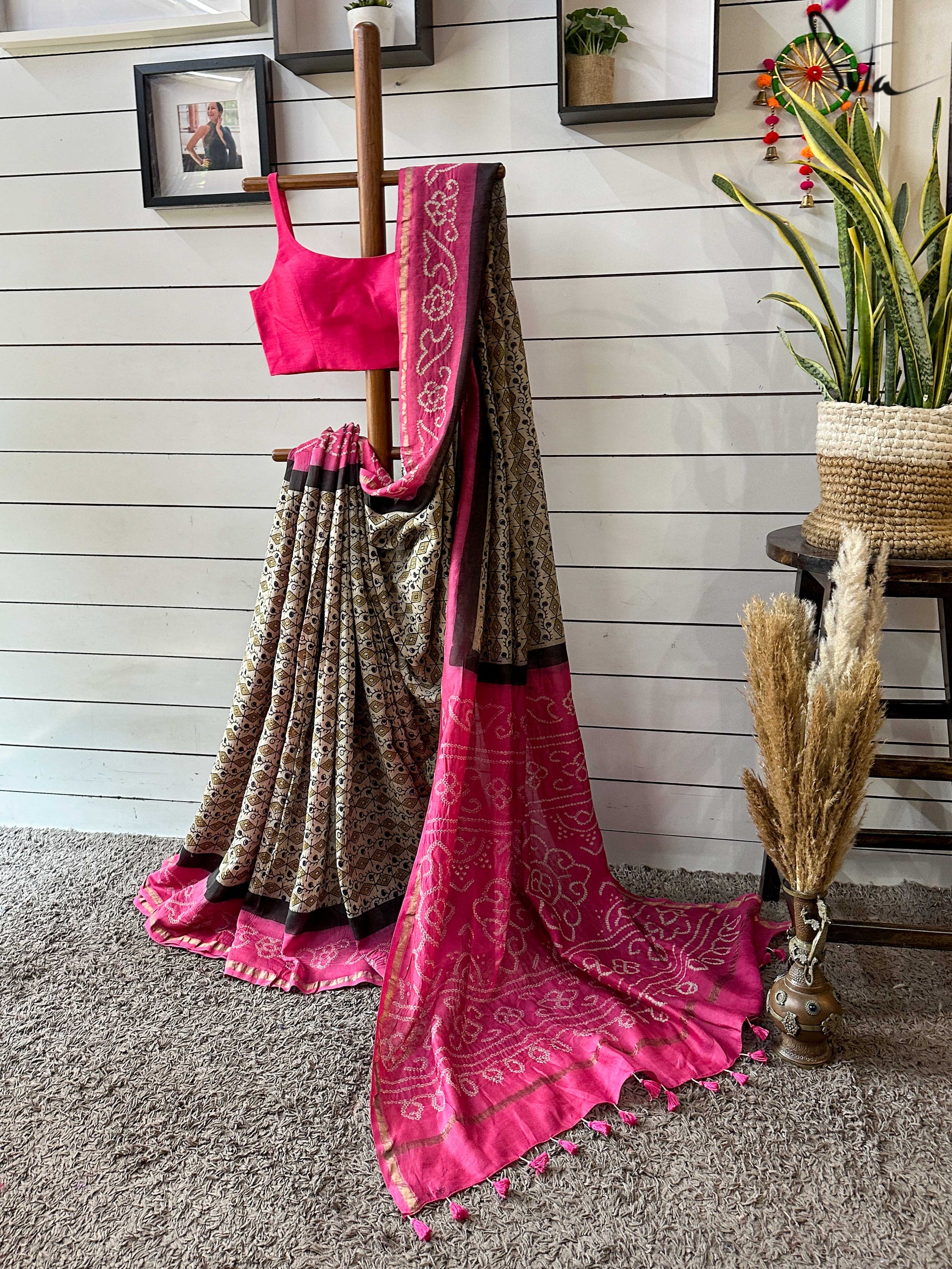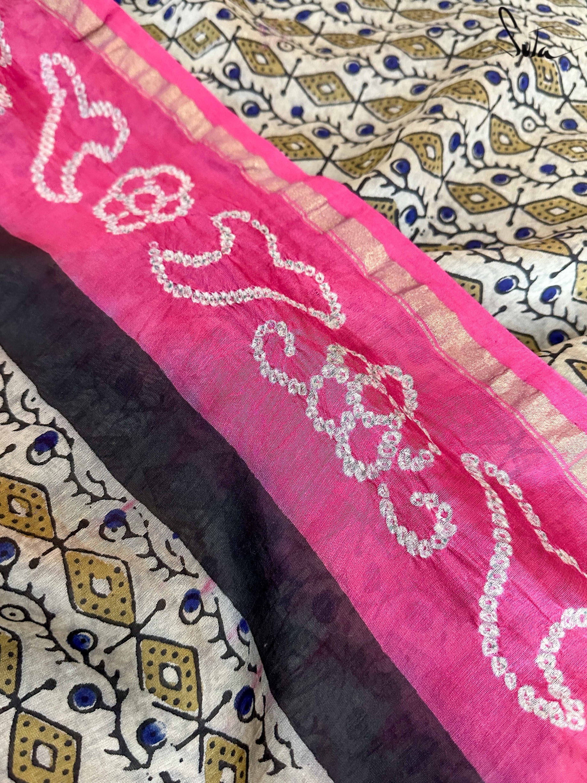 Fabric: Saree chanderi body ajrakh pbb bandhani