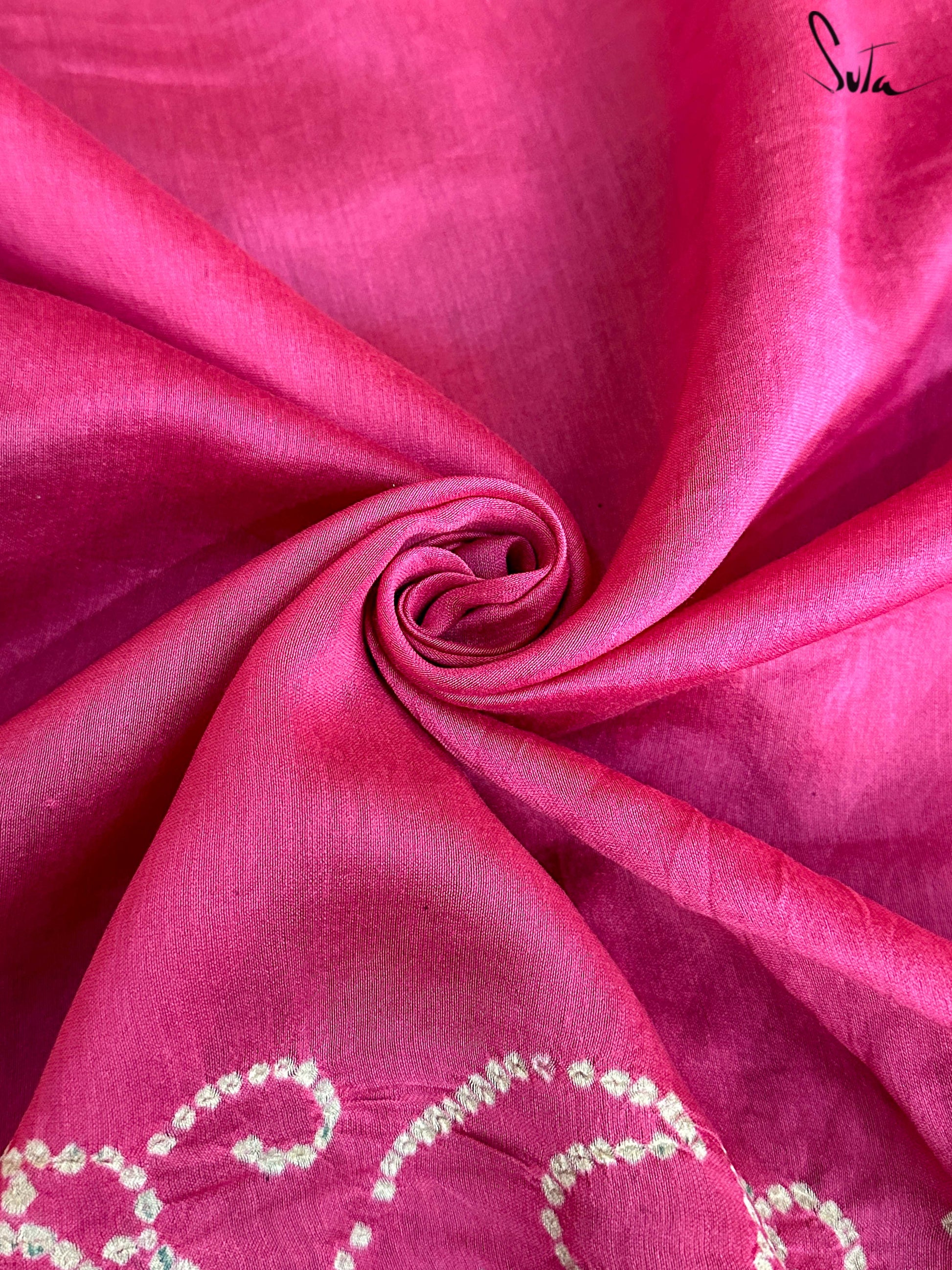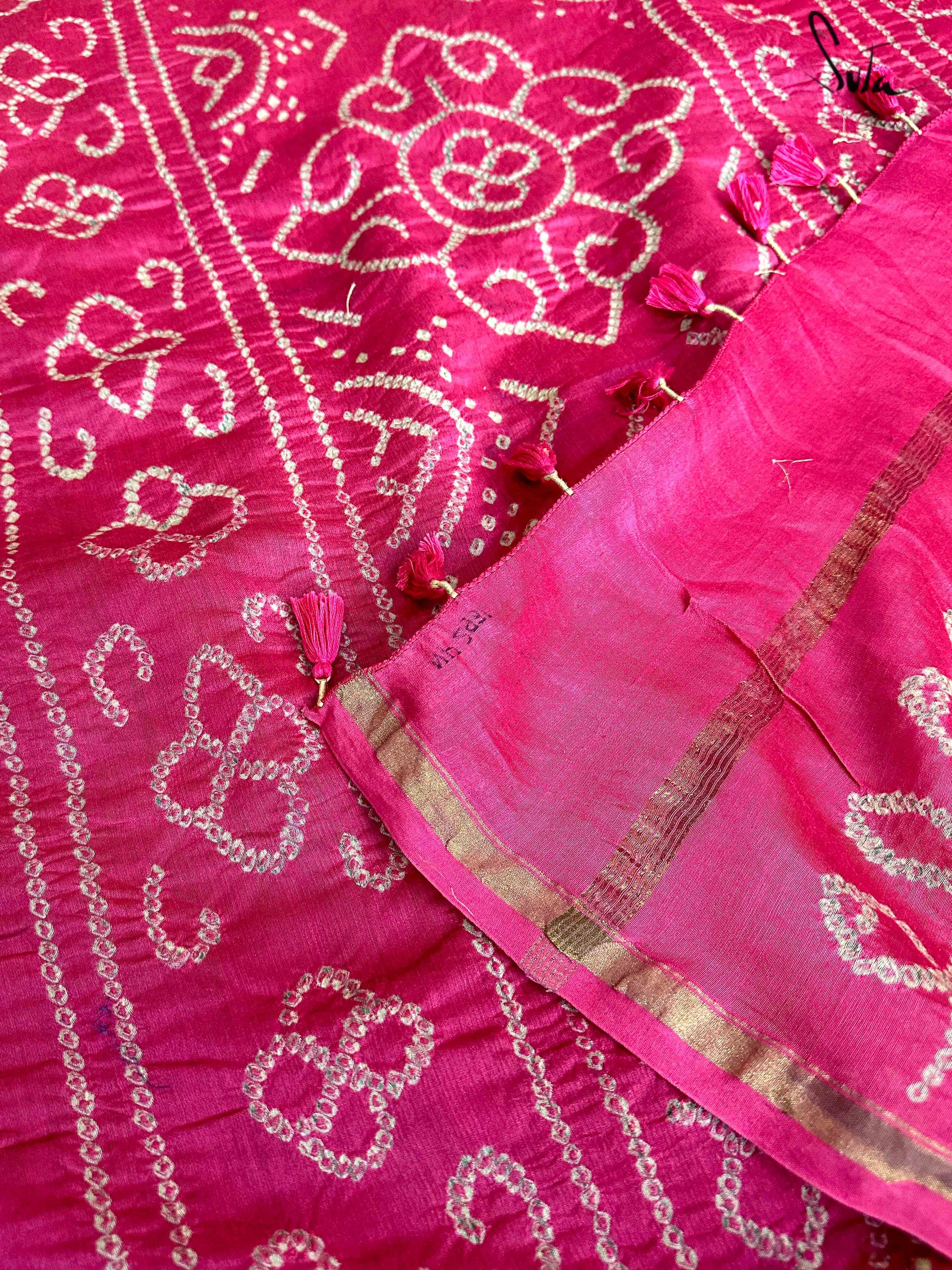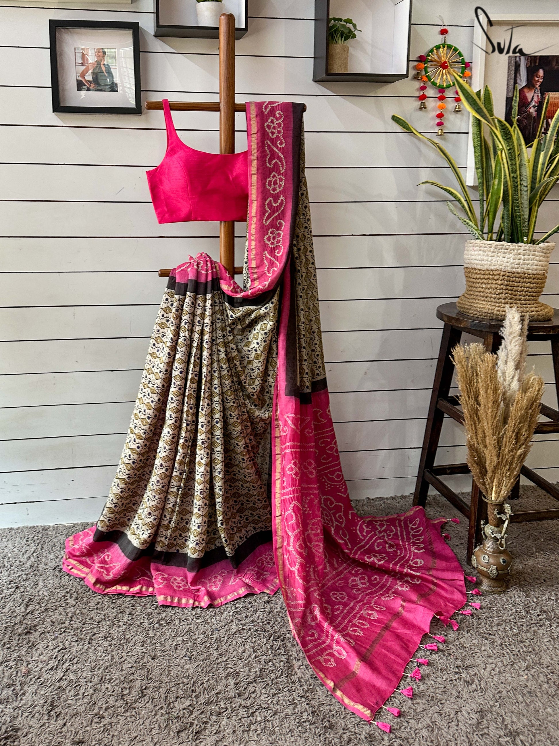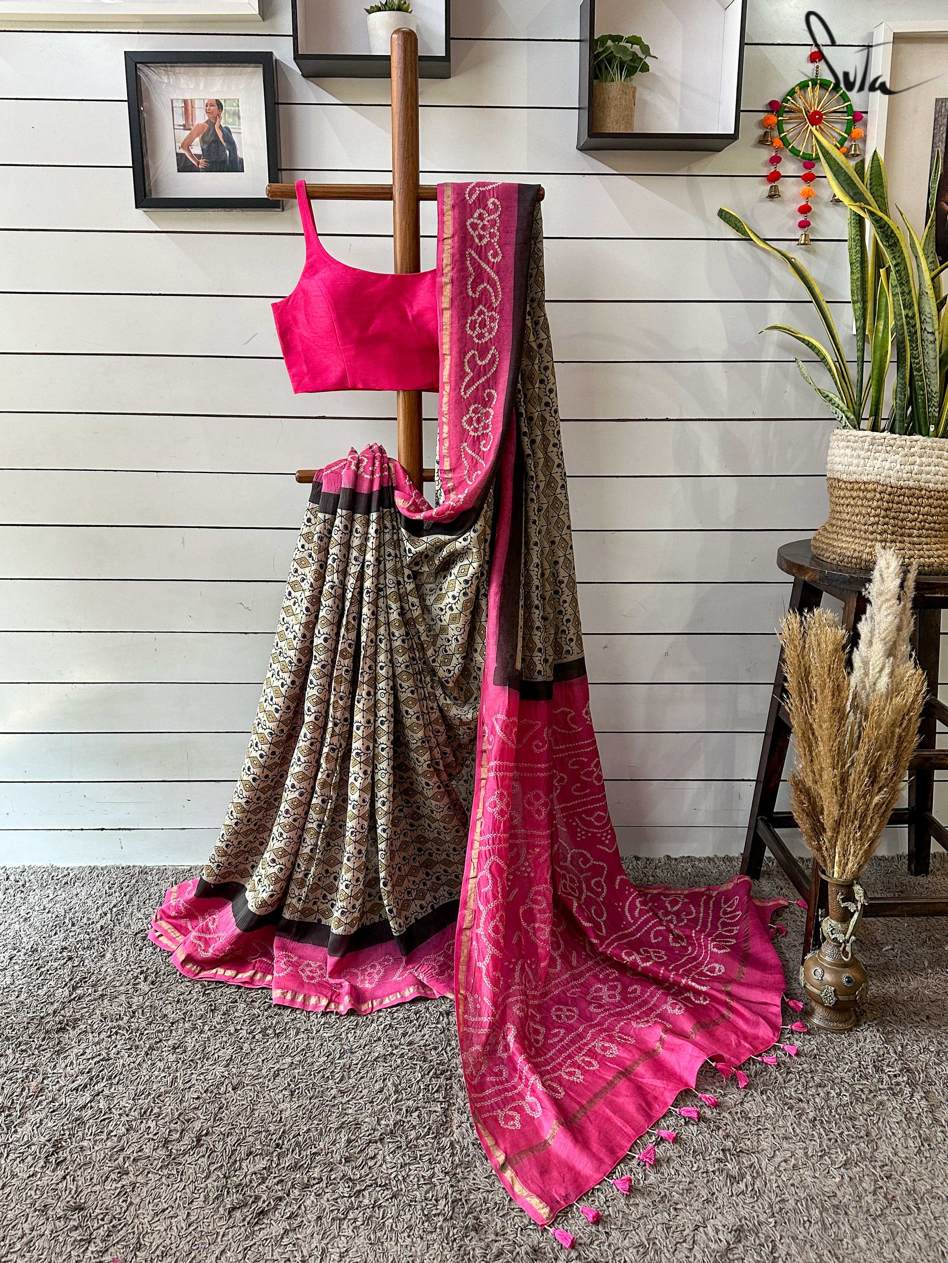 Fabric: Saree chanderi body ajrakh pbb bandhani