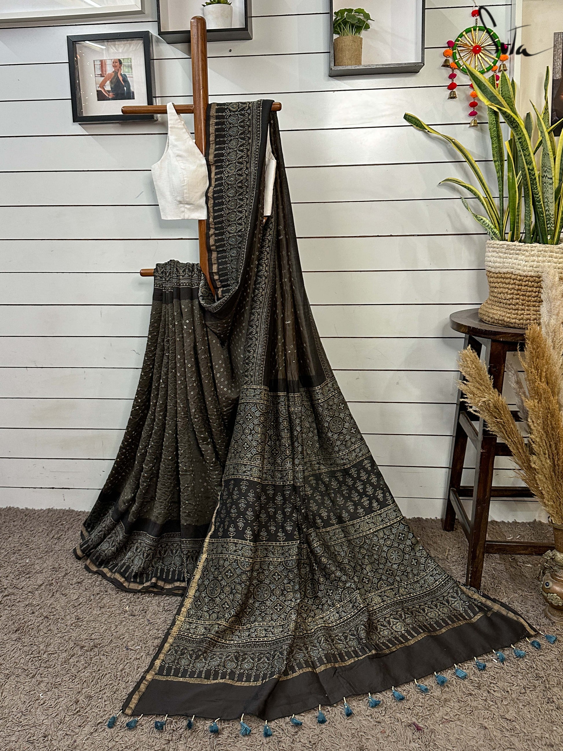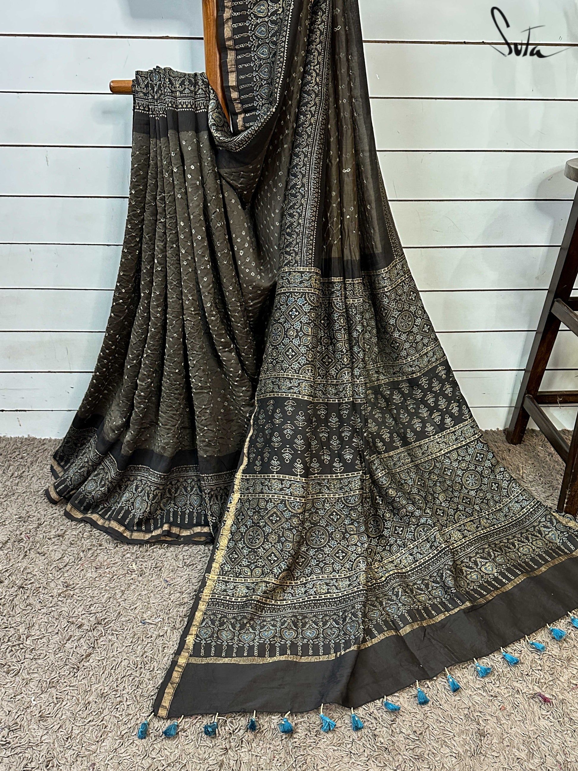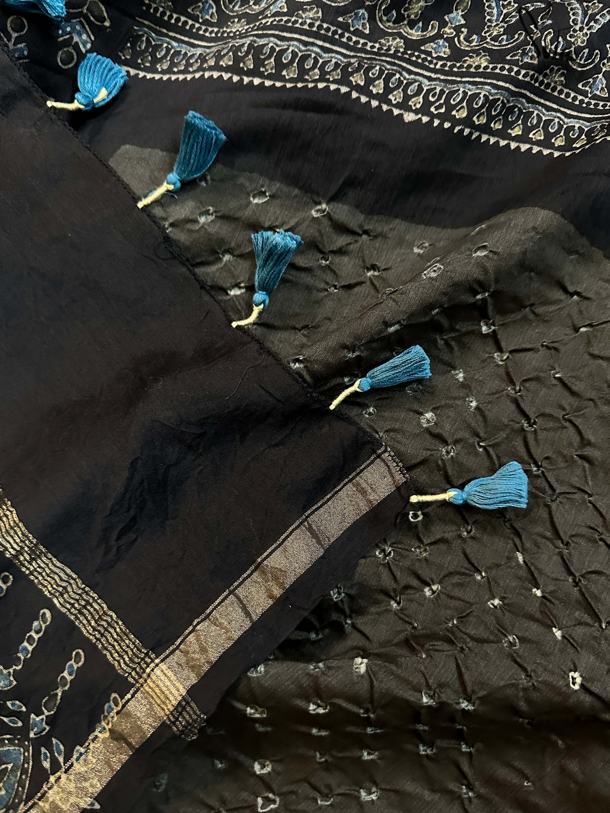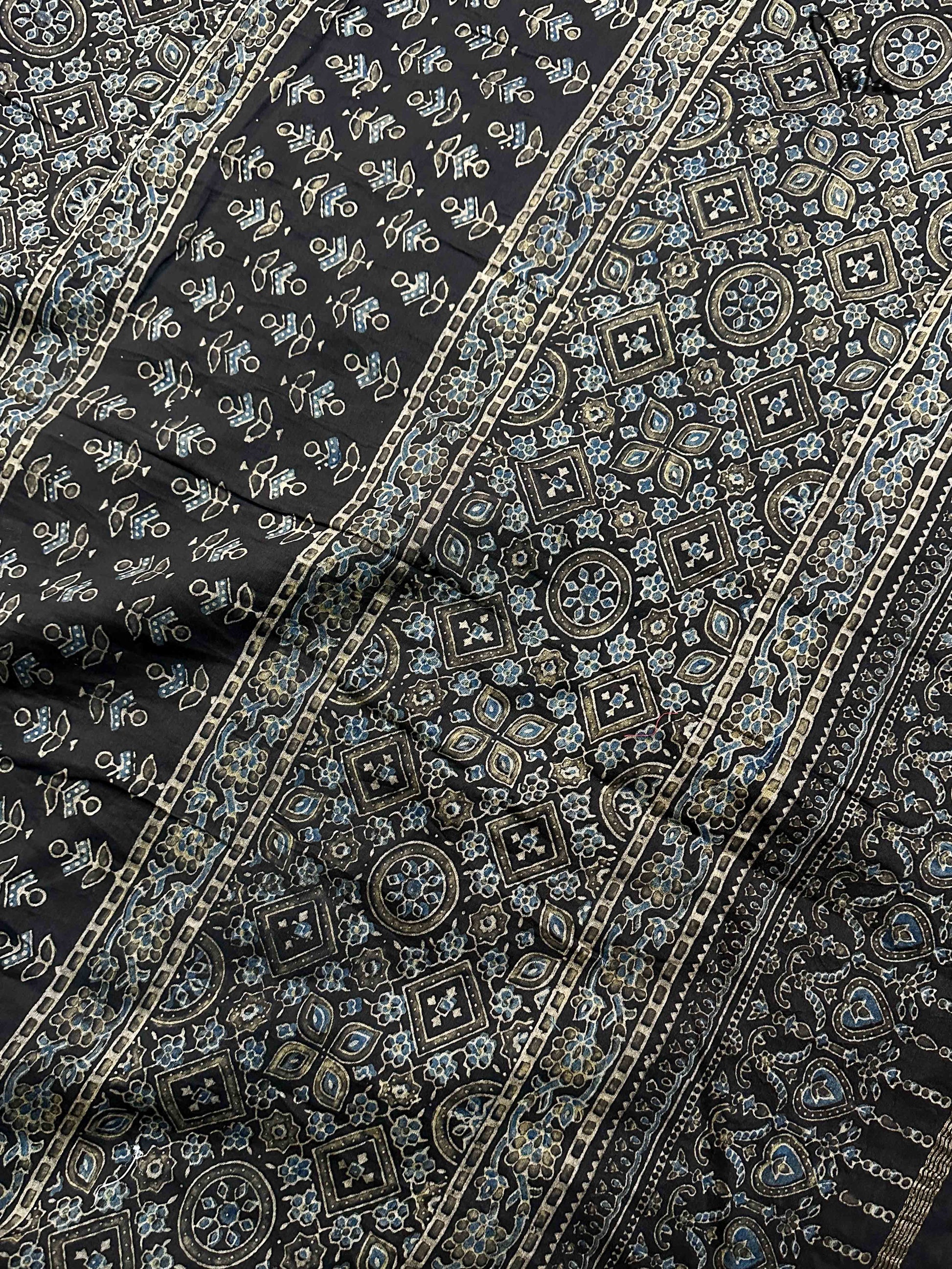 Pallu, border and blouse piece is ajrakh