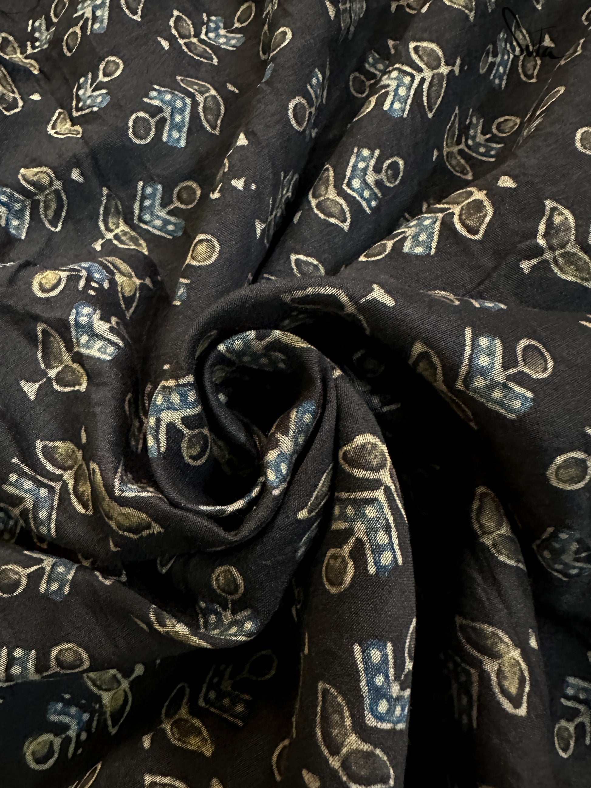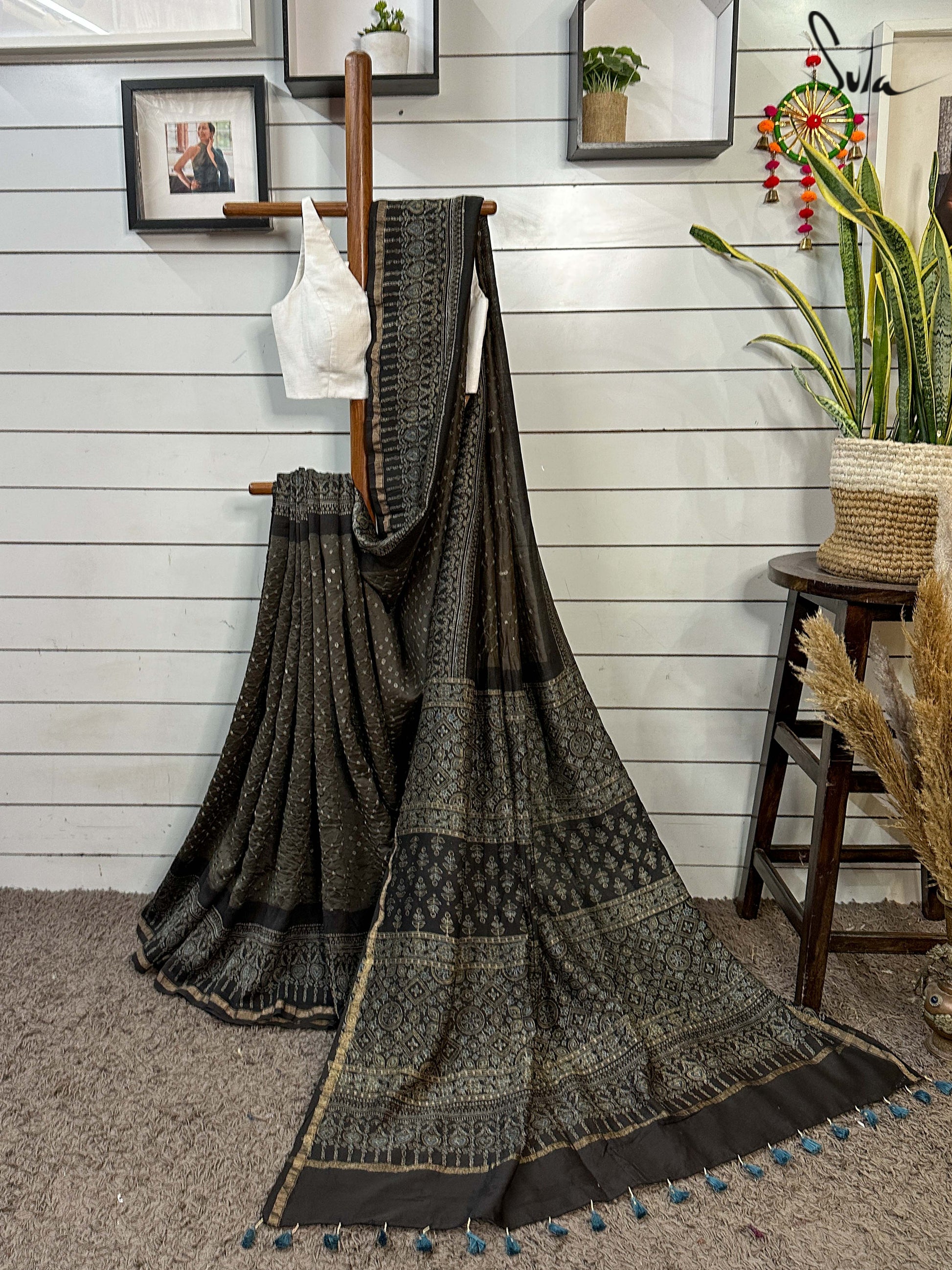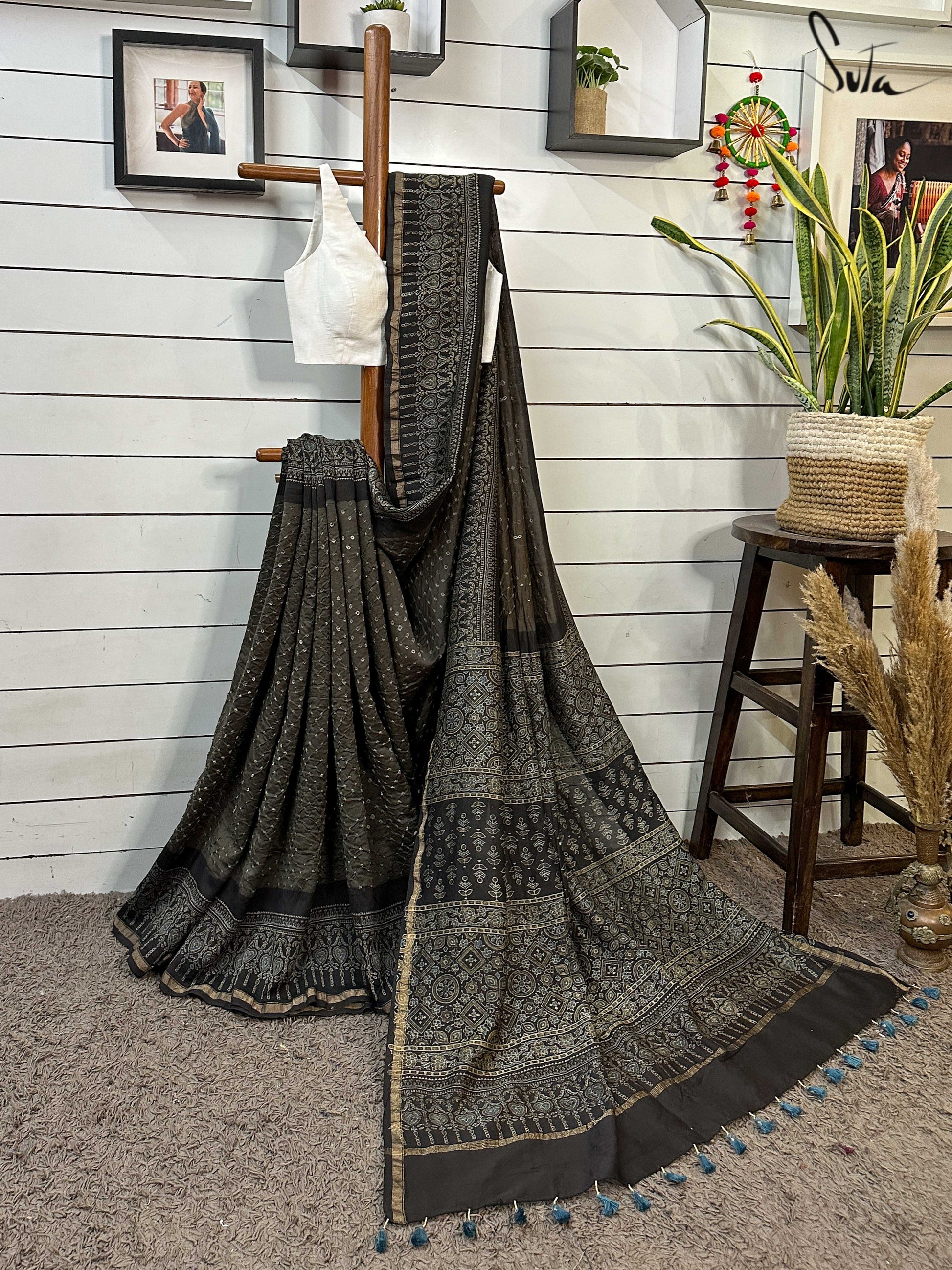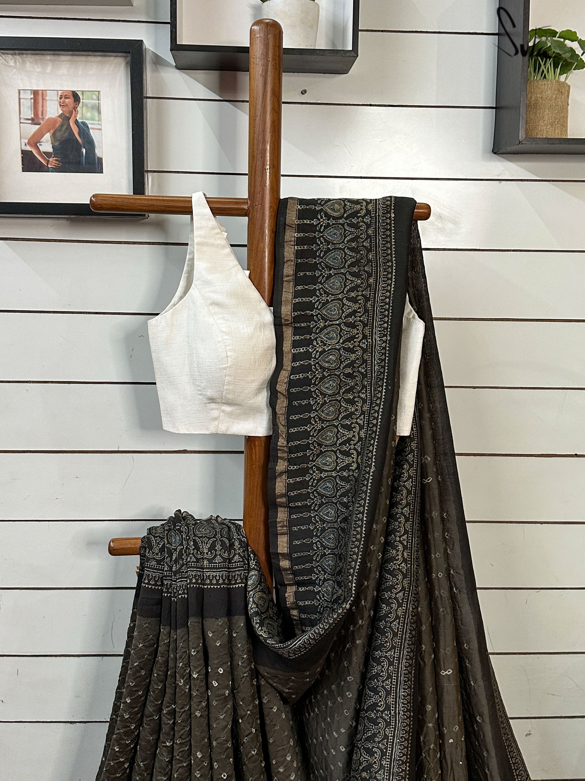 Pallu, border and blouse piece is ajrakh