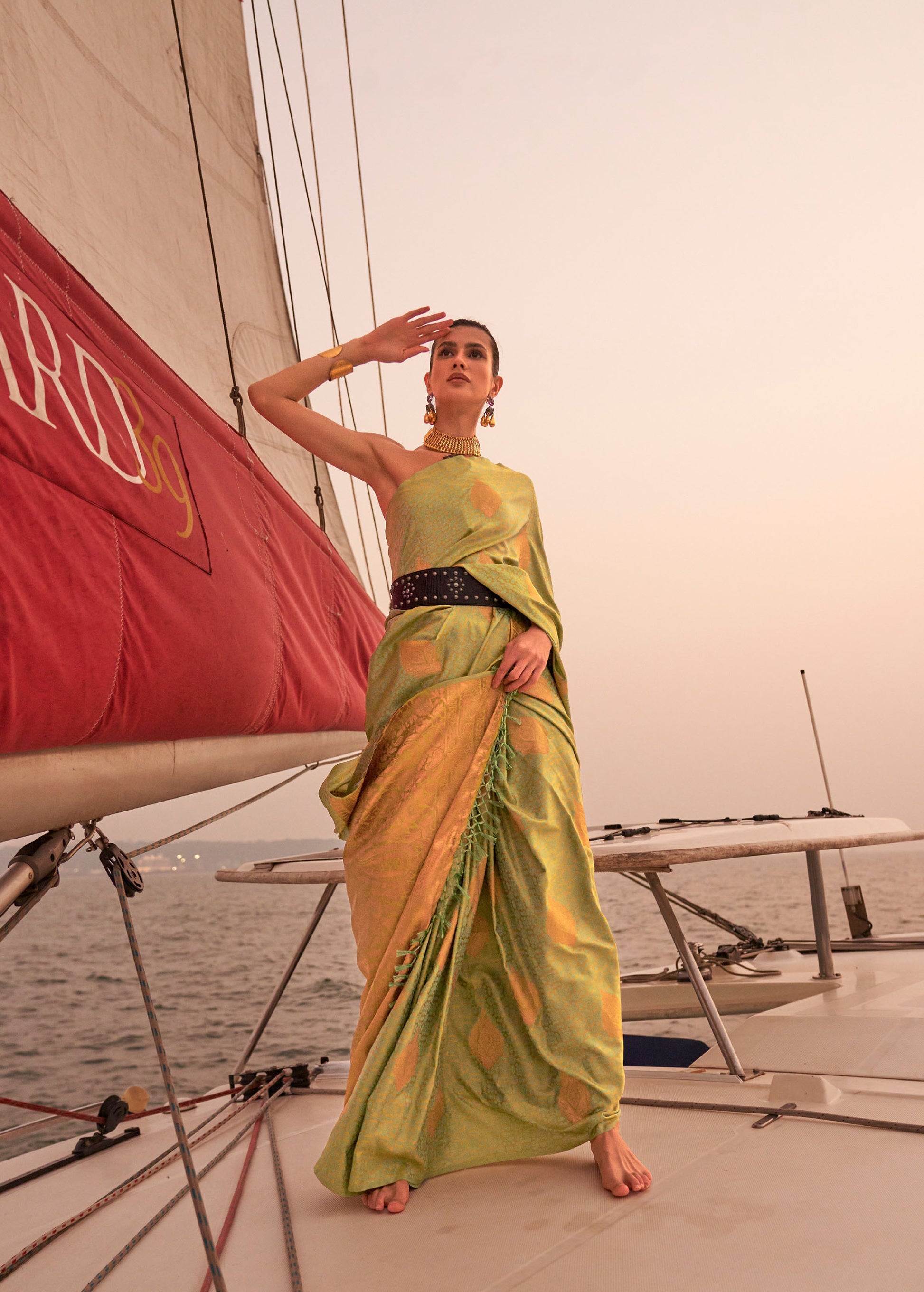 Olive Green Kokoro Satin Two tone handloom weaving saree