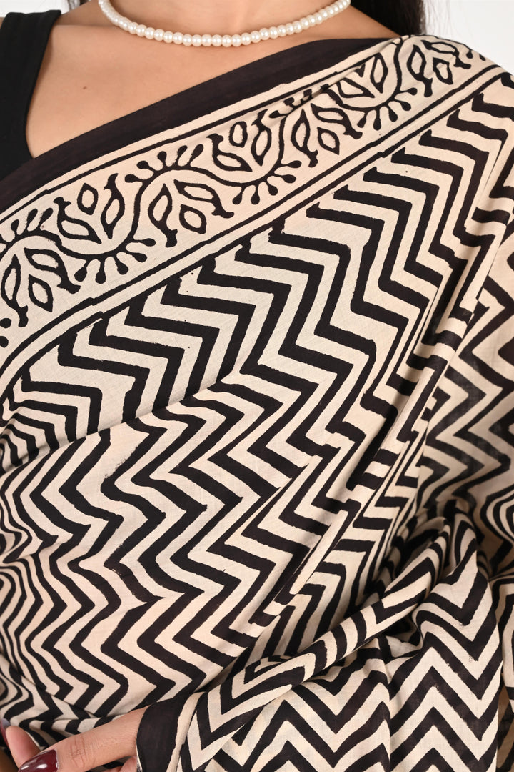 On Duty Drape - Handblock Print Natural Dyed - Mulmul Cotton Saree