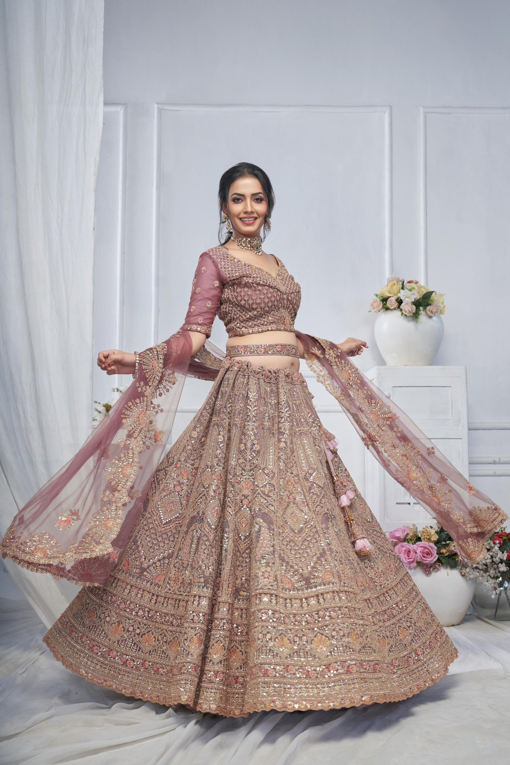 Onion Pink Soft Net With Paisley And Peacock Motifs Bridal Lehenga