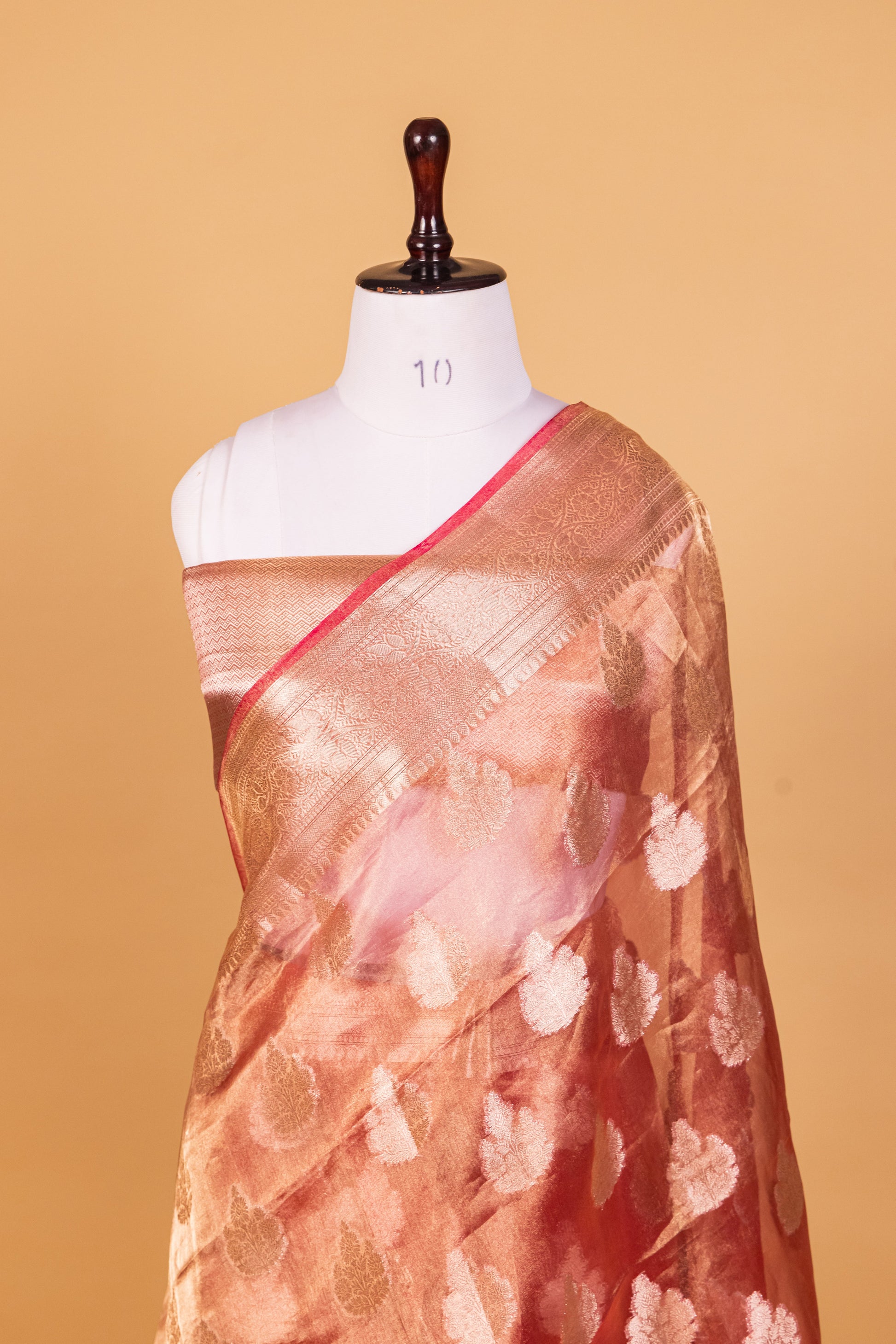 Description: Unleash your daring spirit with this stunning Onion Pink Tissue Pure Silk Dyed Saree. Made with pure silk, this saree features a beautiful onion pink color that is perfect for any occasion. Elevate your style and make a statement with this unique and luxurious piece.
