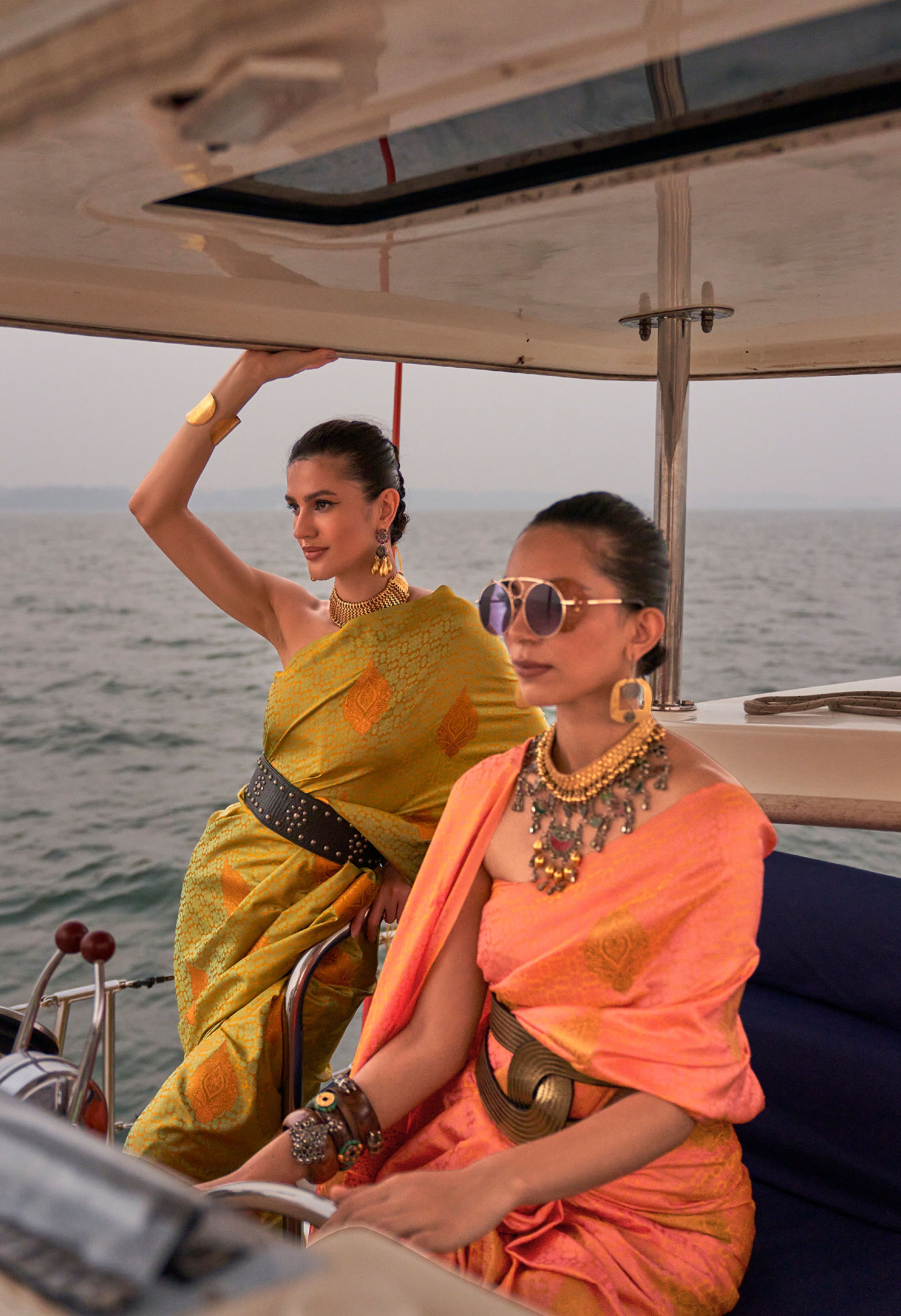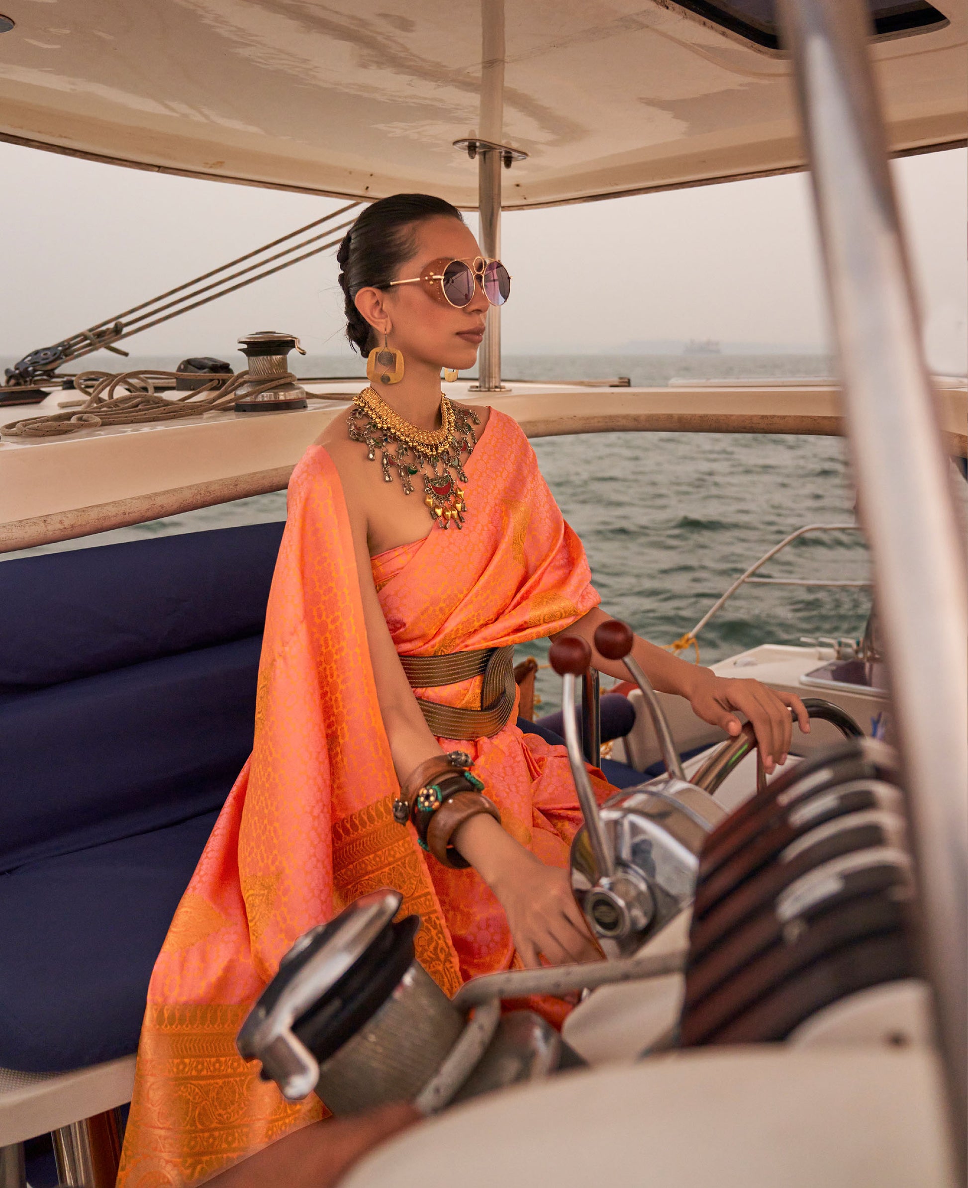 Orange Kokoro Satin Two tone handloom weaving saree