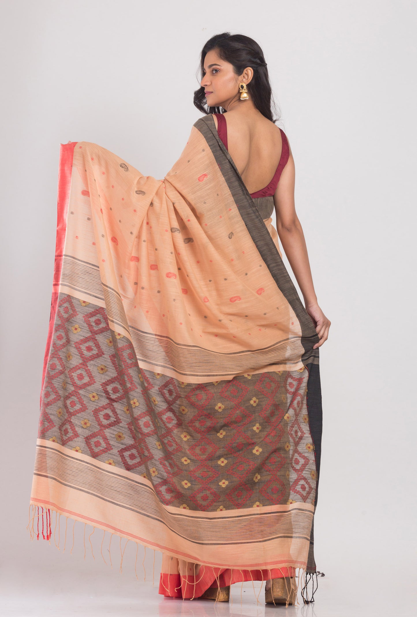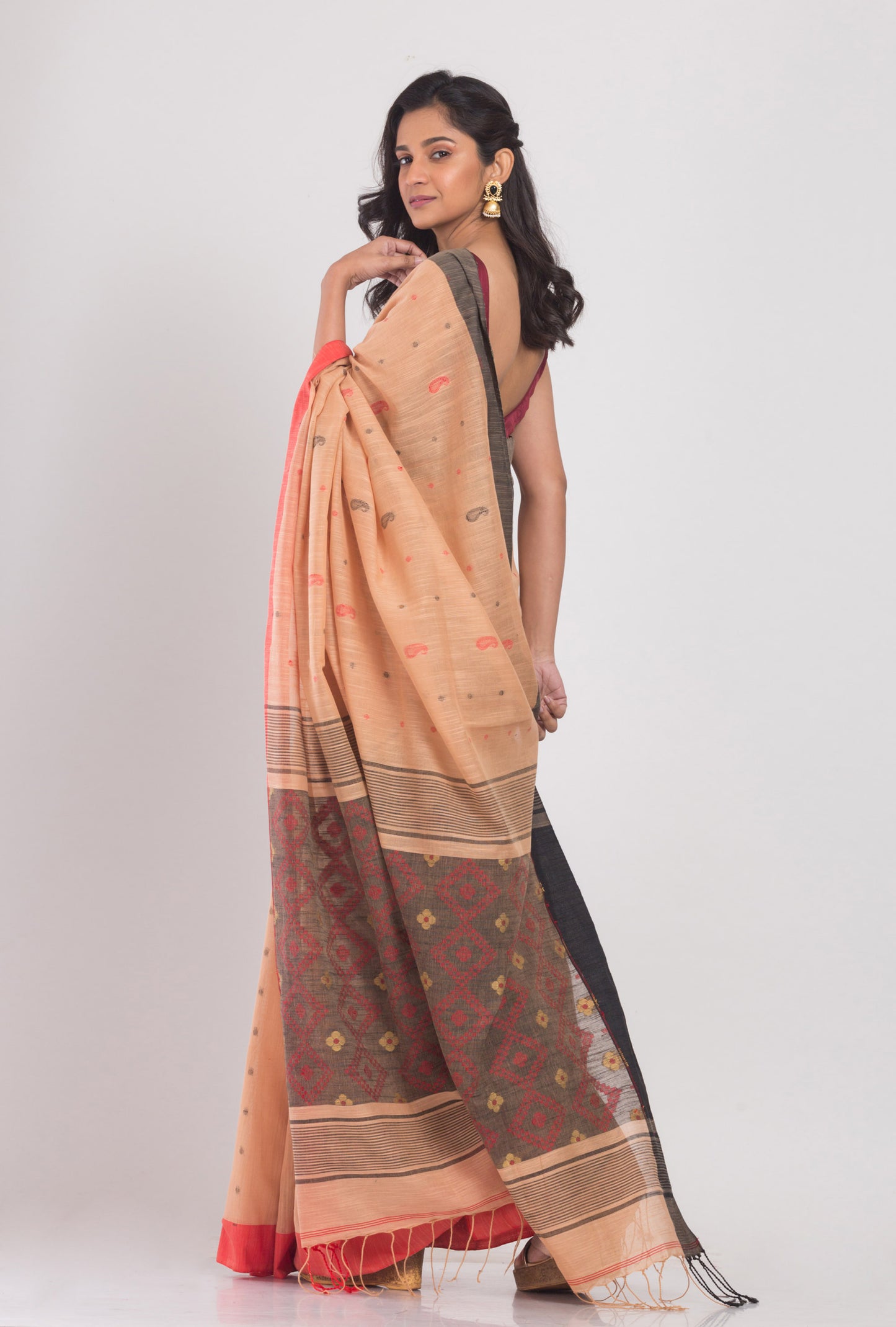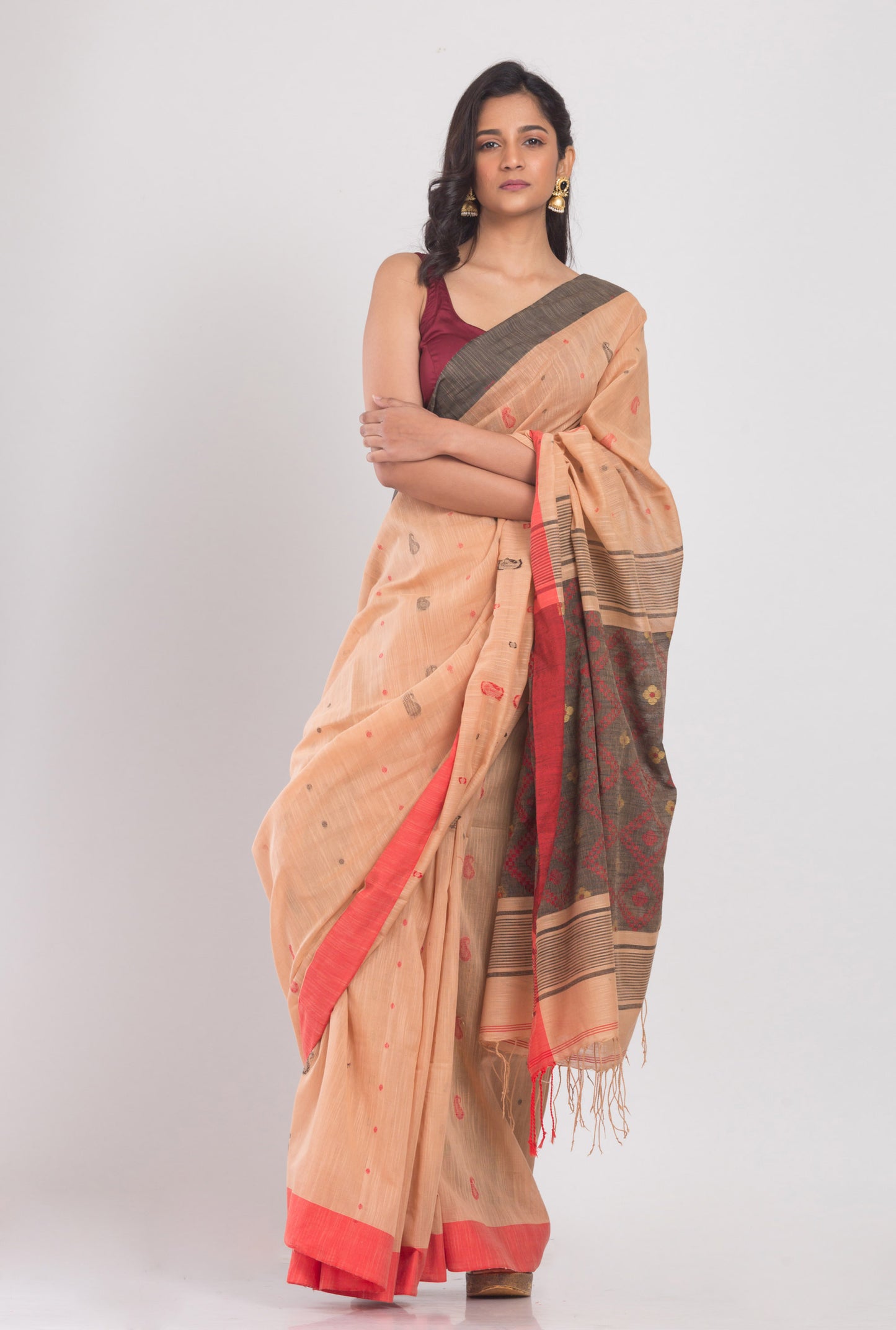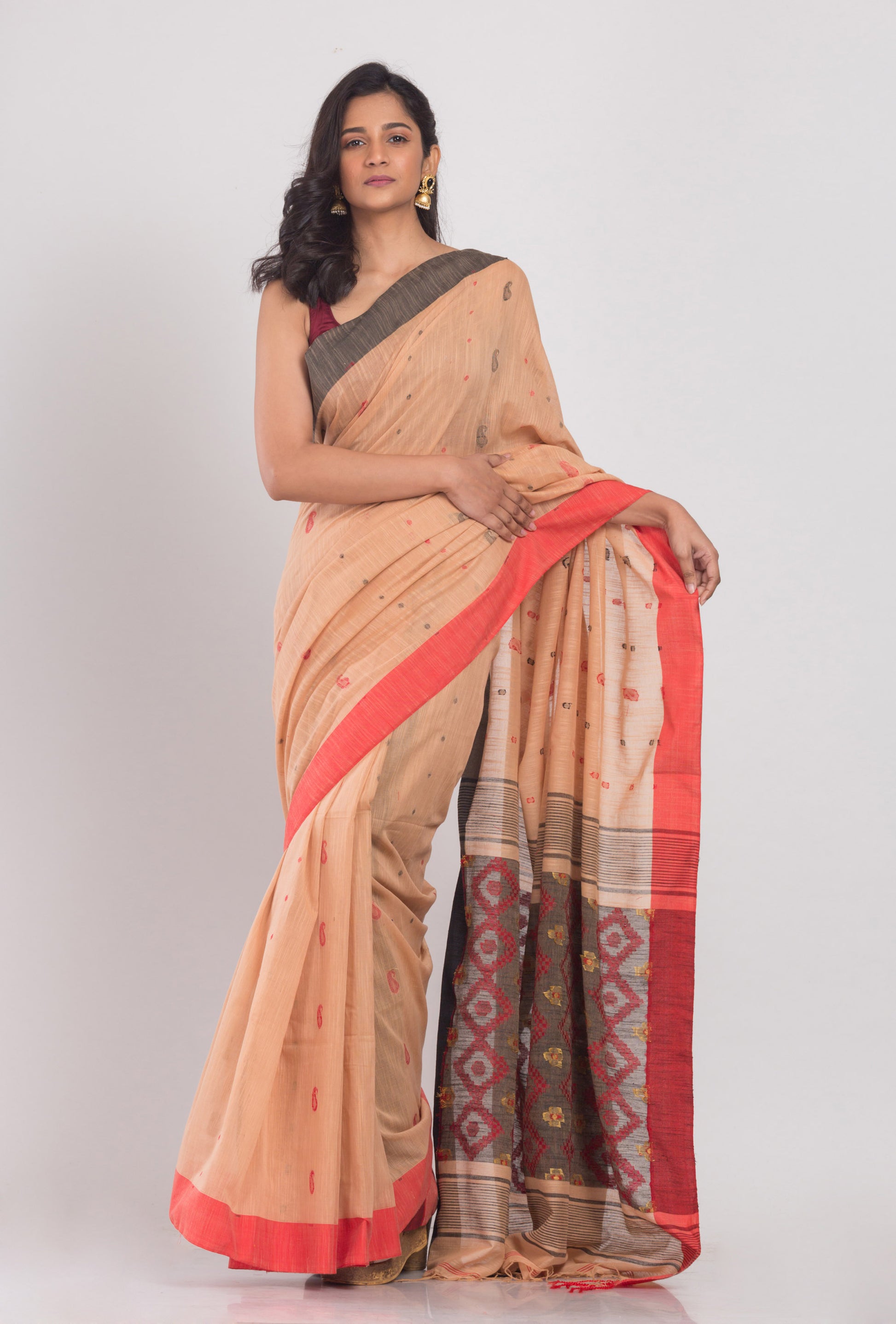Orange Peach Handwoven Cotton Saree