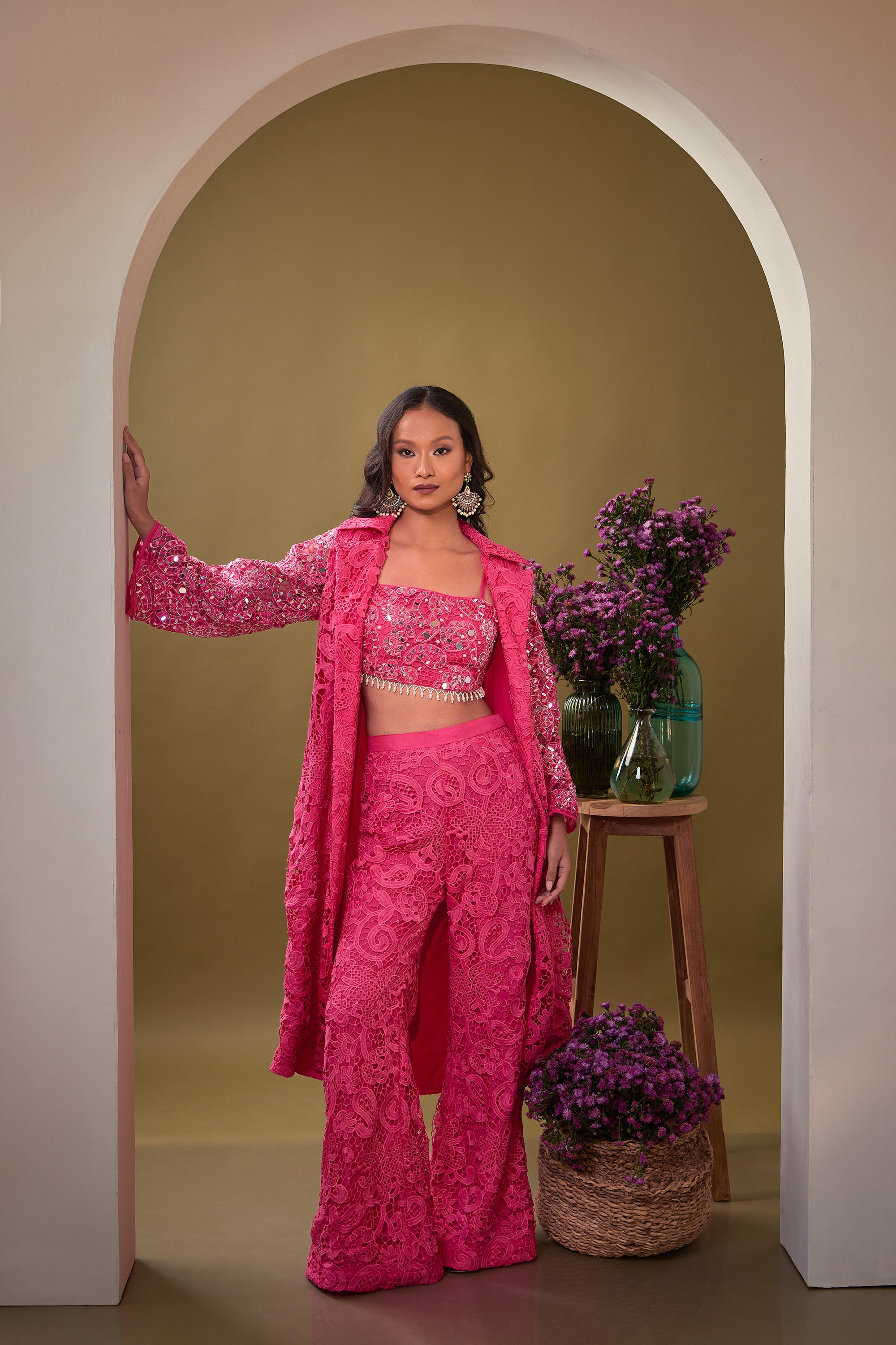 Padma Hand Embroidered Fuschia Pink Contemporary Designer Jacket Set