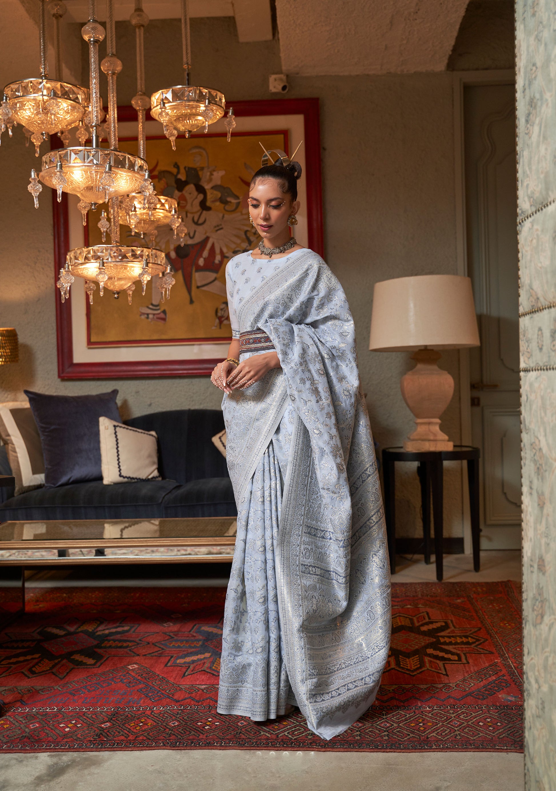 Pale Blue Kafreen Kashmiri Modal Handloom Saree