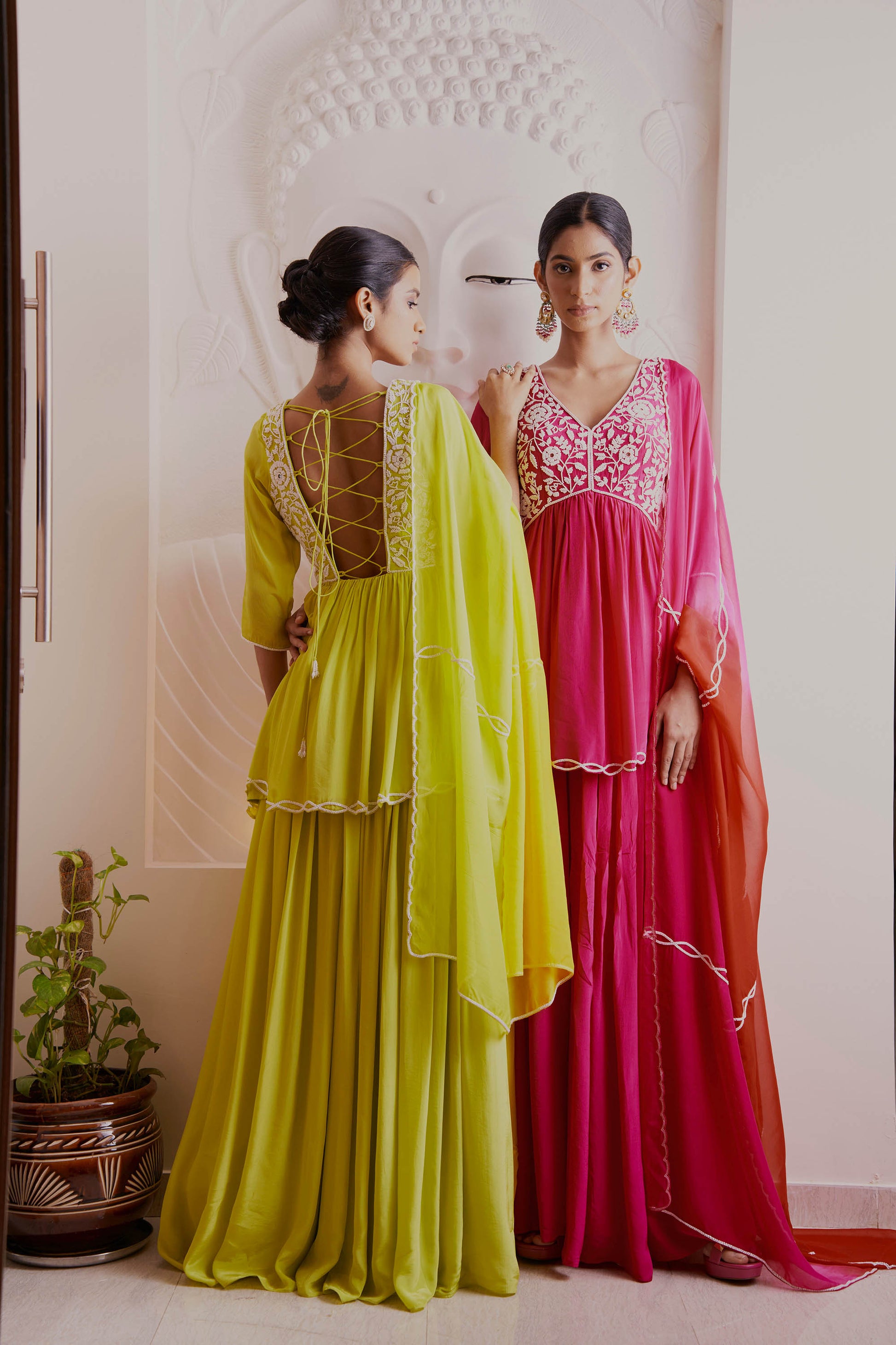 Colour of dupatta- Shaded Parrot Green and Yellow